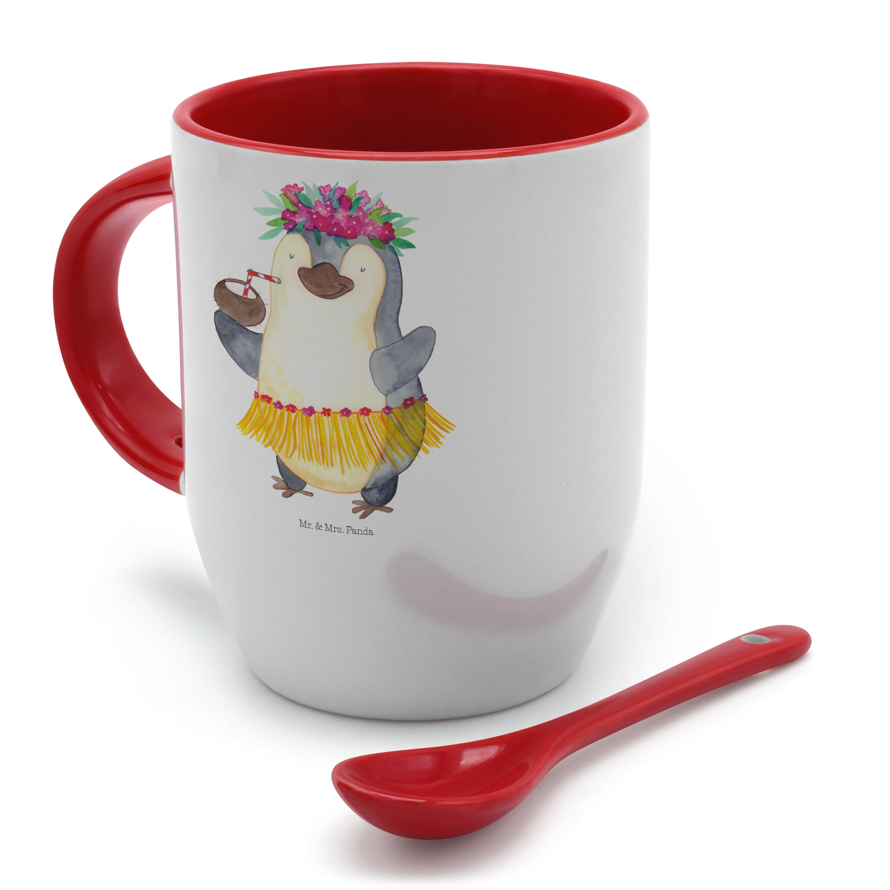 Tasse mit Löffel Pinguin Kokosnuss Tasse, Kaffeetasse, Tassen, Tasse mit Spruch, Kaffeebecher, Tasse mit Löffel, Pinguin, Aloha, Hawaii, Urlaub, Kokosnuss, Pinguine