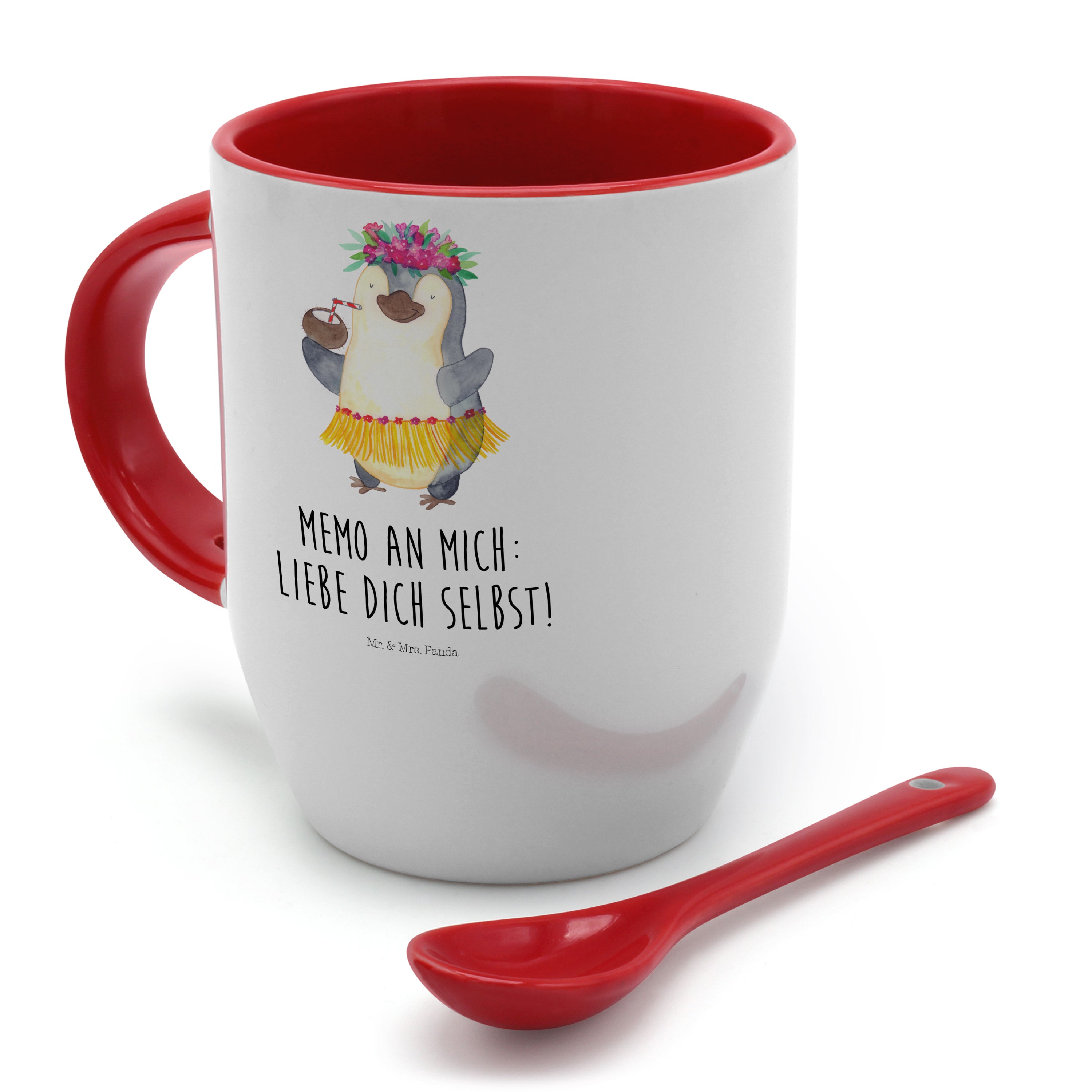 Tasse mit Löffel Pinguin Kokosnuss - mit Spruch