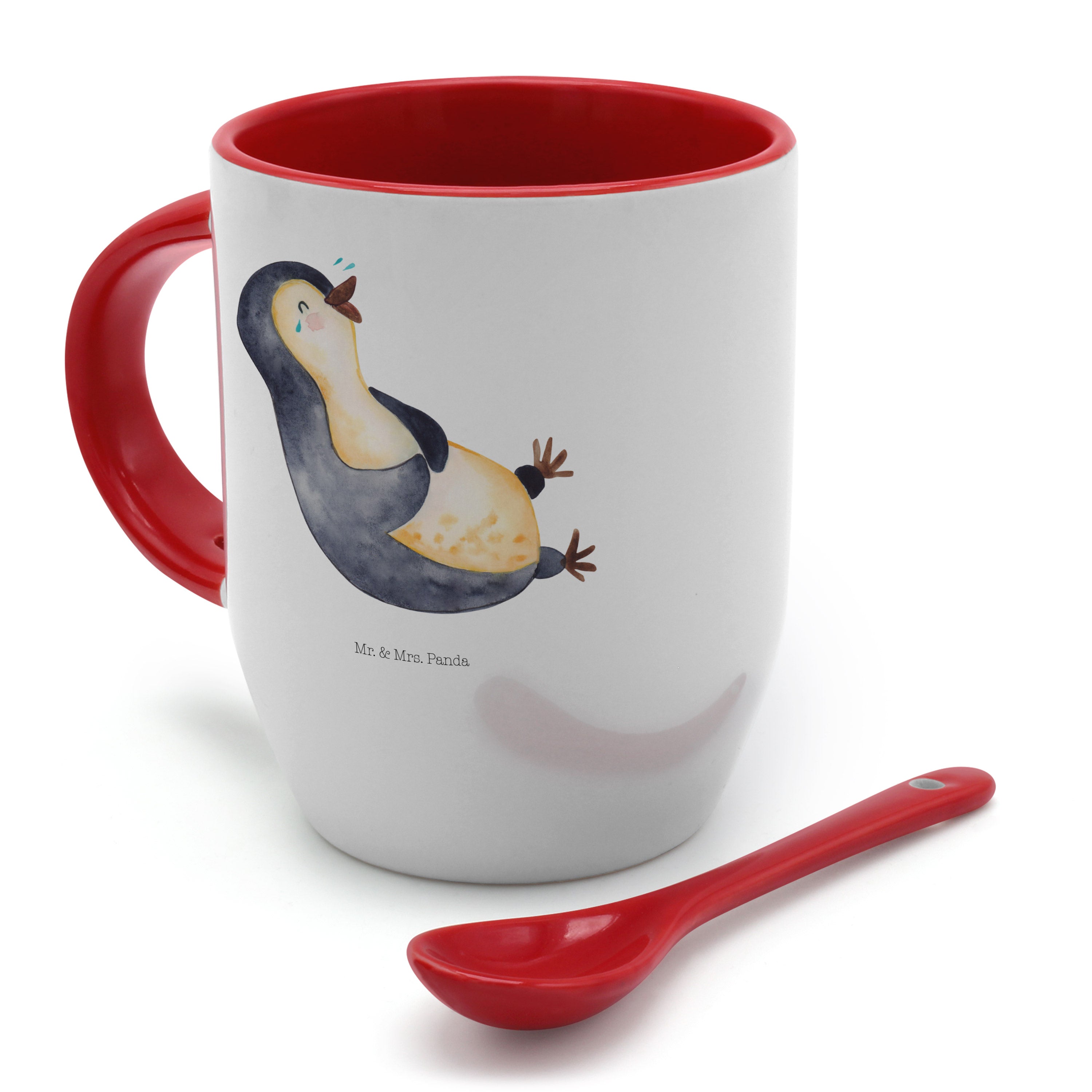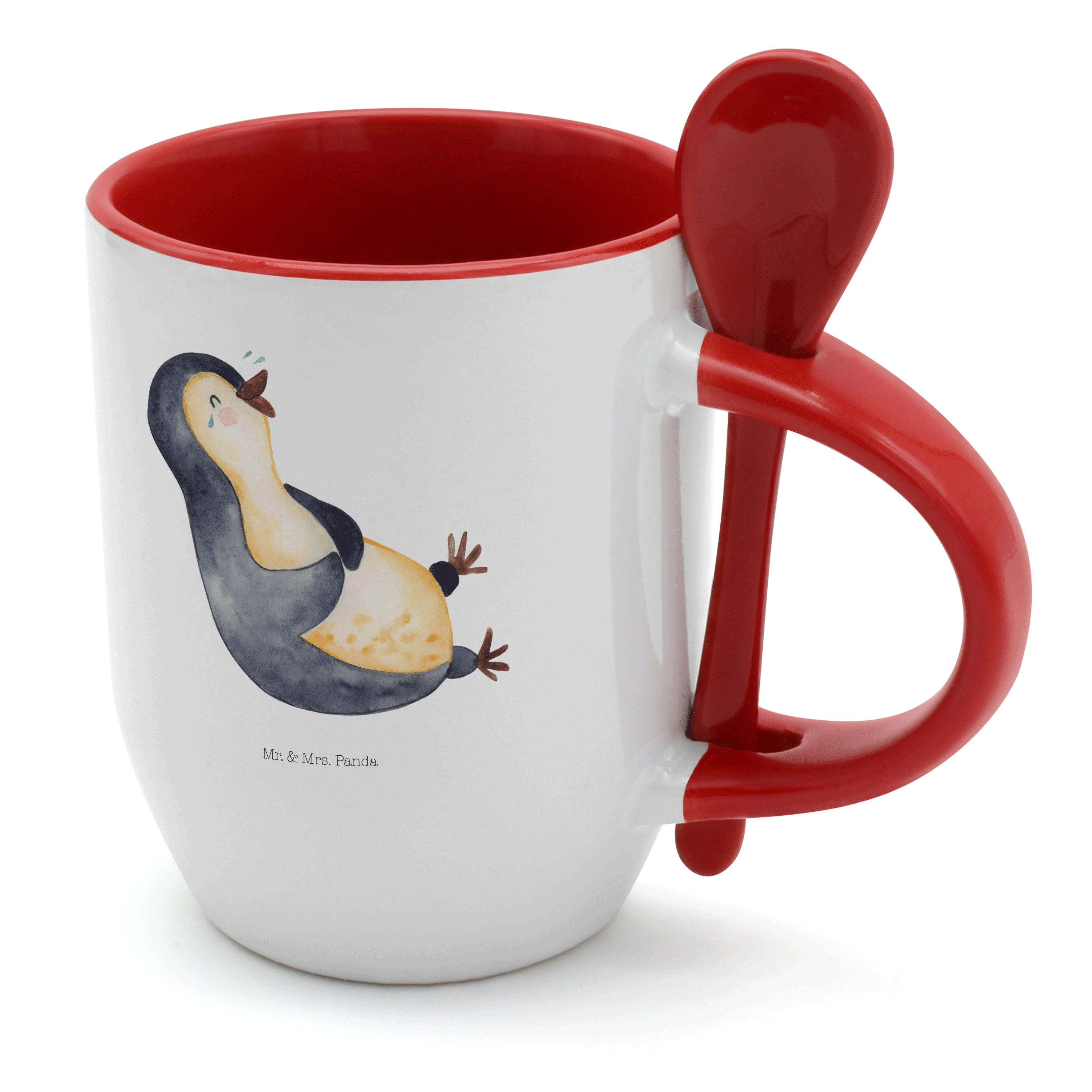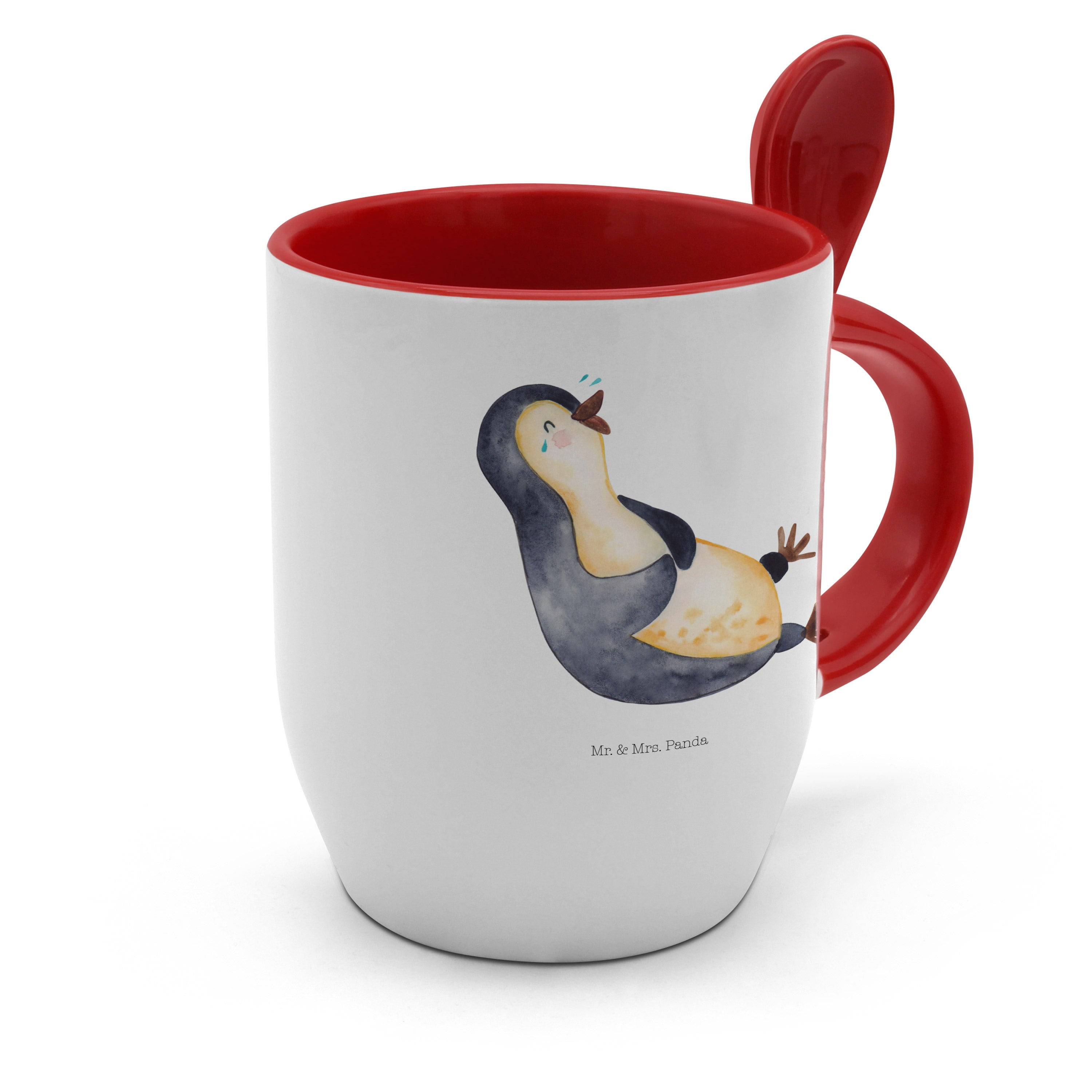 Tasse mit Löffel Pinguin lachend - mit Spruch
