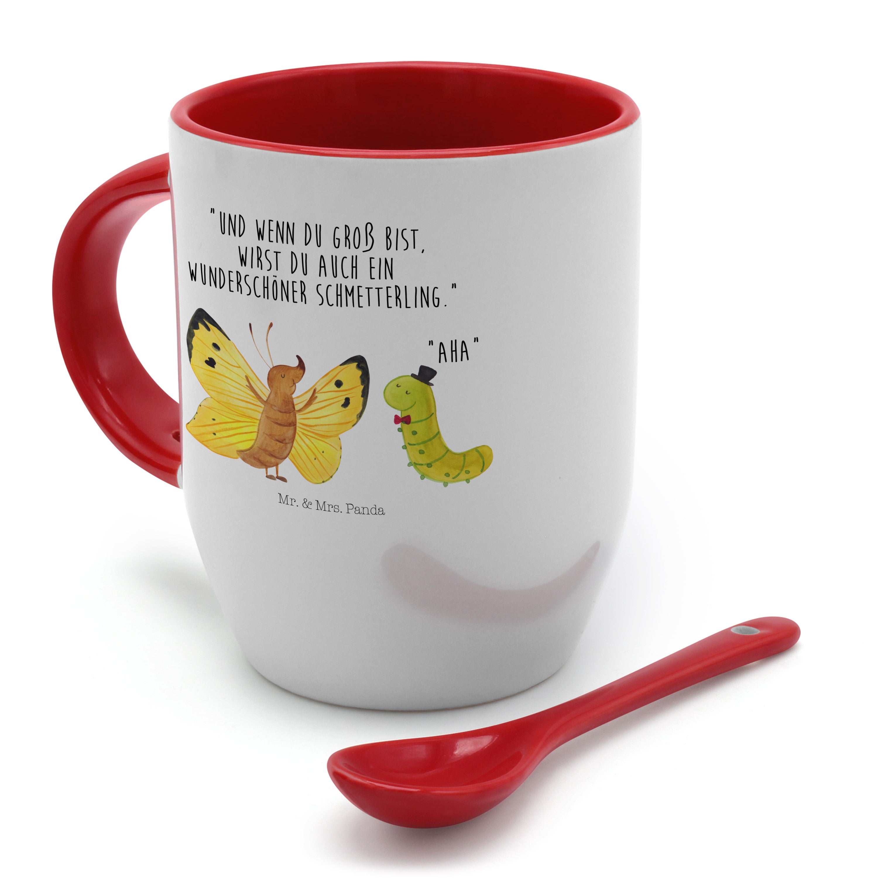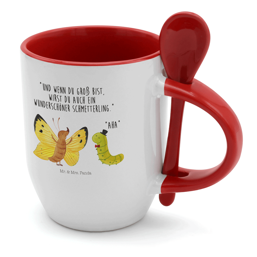 Tasse mit Löffel Raupe & Schmetterling - mit Spruch