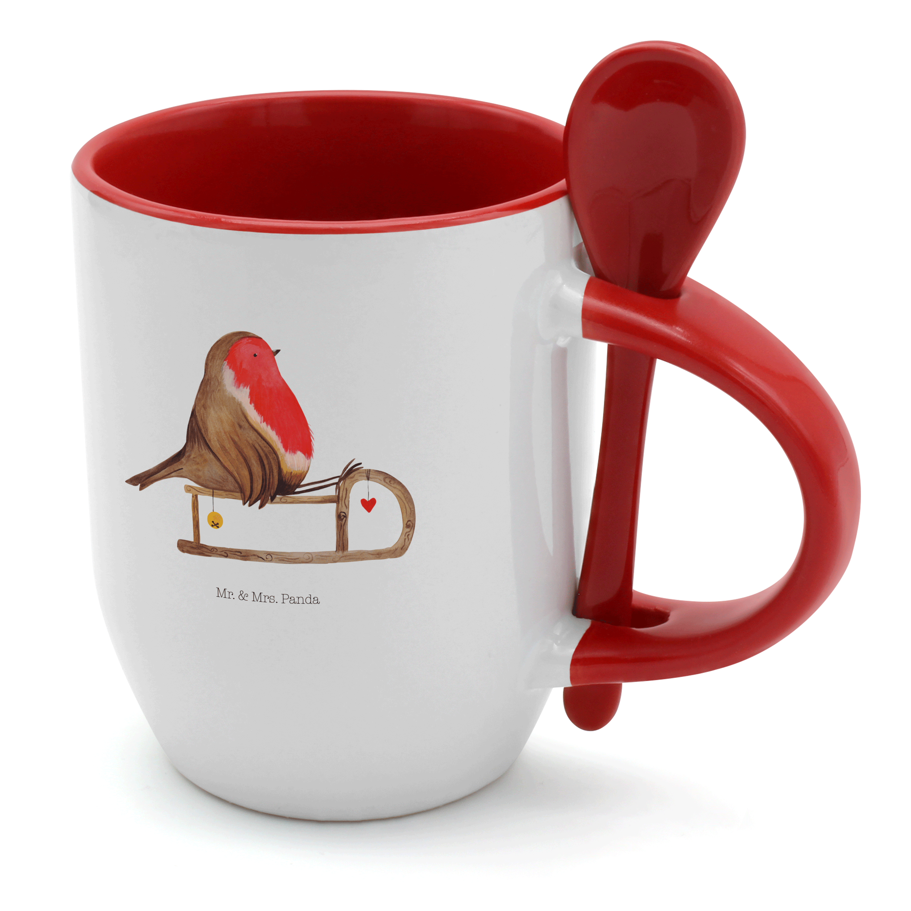 Tasse mit Löffel Rotkehlchen Schlitten - mit Spruch