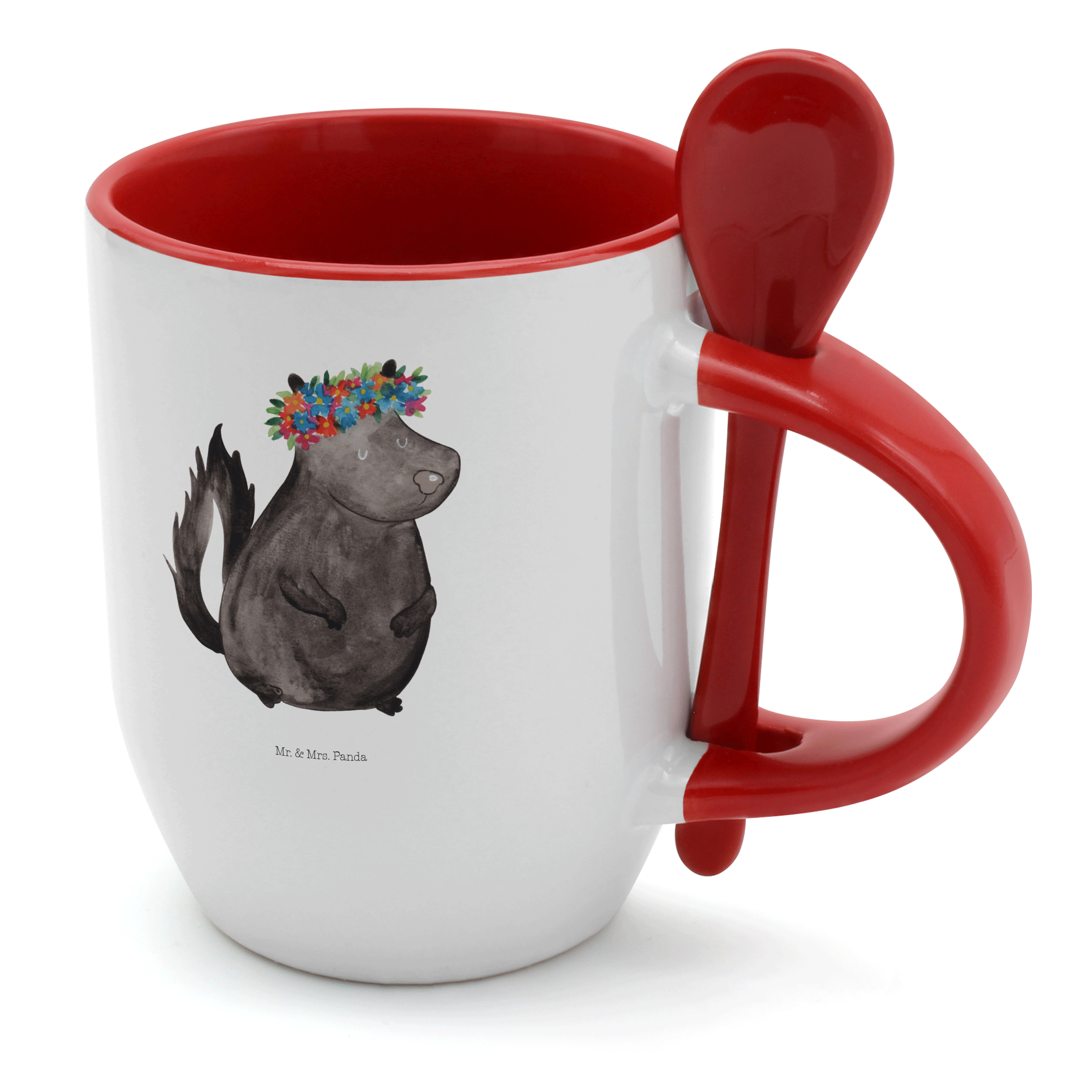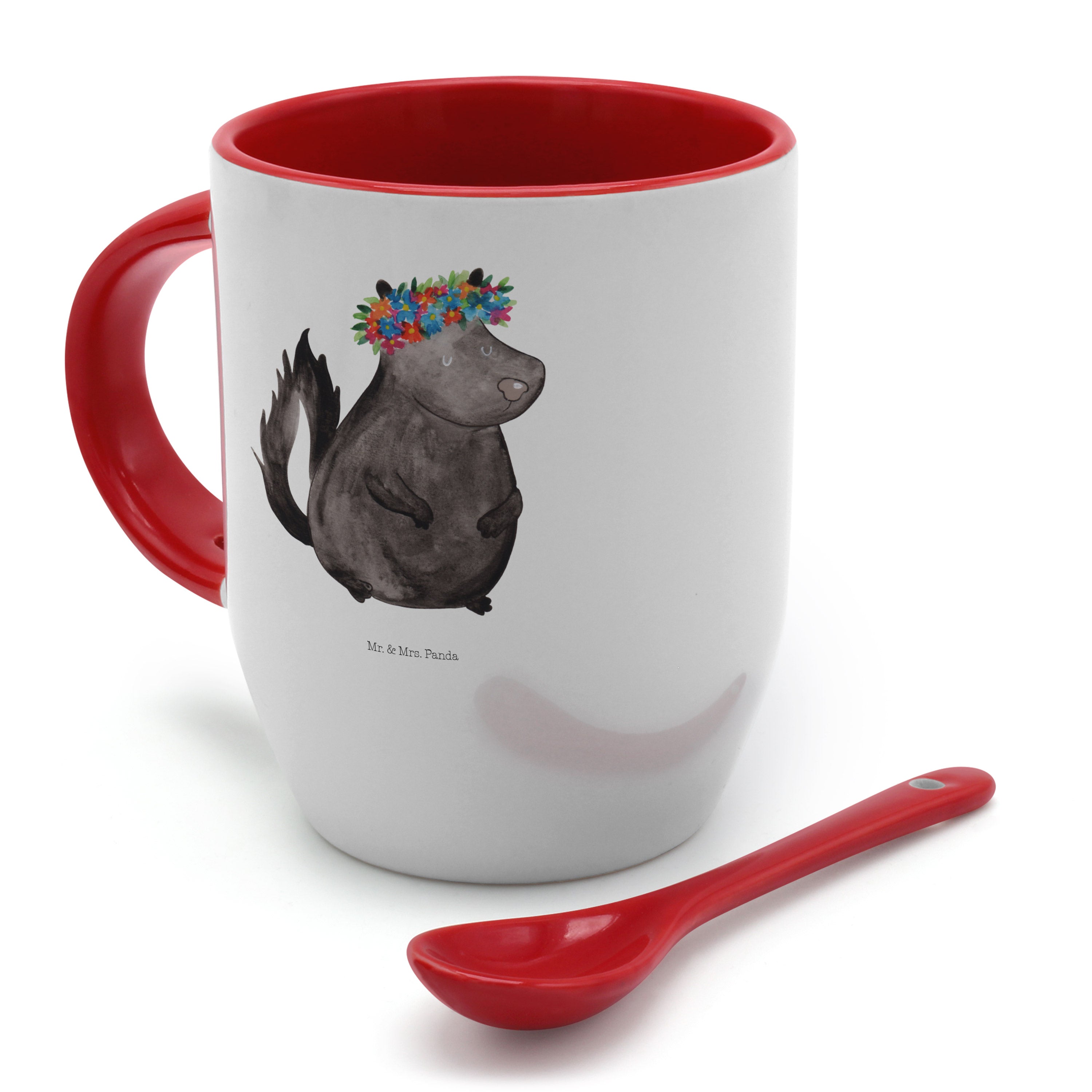 Tasse mit Löffel Stinktier Blumenmaedchen - mit Spruch
