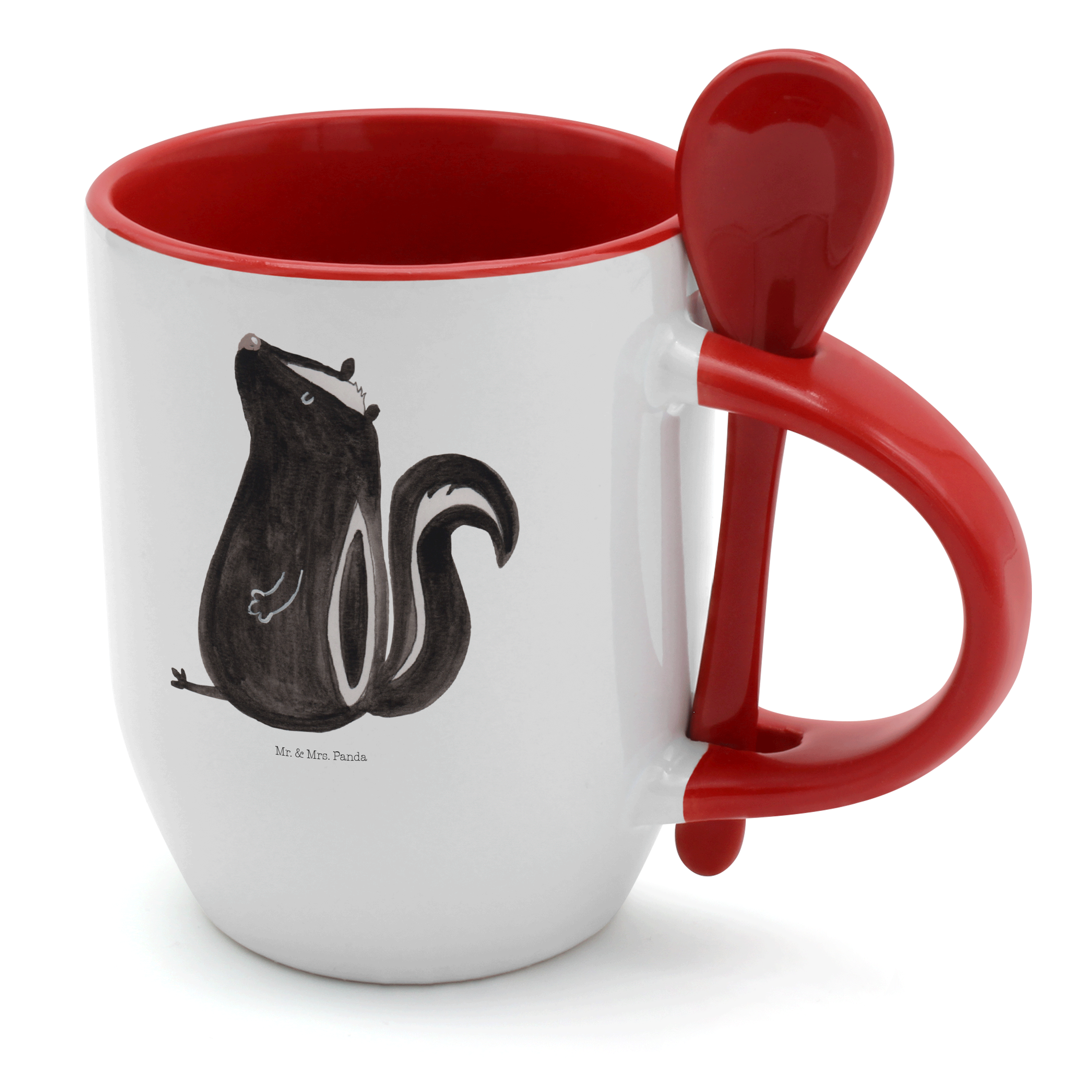 Tasse mit Löffel Stinktier sitzend - mit Spruch