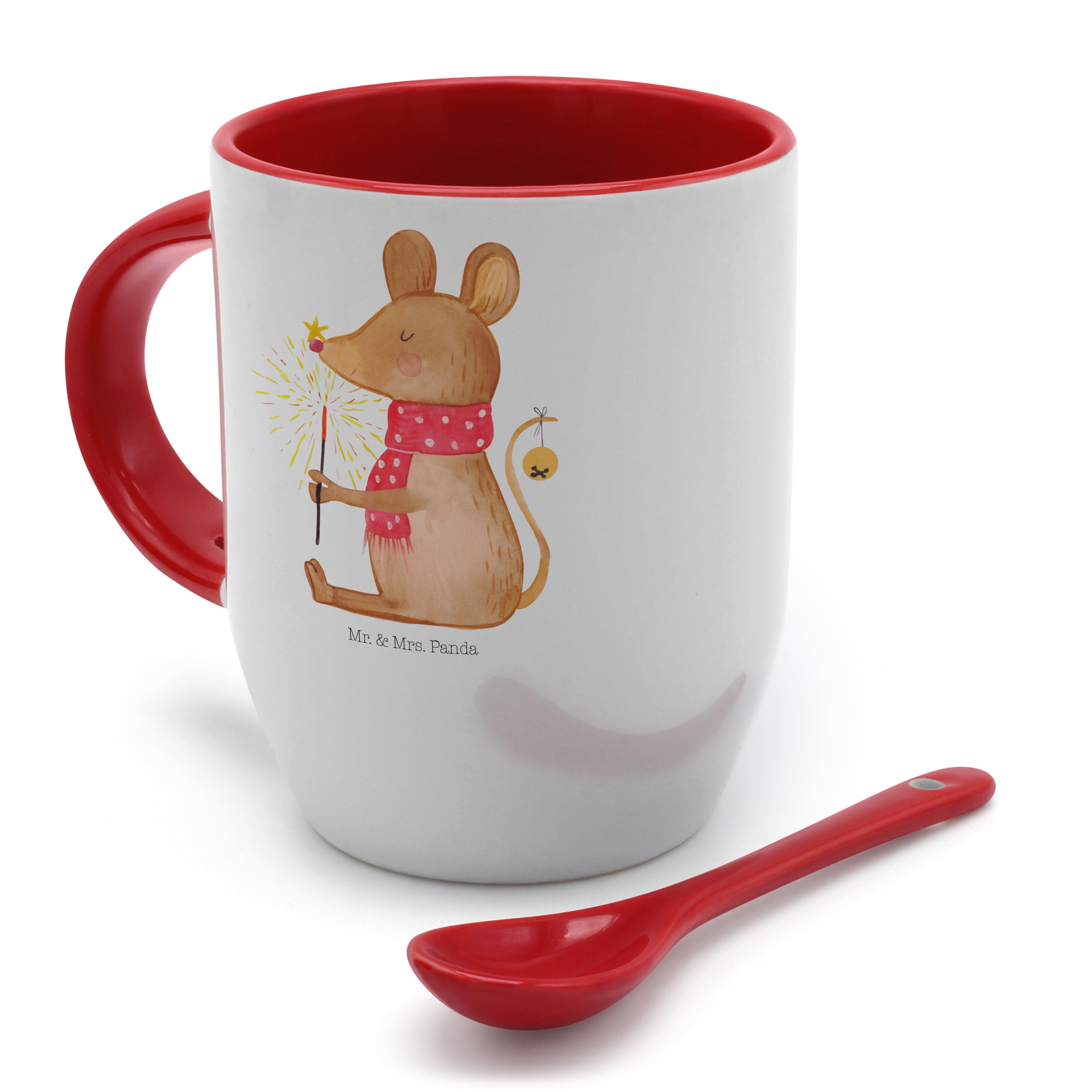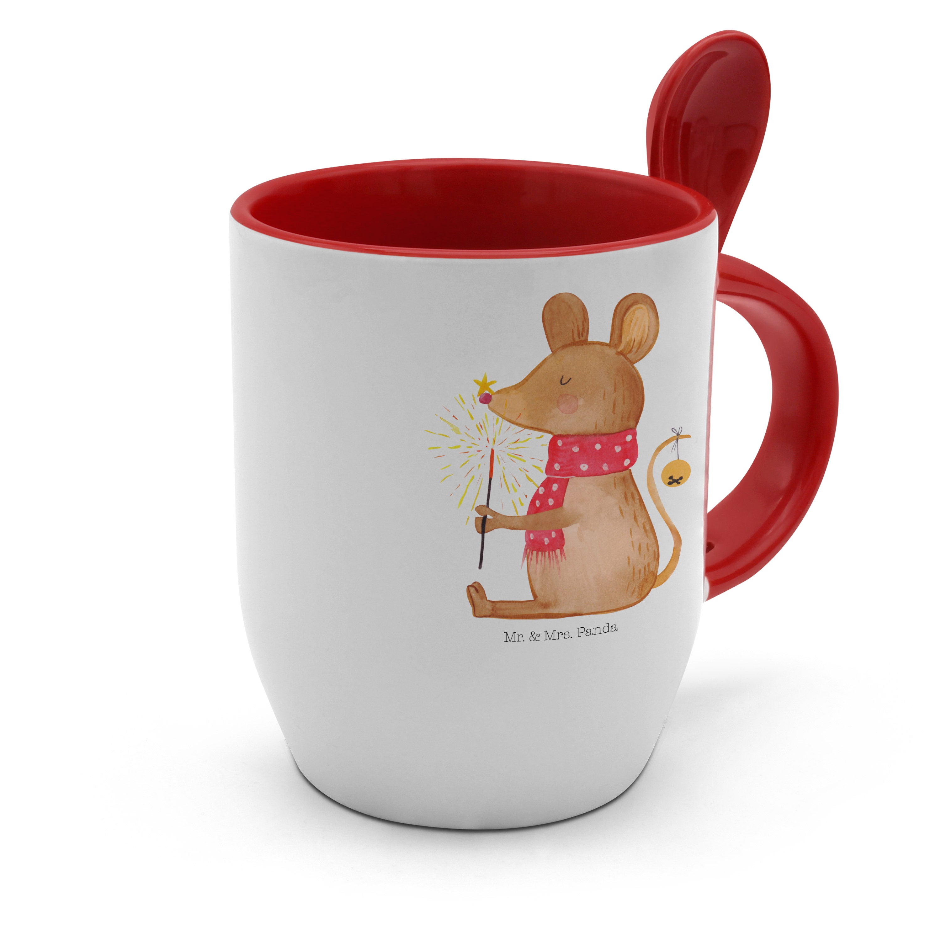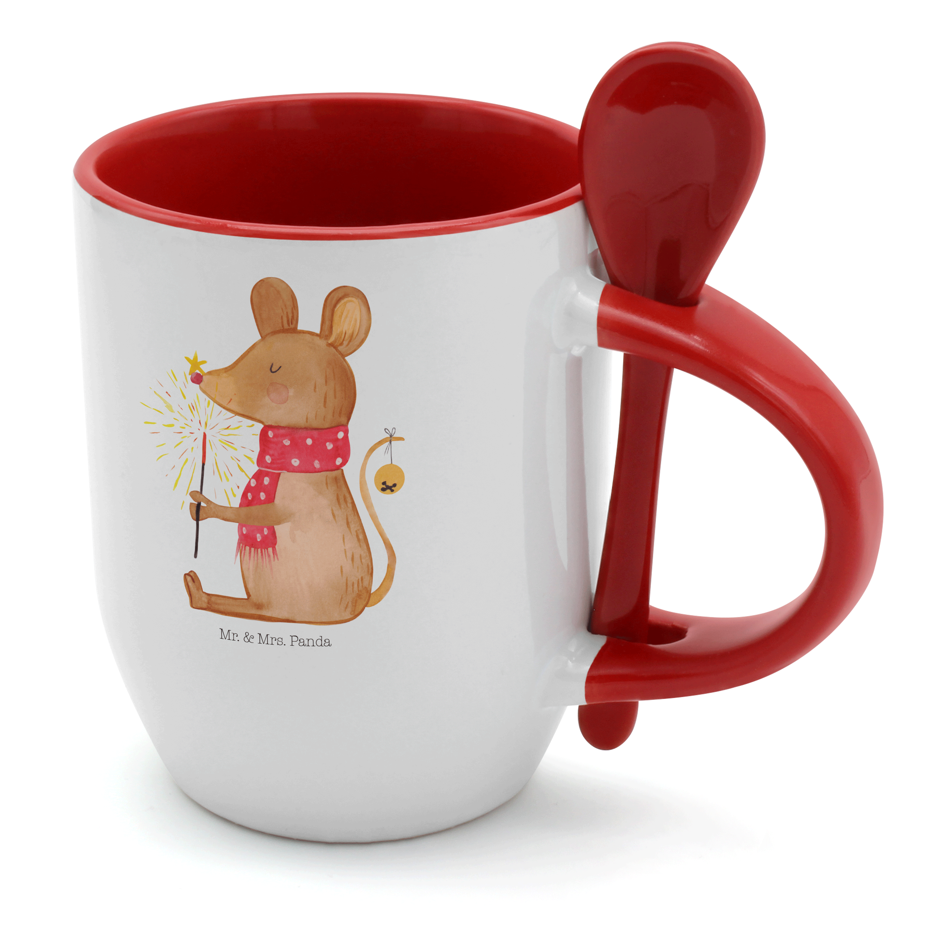 Tasse mit Löffel Weihnachtsmaus - mit Spruch