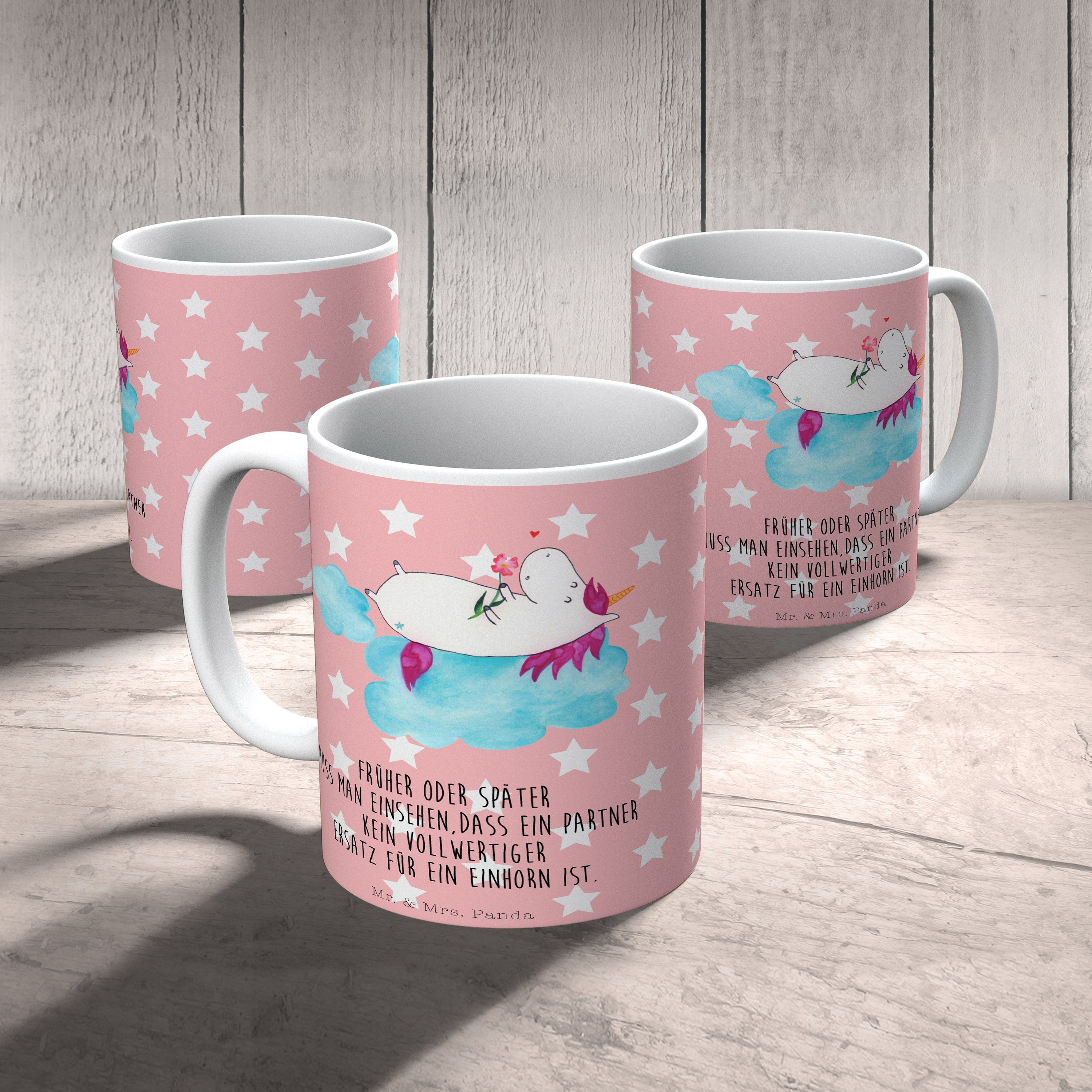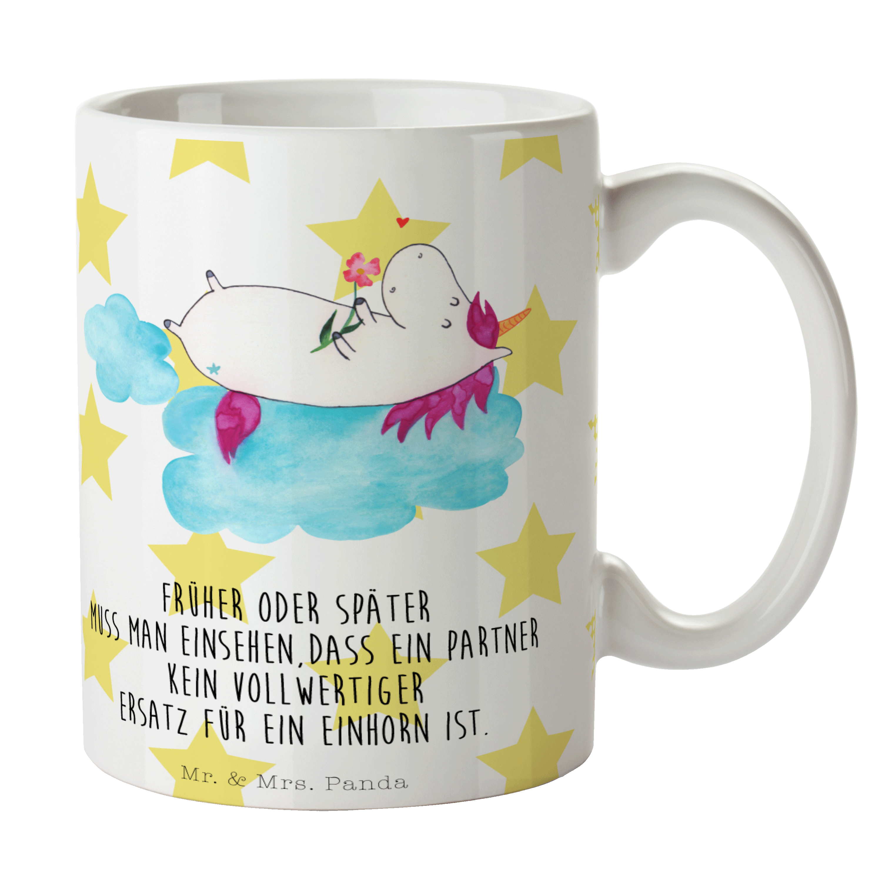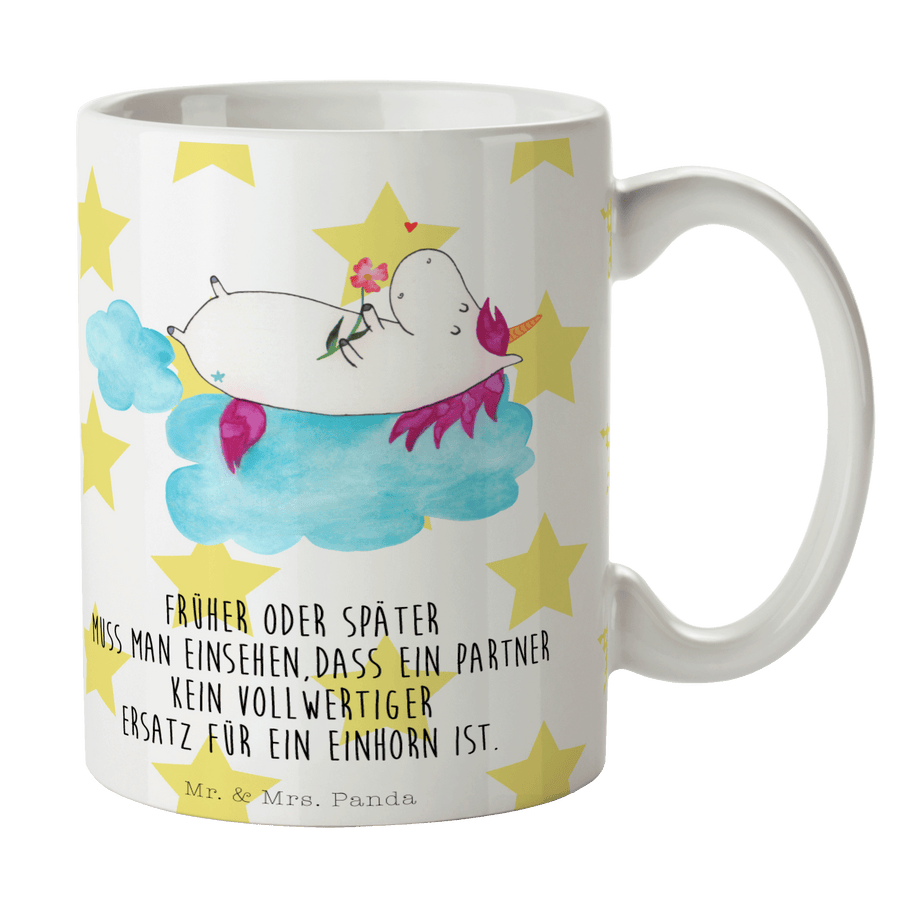 Tasse Einhorn verliebt auf Wolke - mit Spruch - Weiß