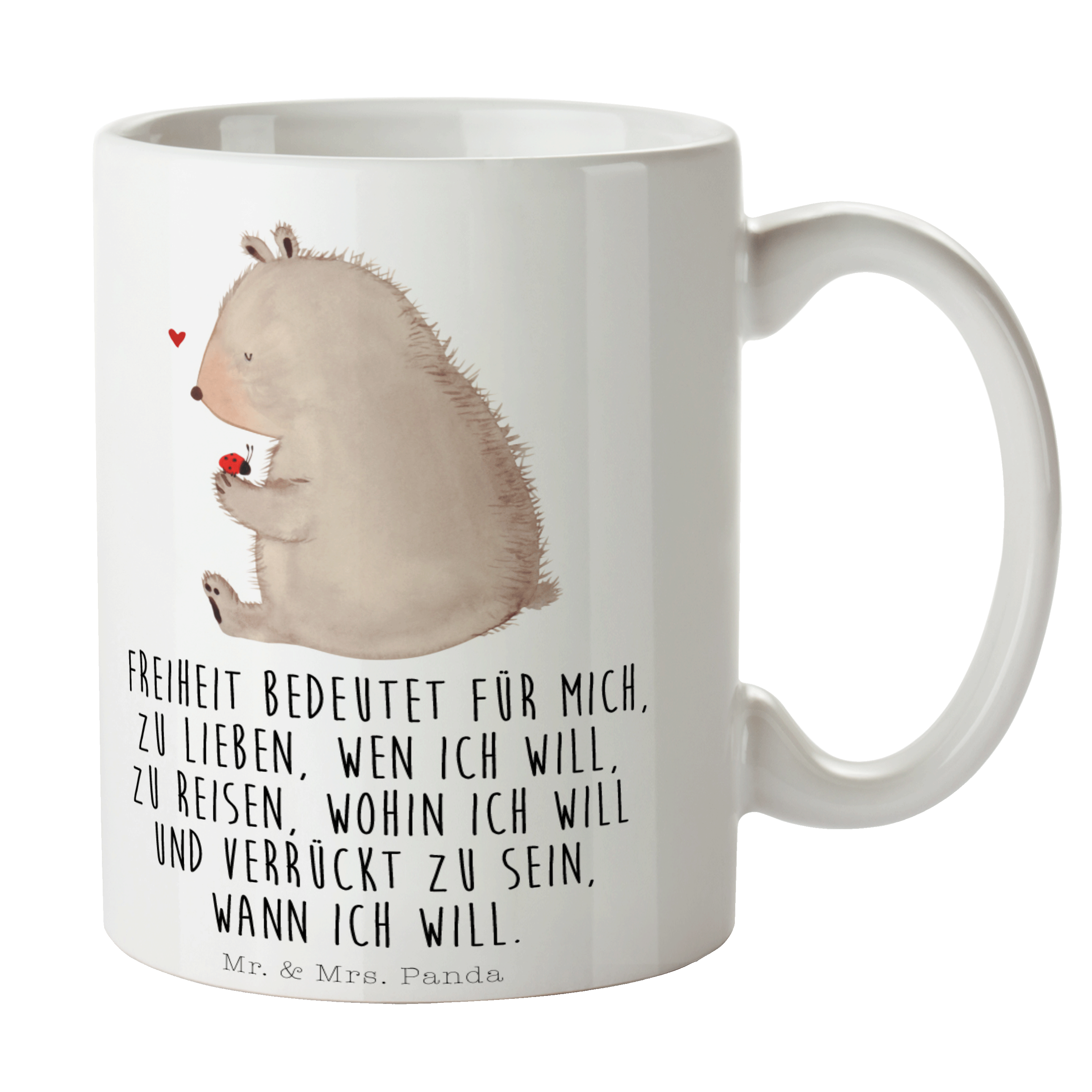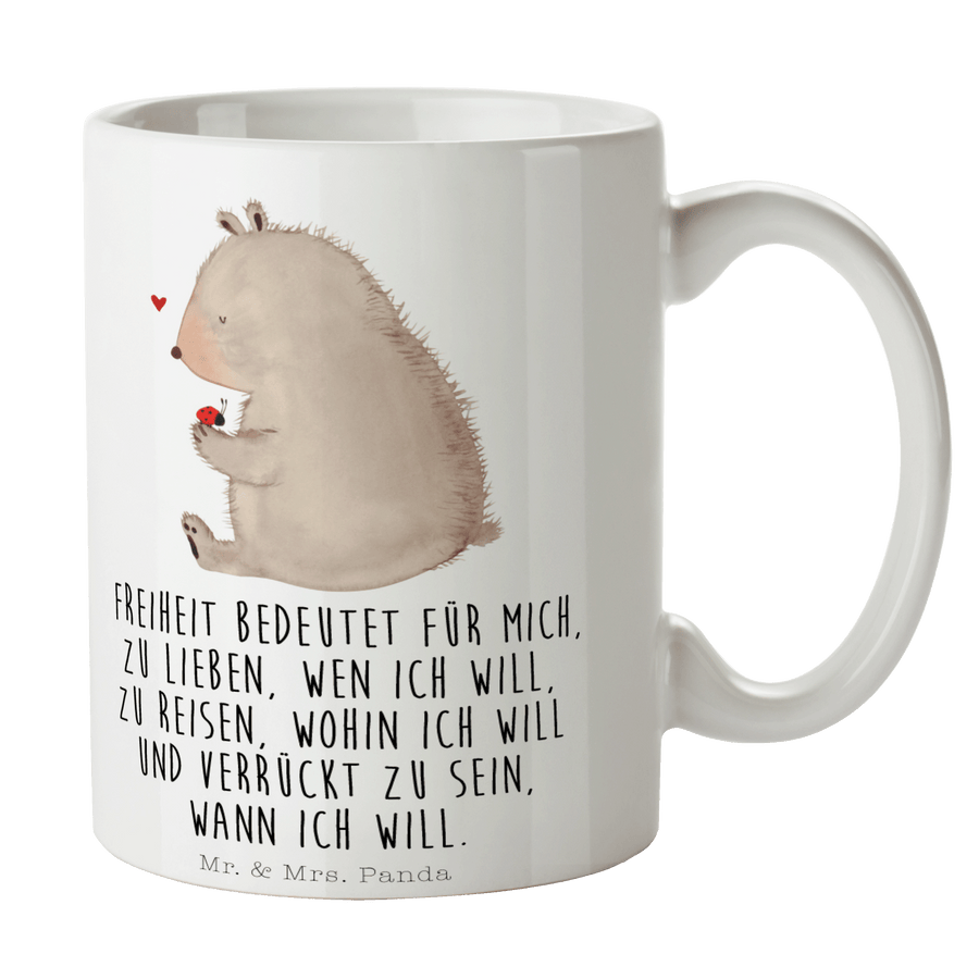 Tasse Bär mit Marienkäfer - mit Spruch - Weiß
