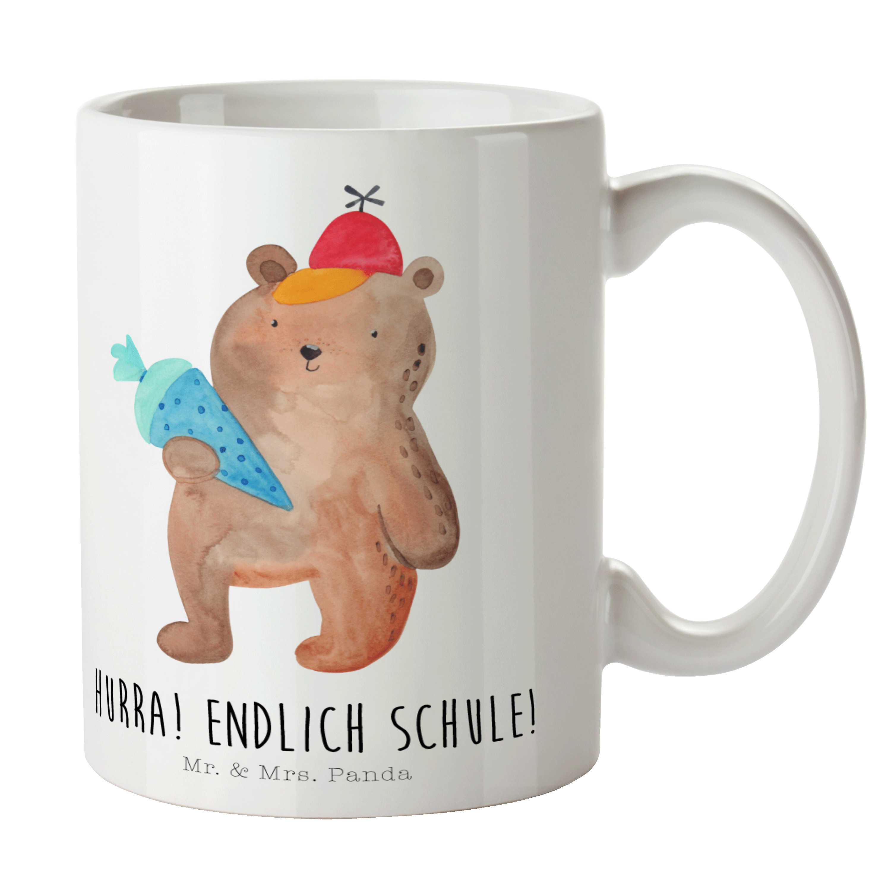 Tasse Bär mit Schultüte - mit Spruch - Weiß