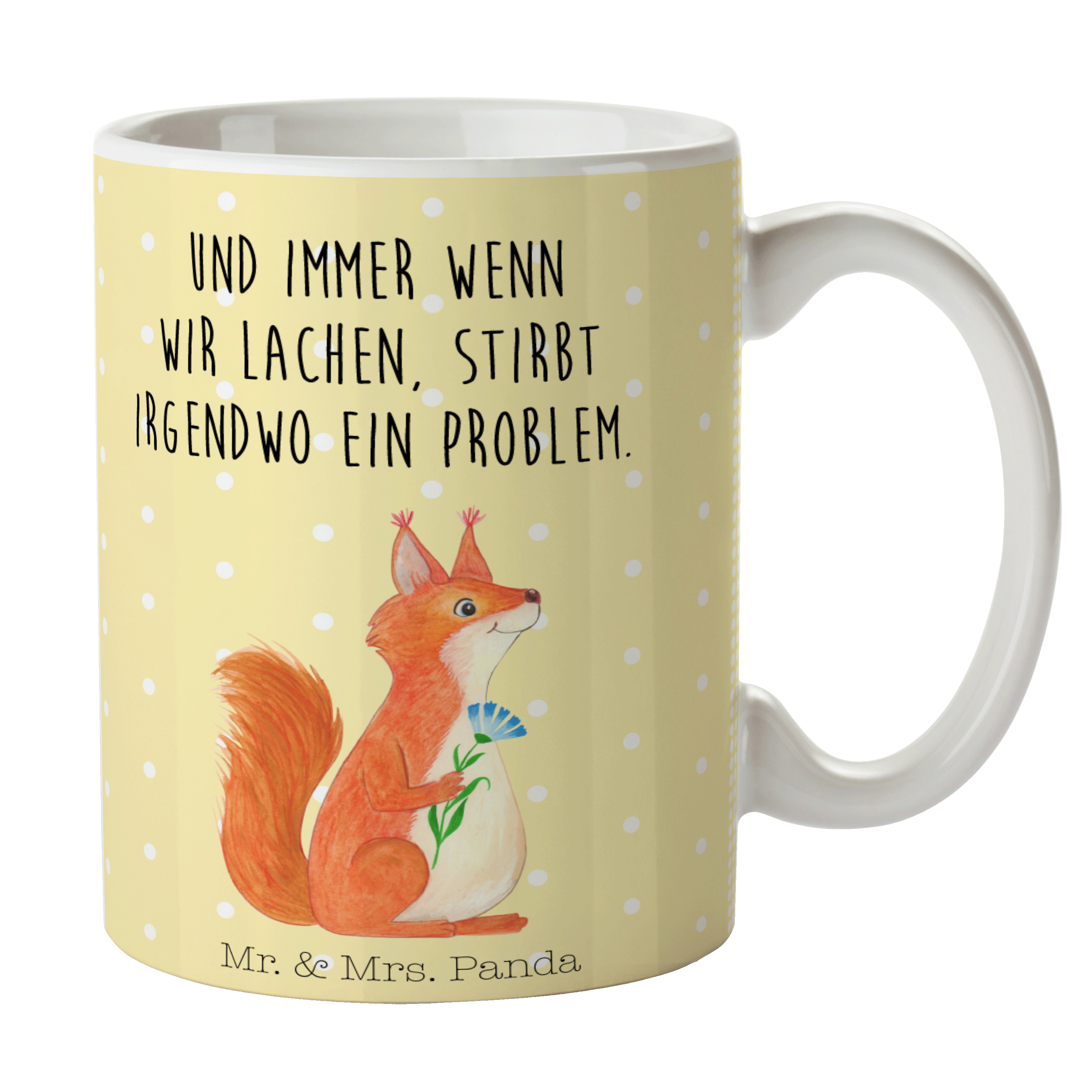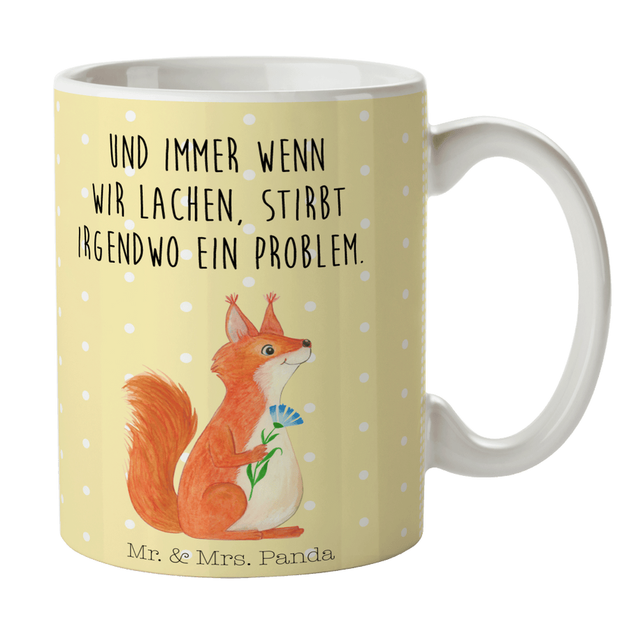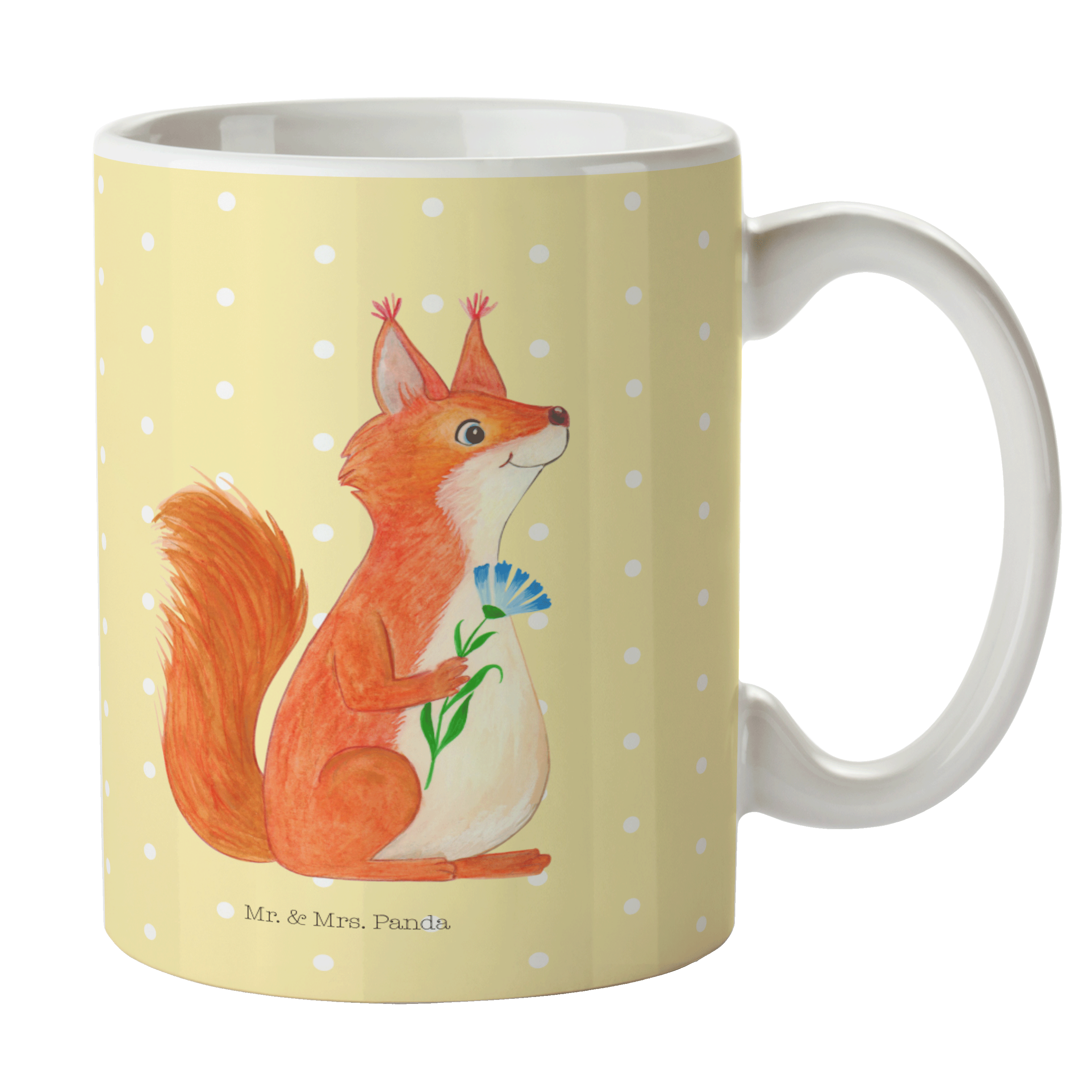Tasse Eichhörnchen Blume - mit Spruch - Gelb Pastell