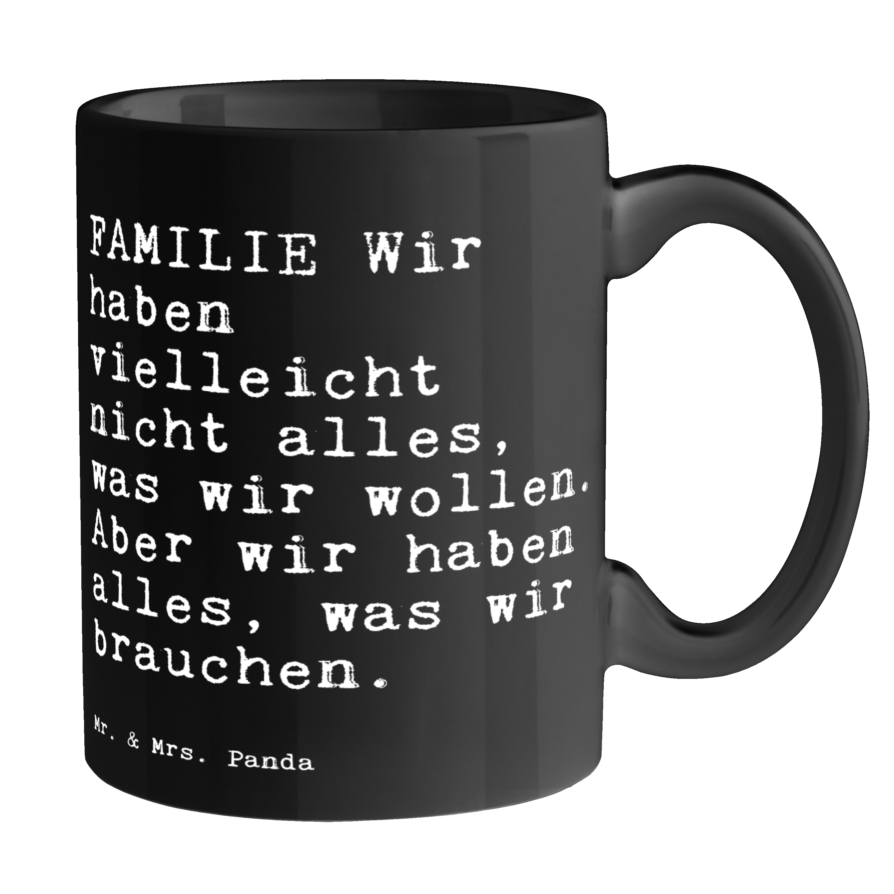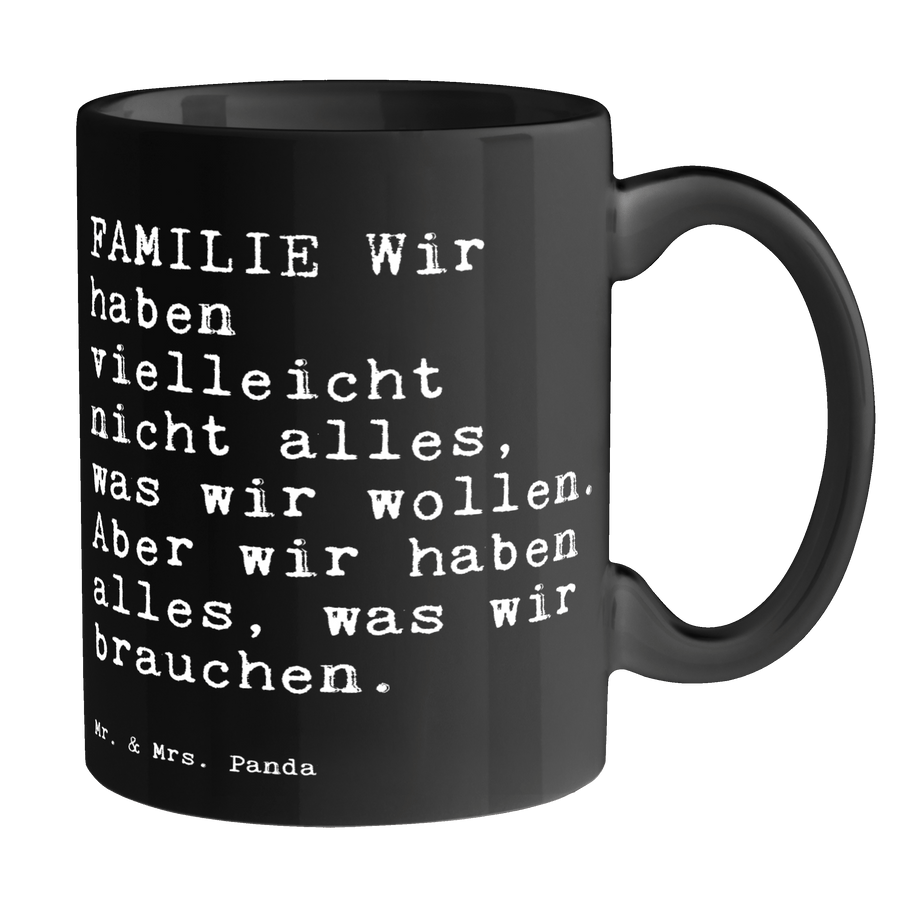 Tasse Sprüche und Zitate FAMILIE Wir haben vielleicht nicht alles, was wir wollen. Aber wir haben alles, was wir brauchen.