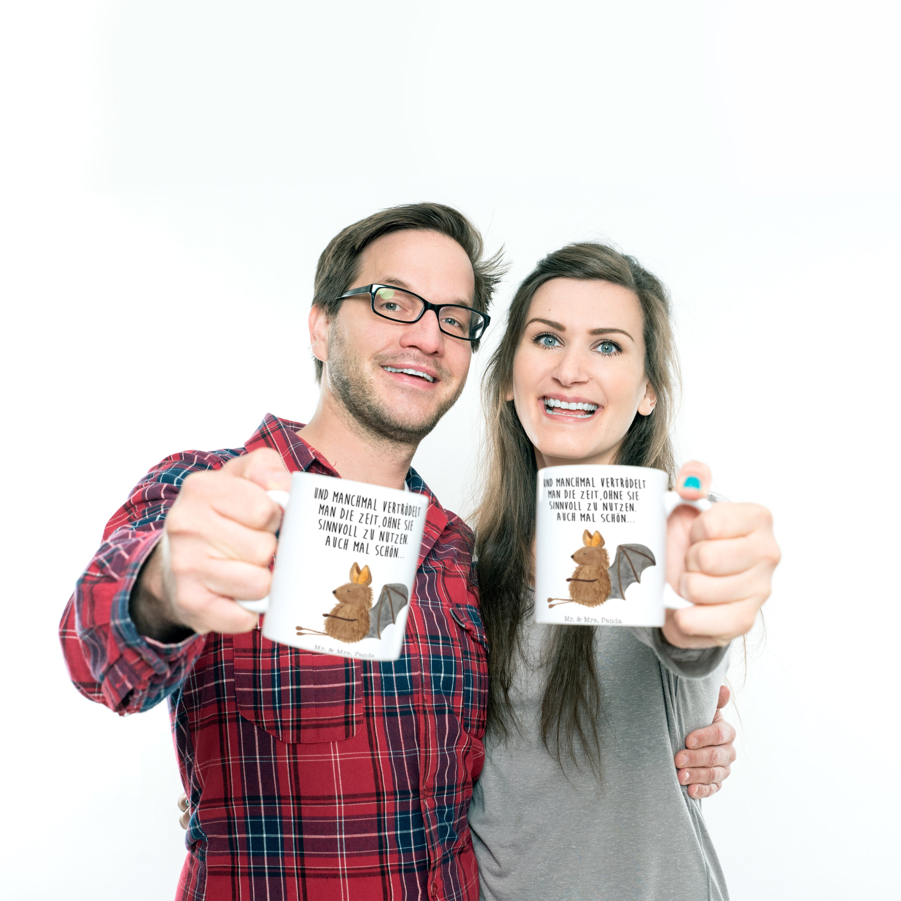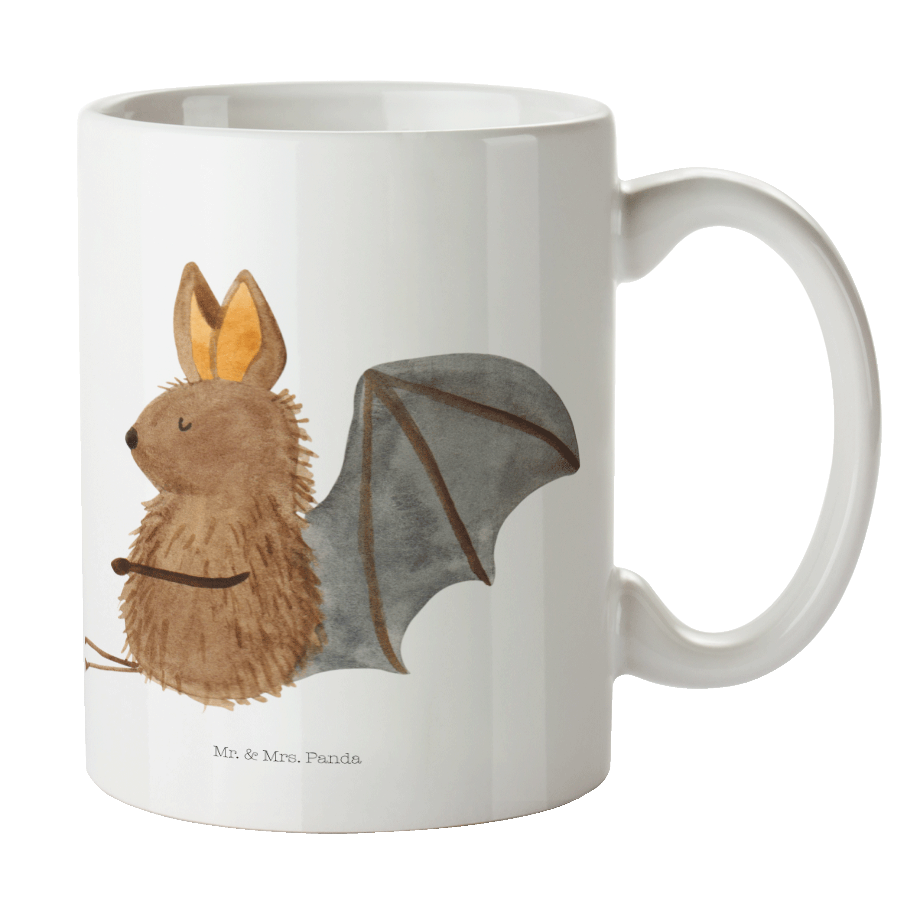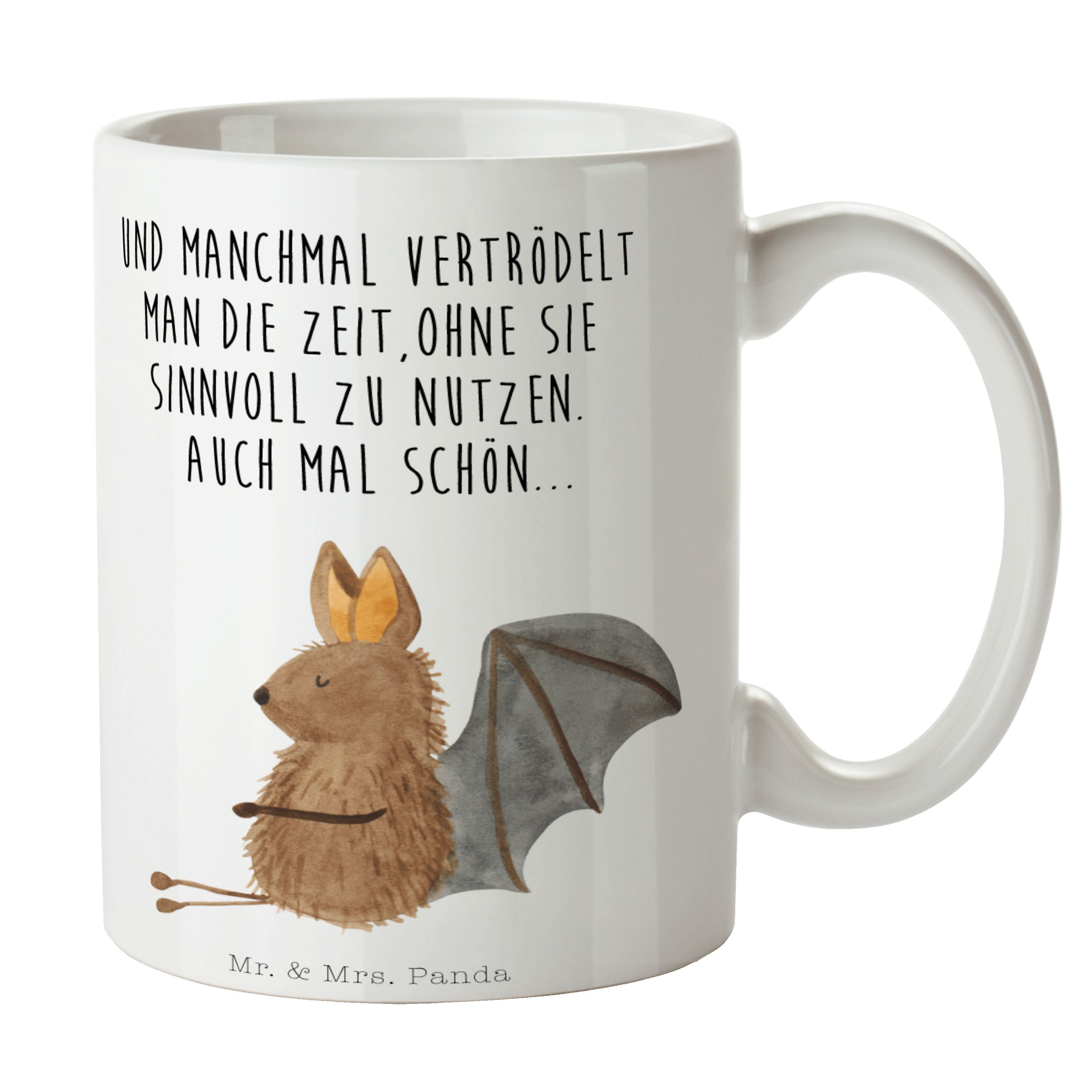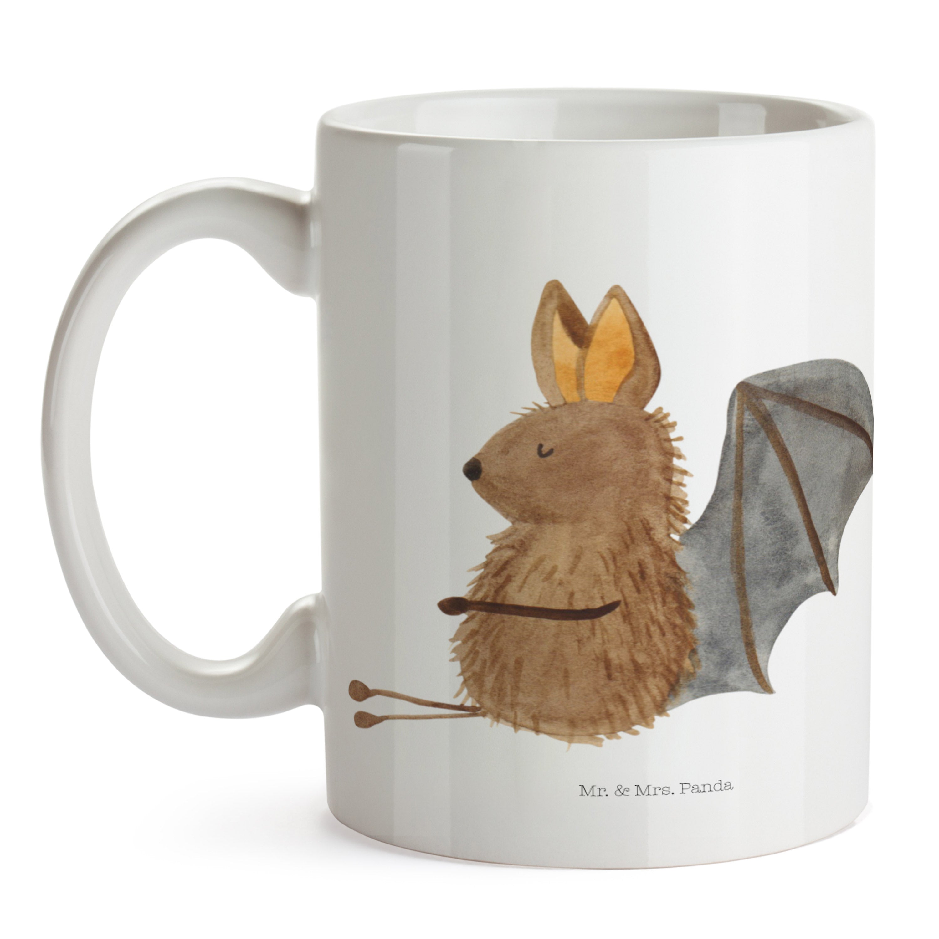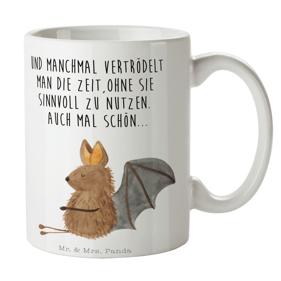 Tasse Fledermaus sitzend - mit Spruch - Weiß