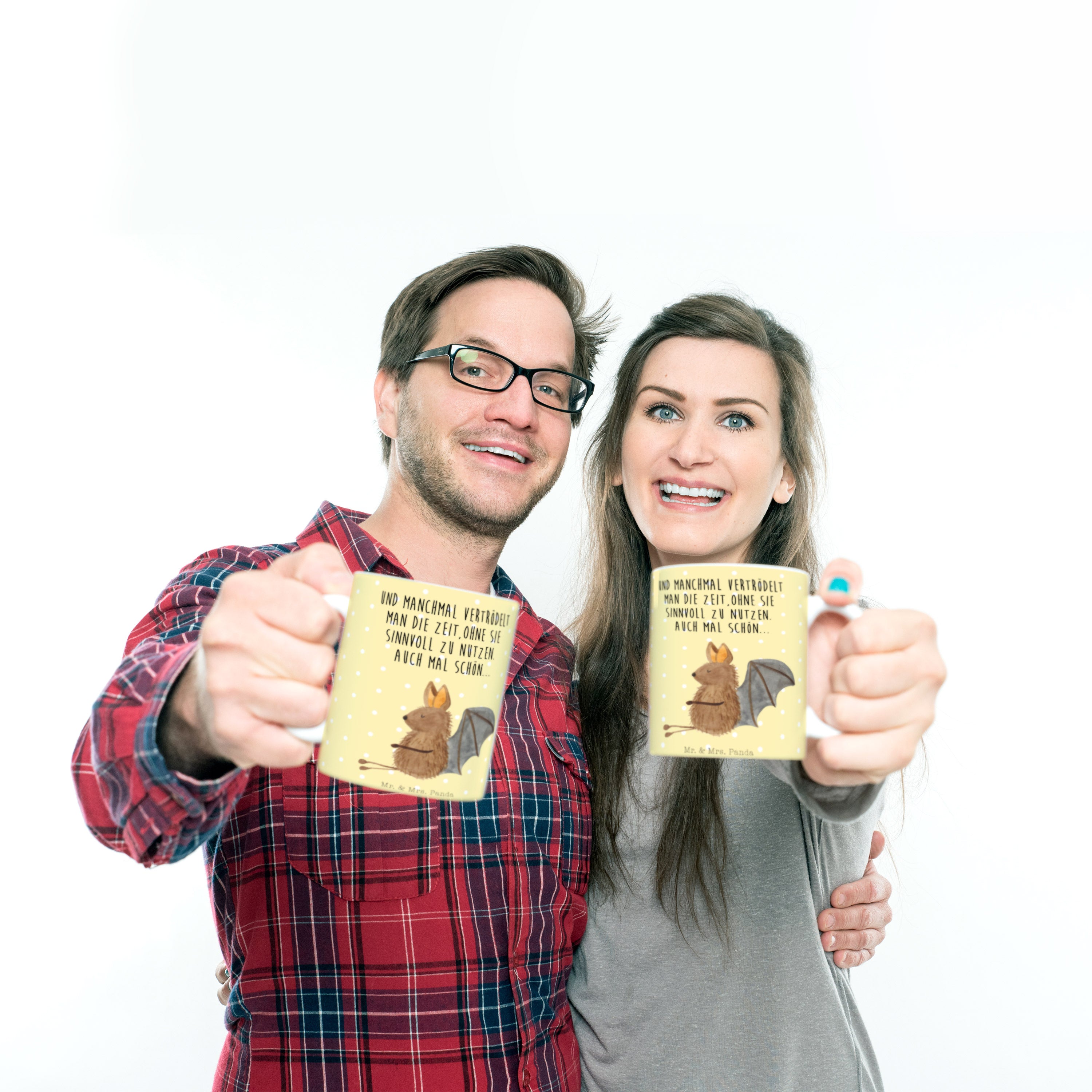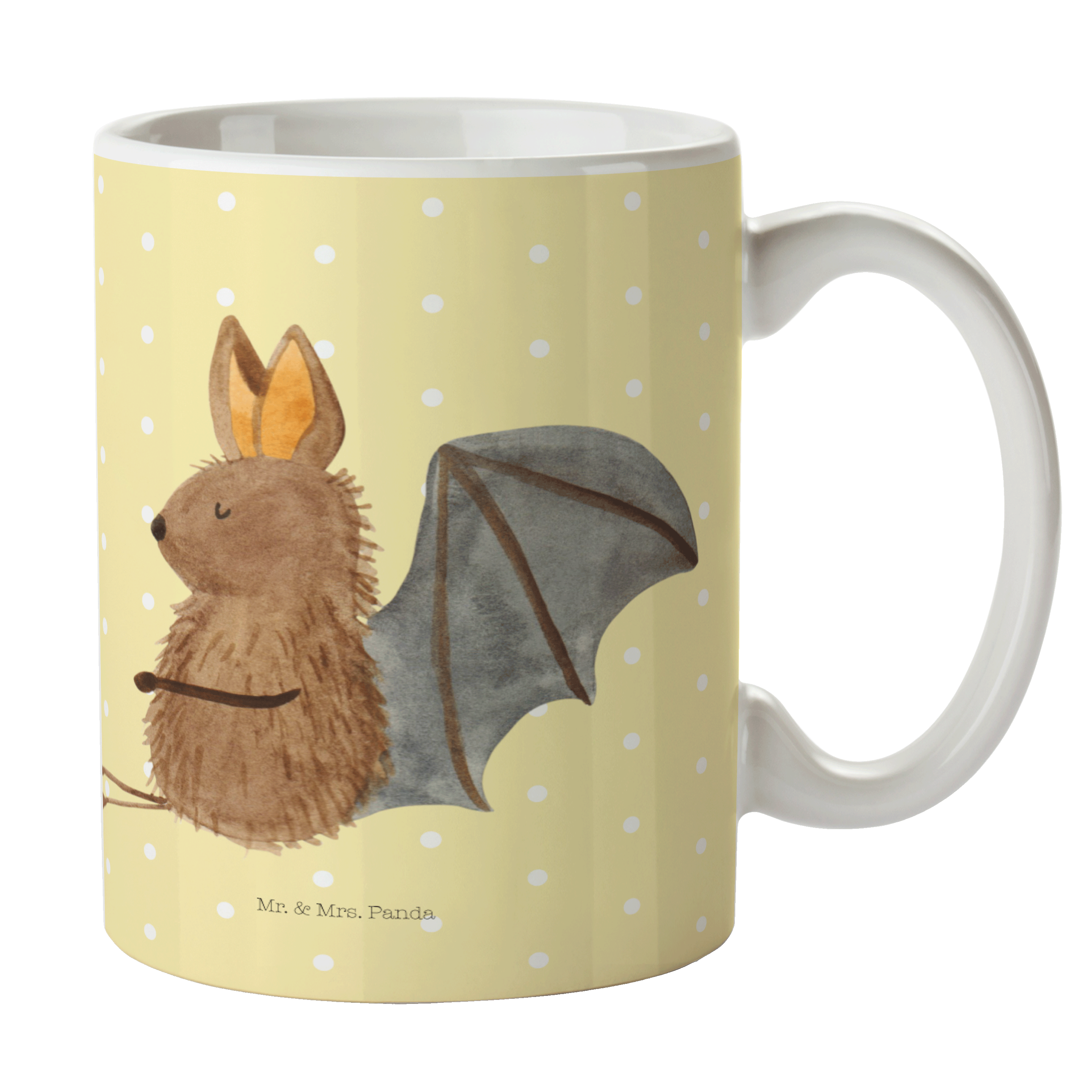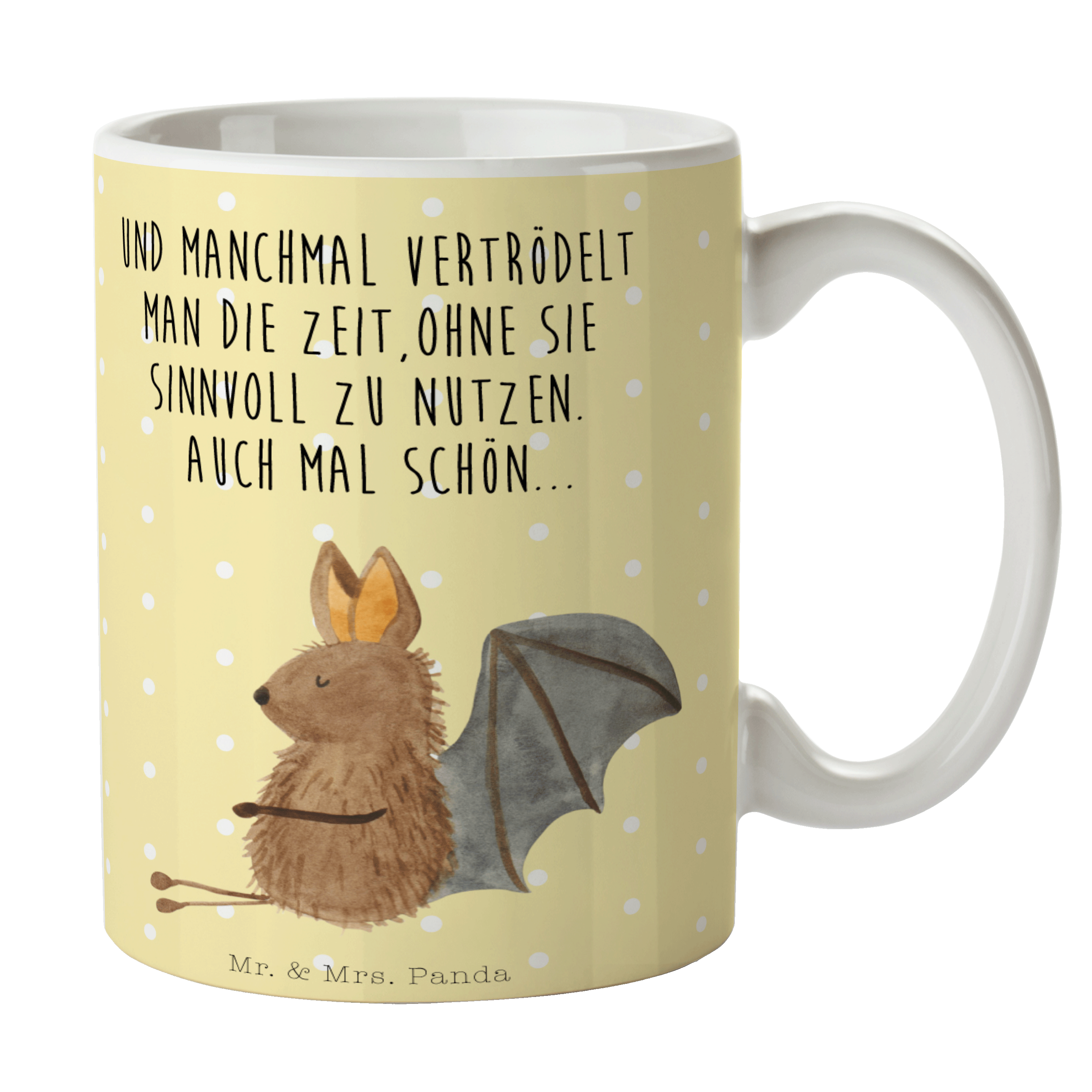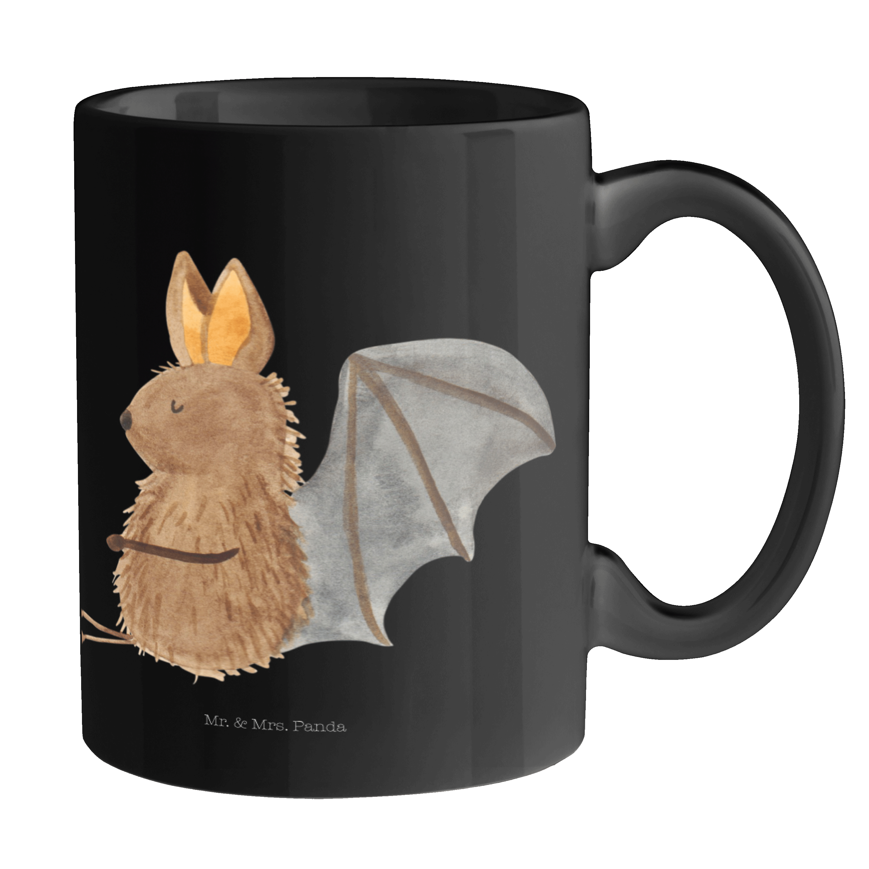 Tasse Fledermaus sitzend - mit Spruch - Weiß