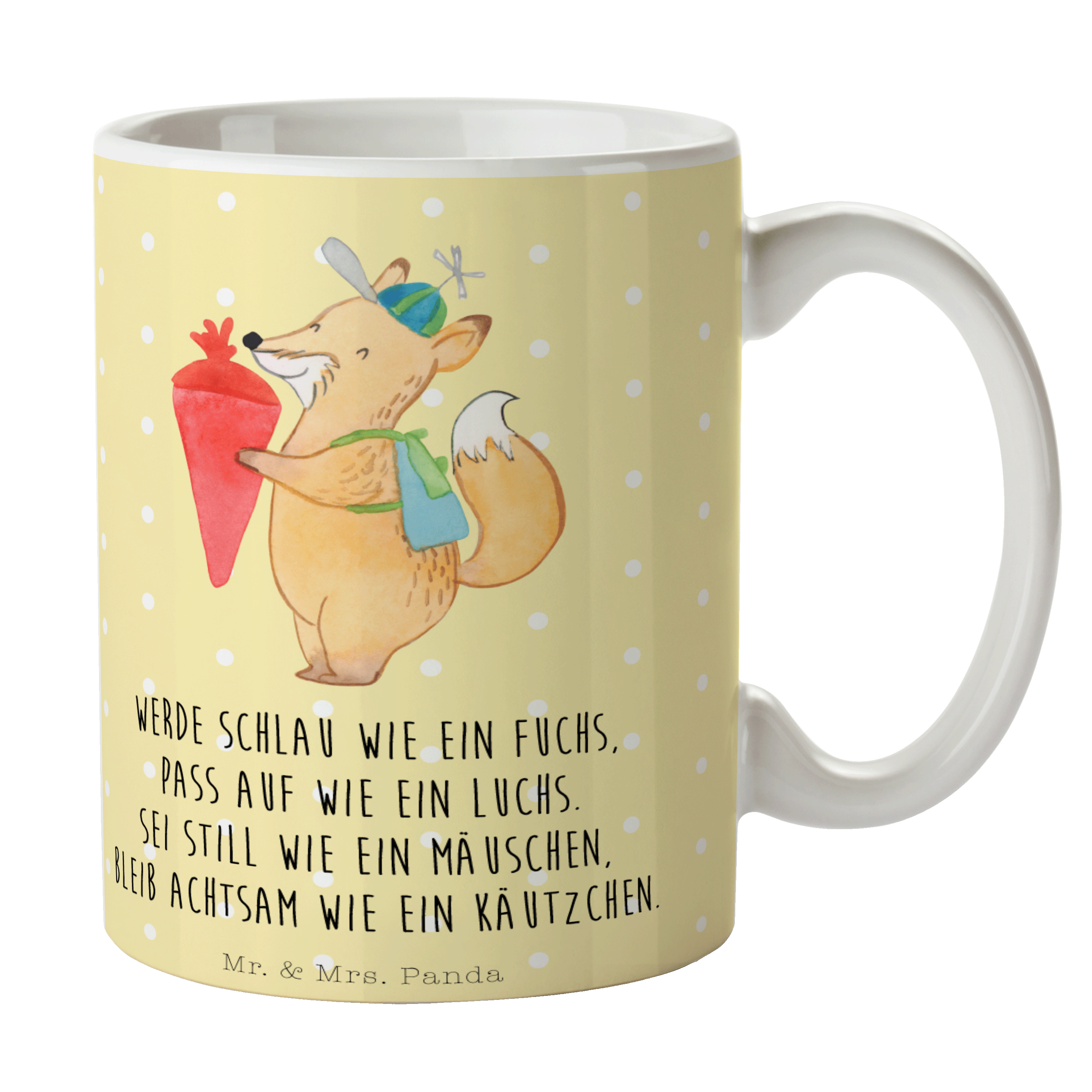 Tasse Fuchs Schulkind - mit Spruch - Gelb Pastell