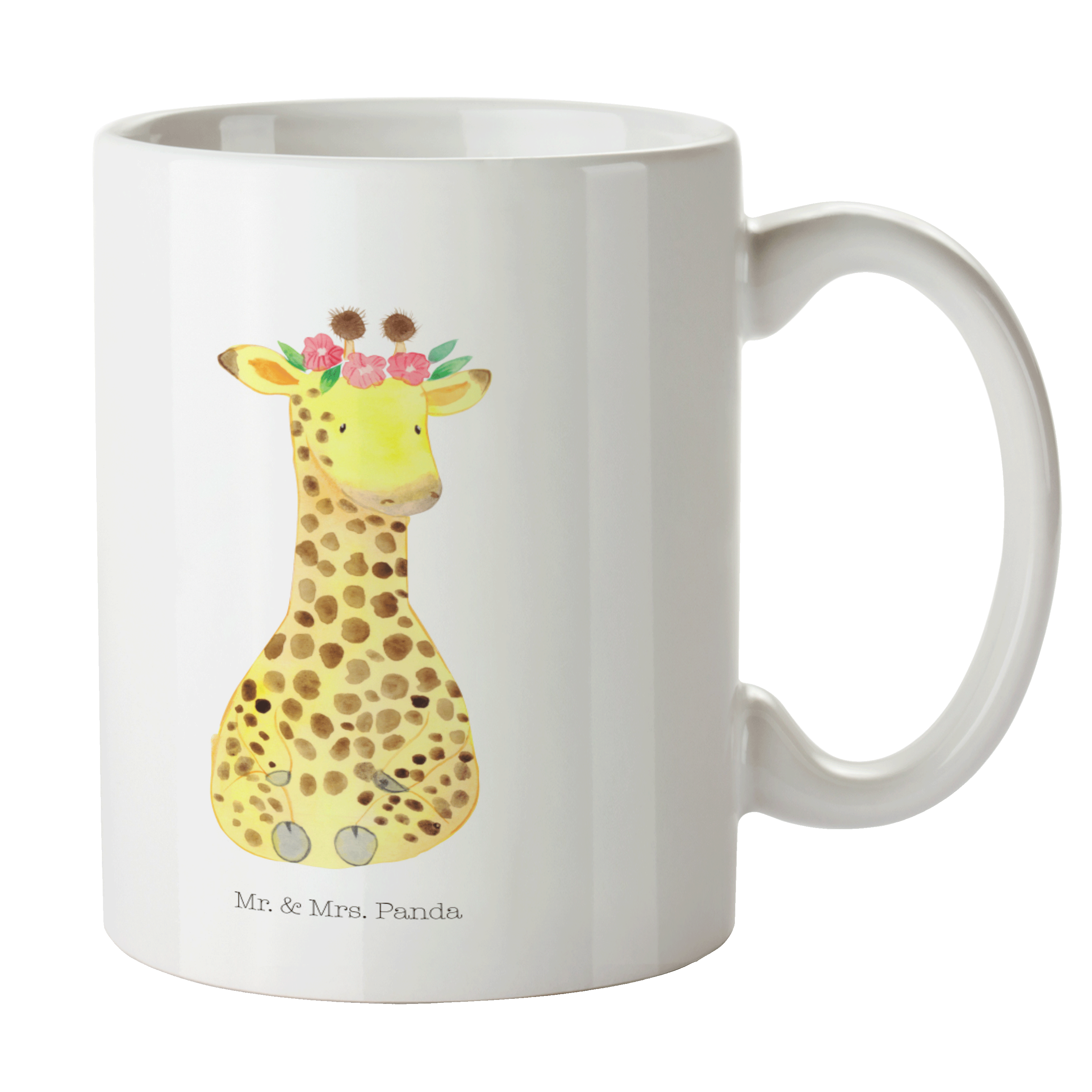 Tasse Giraffe Blumenkranz - mit Spruch - Weiß