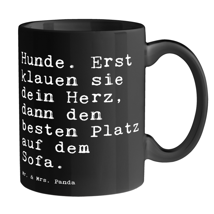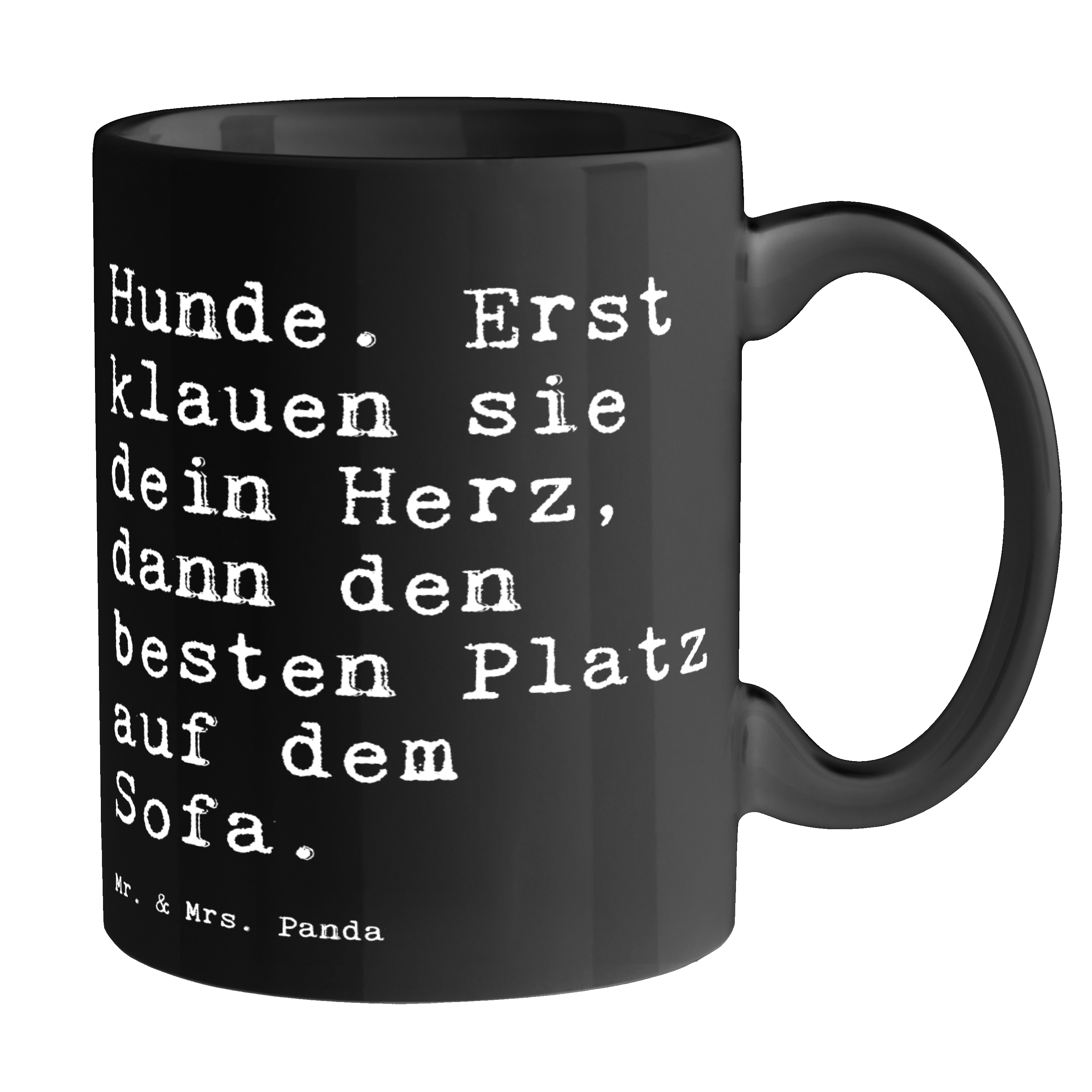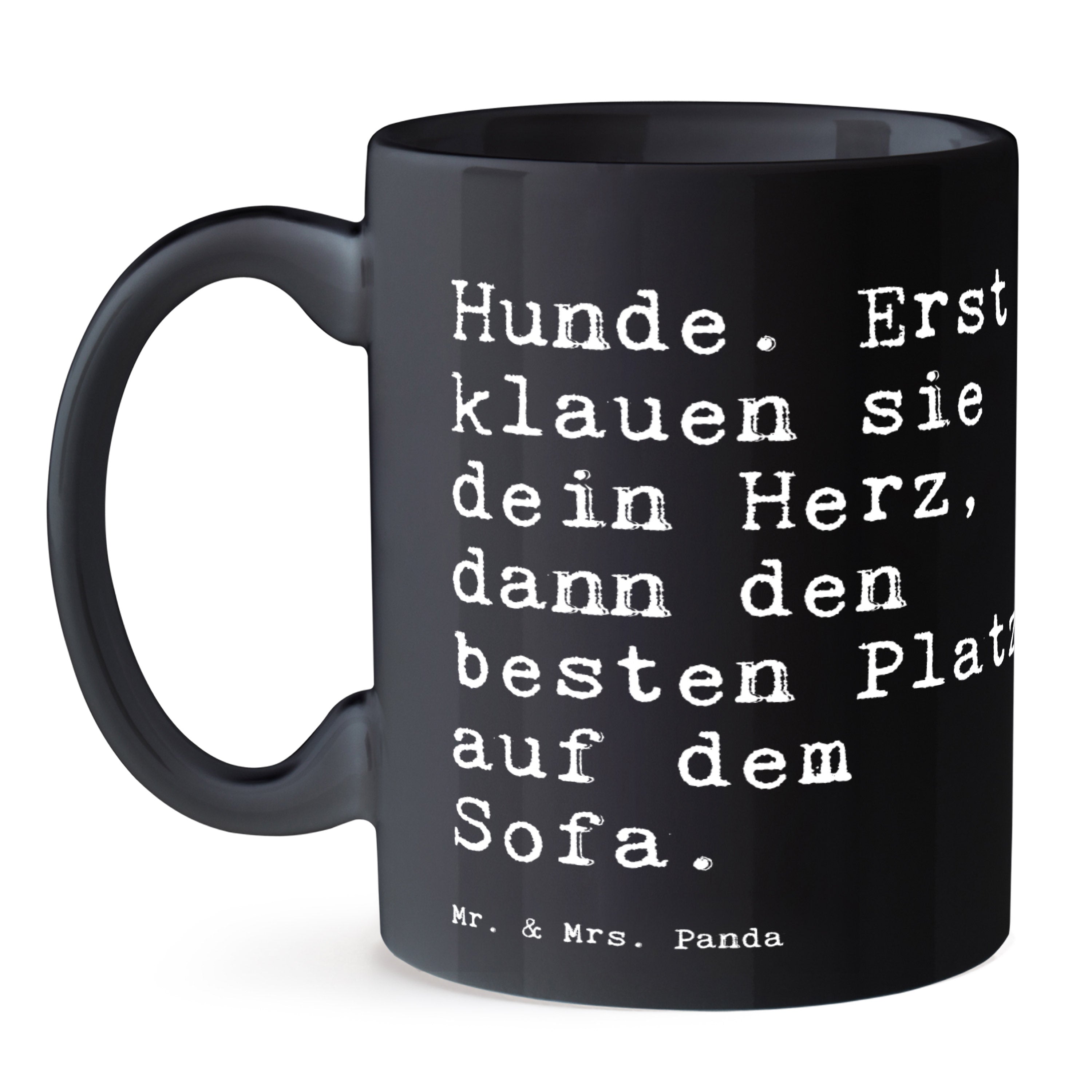 Tasse Sprüche und Zitate Hunde. Erst klauen sie dein Herz, dann den besten Platz auf dem Sofa.