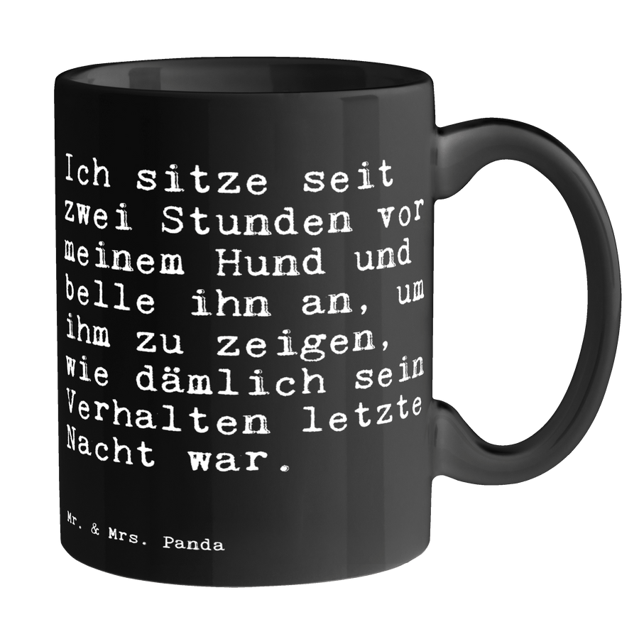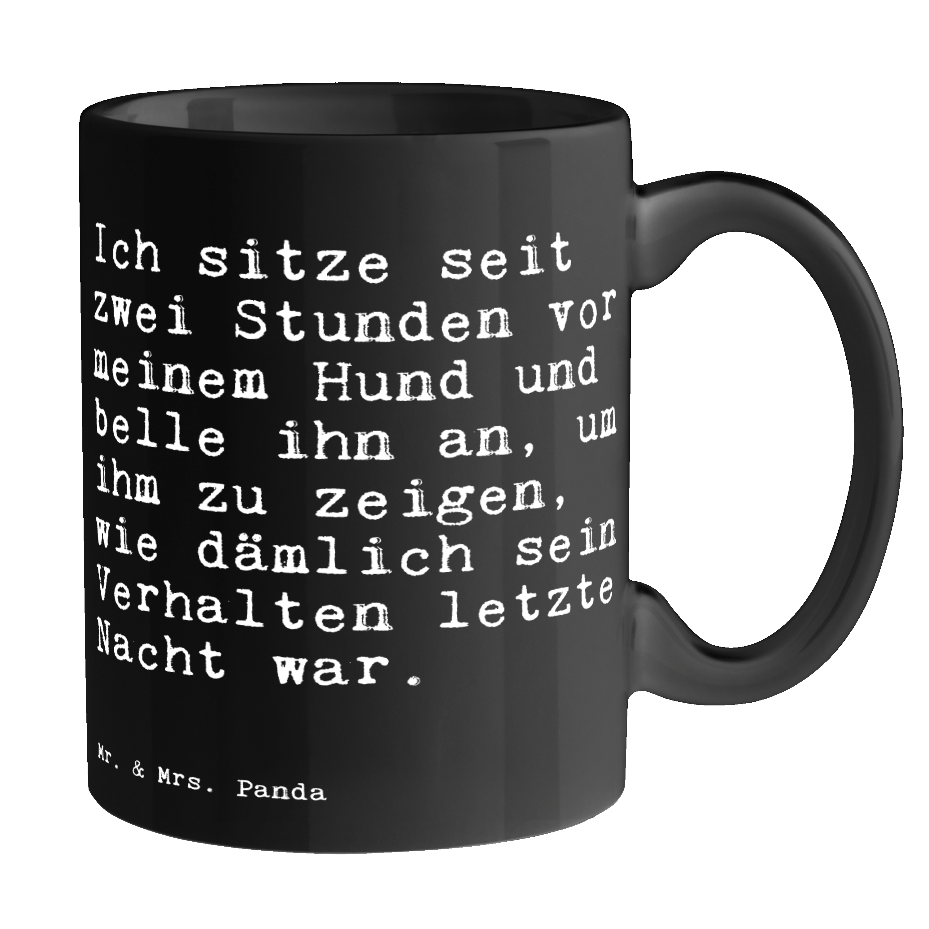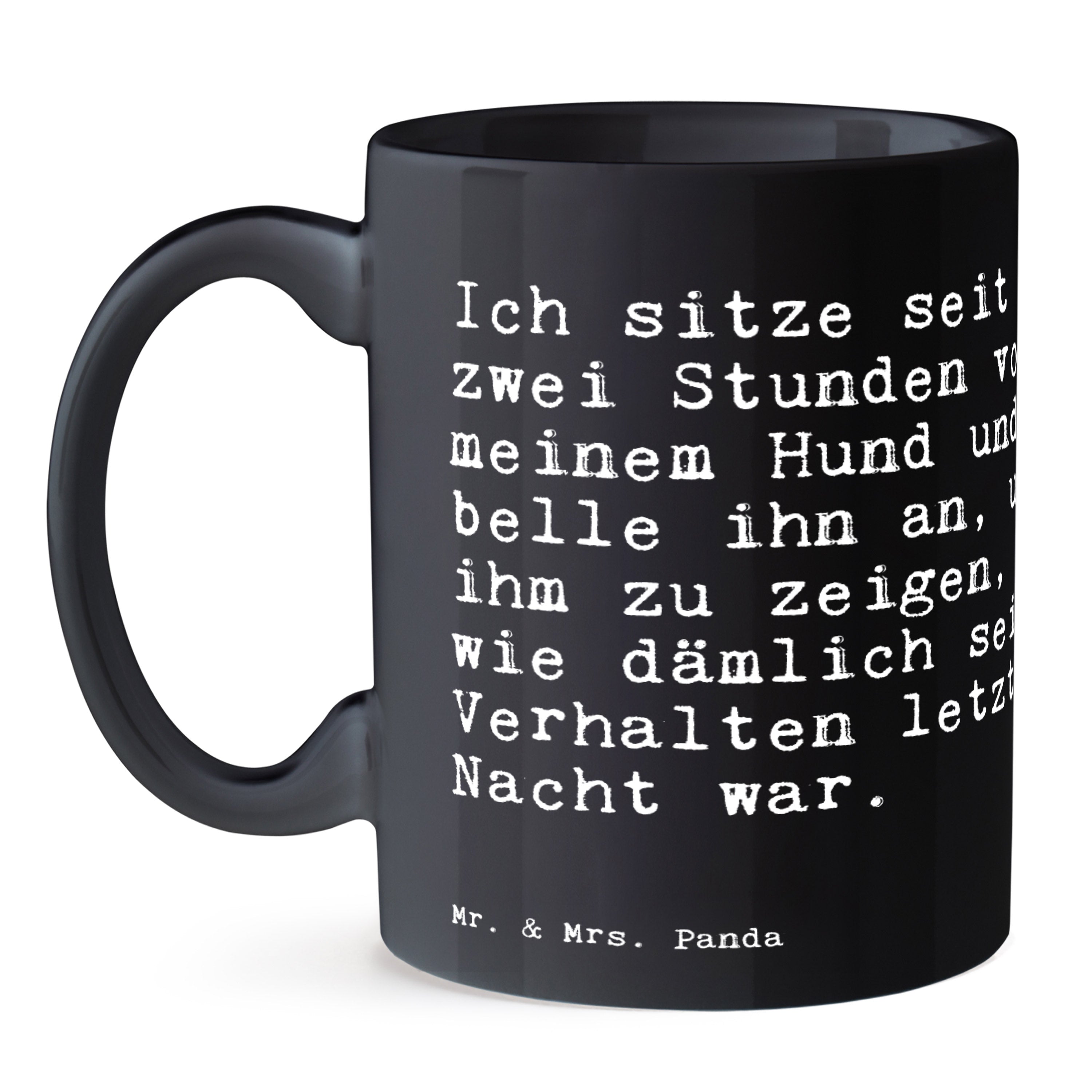 Tasse Sprüche und Zitate Ich sitze seit zwei Stunden vor meinem Hund und belle ihn an, um ihm zu zeigen, wie dämlich sein Verhalten letzte Nacht war.