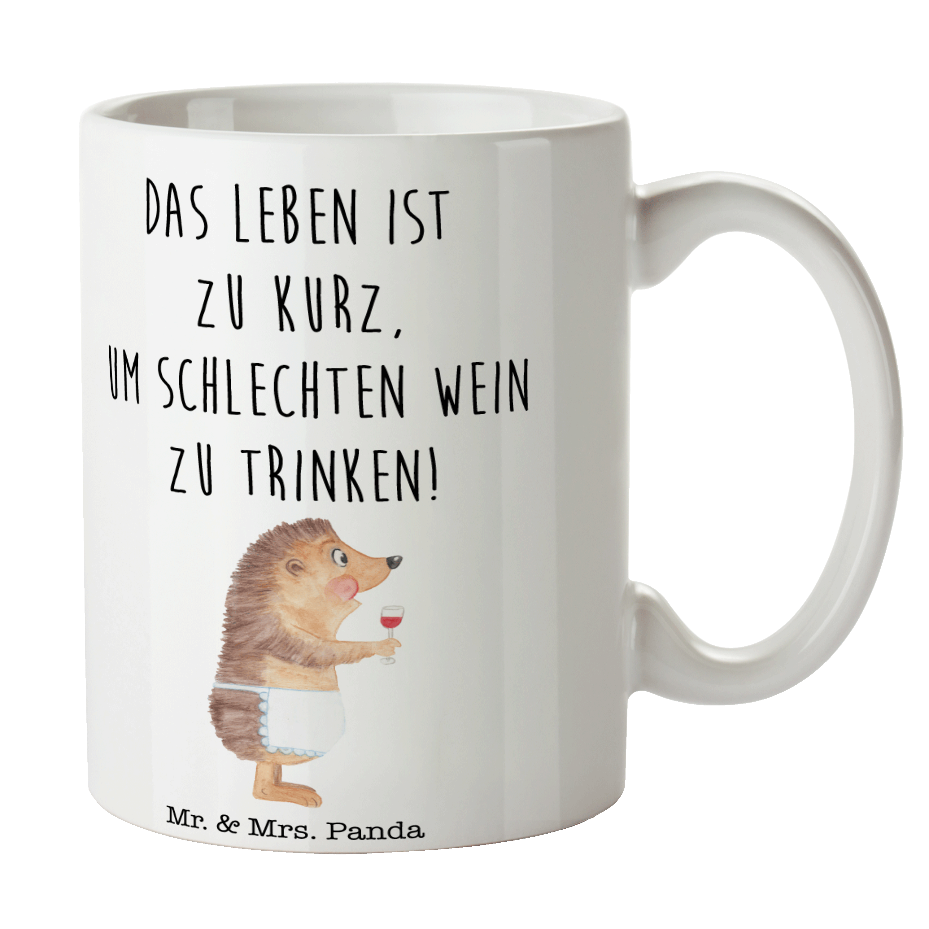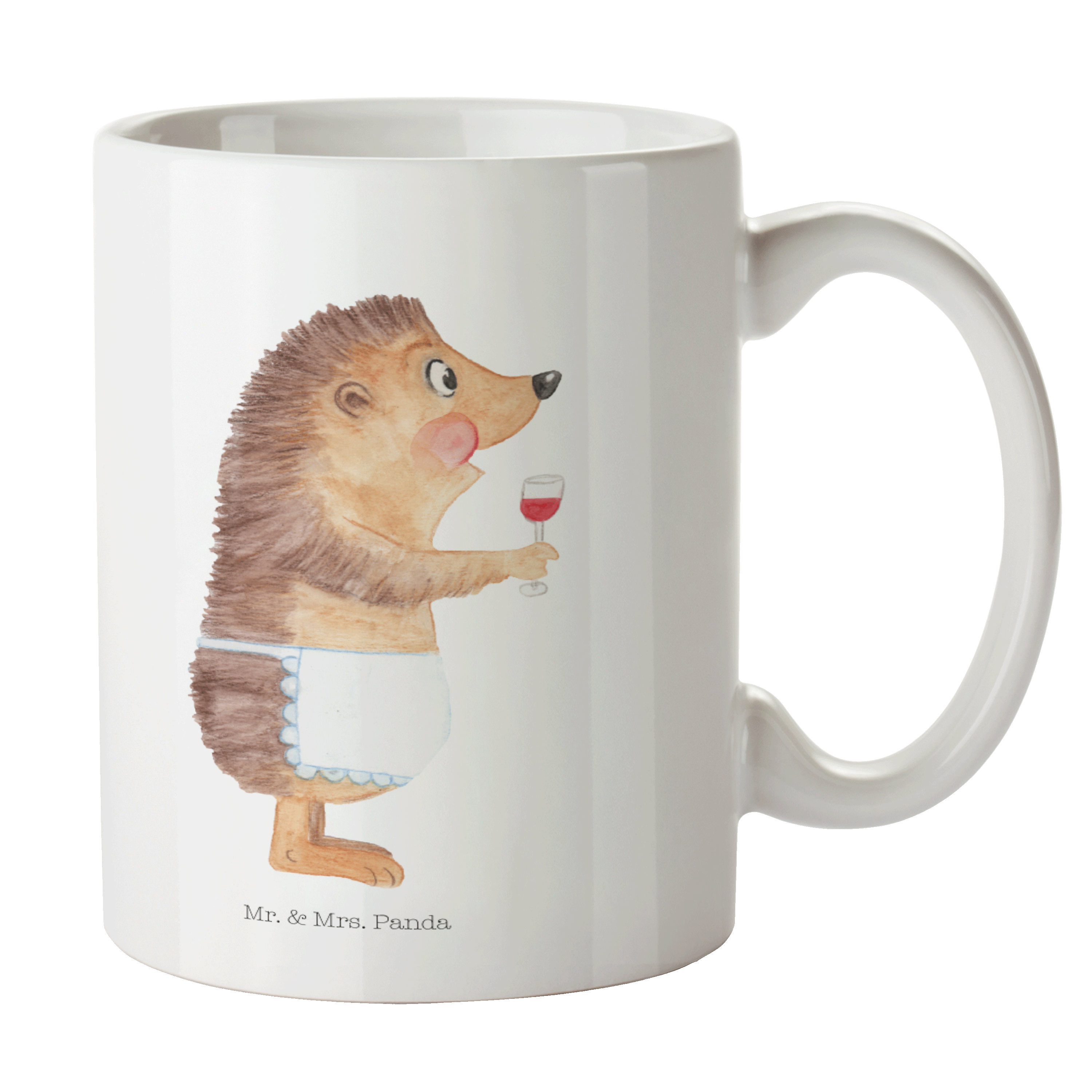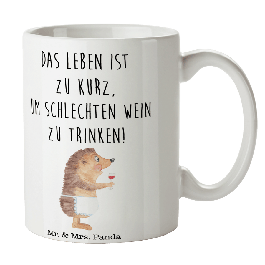 Tasse Igel mit Wein - mit Spruch - Weiß