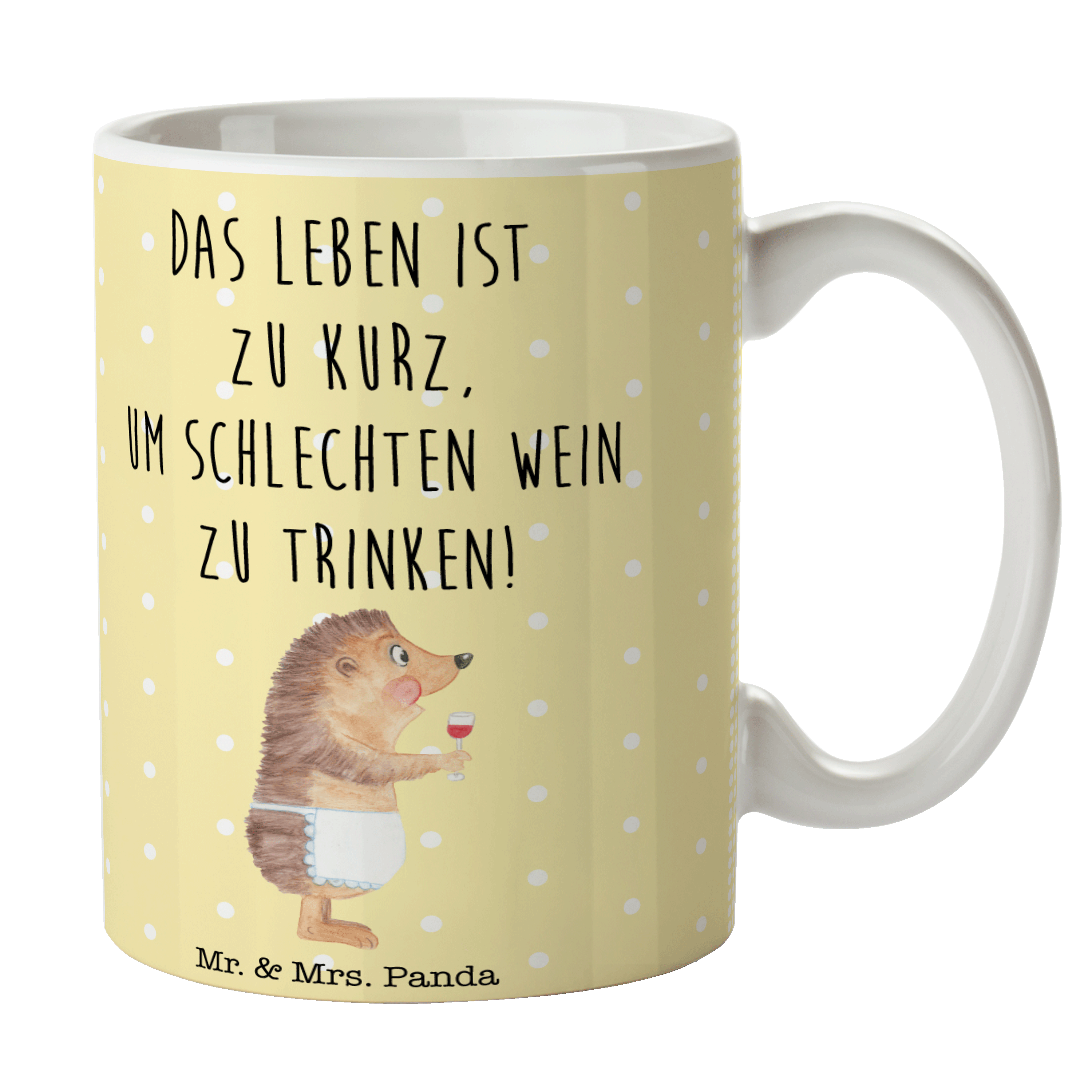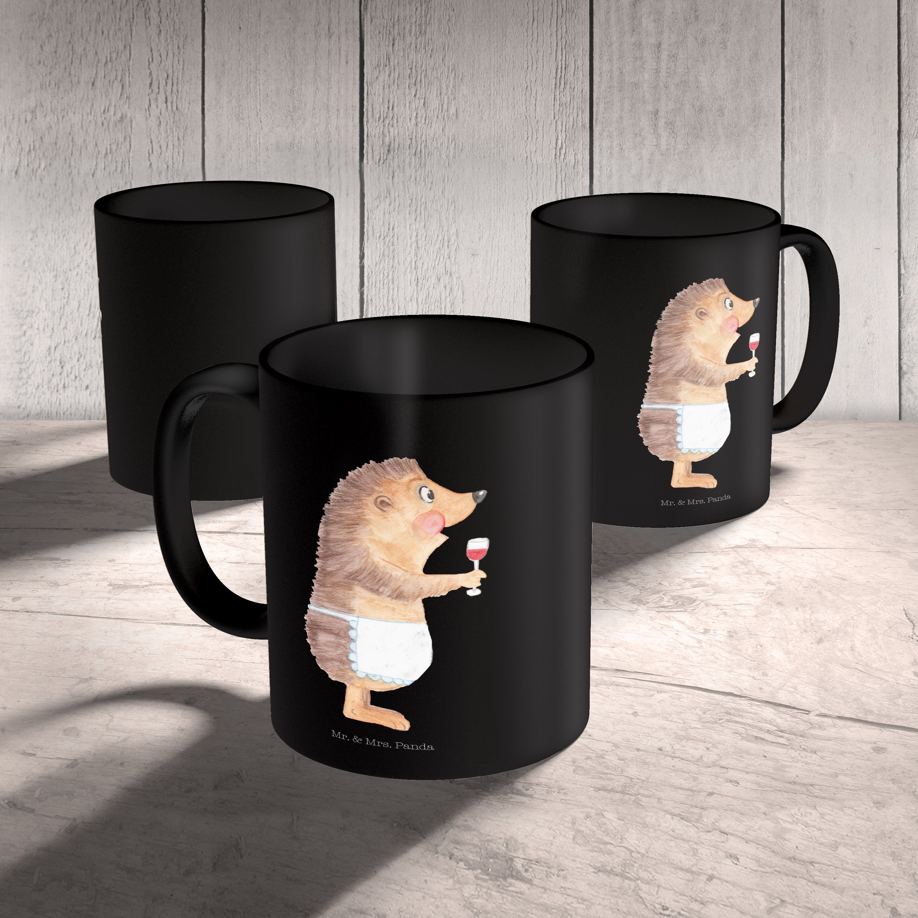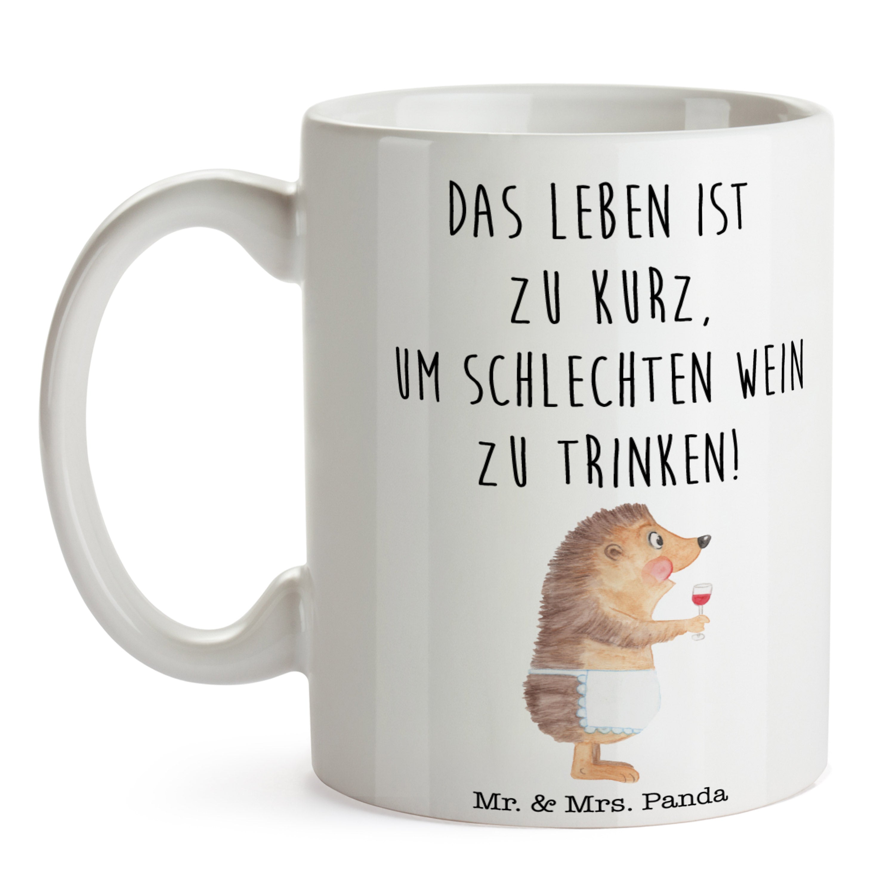 Tasse Igel mit Wein - mit Spruch - Weiß