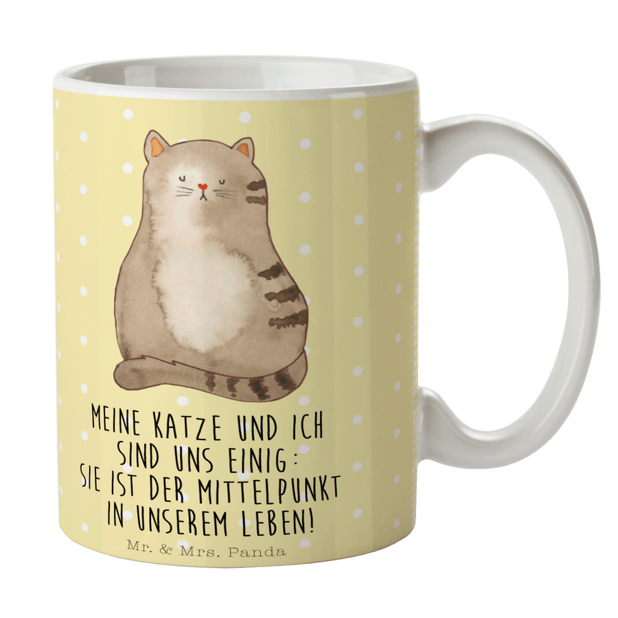 Tasse Katze sitzend - mit Spruch - Gelb Pastell