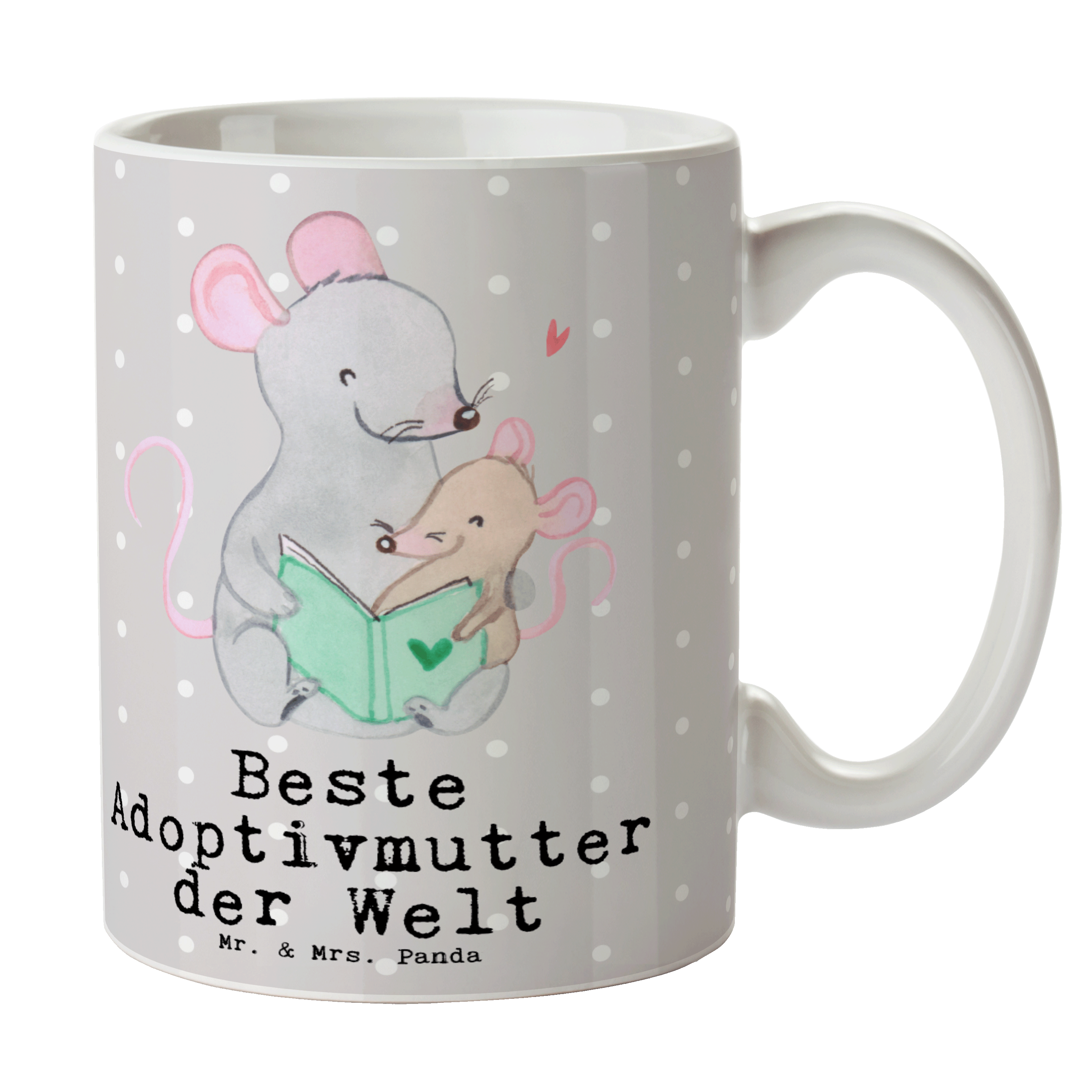 Tasse Maus Beste Adoptivmutter der Welt - Grau Pastell