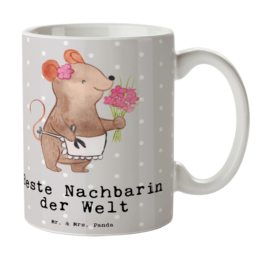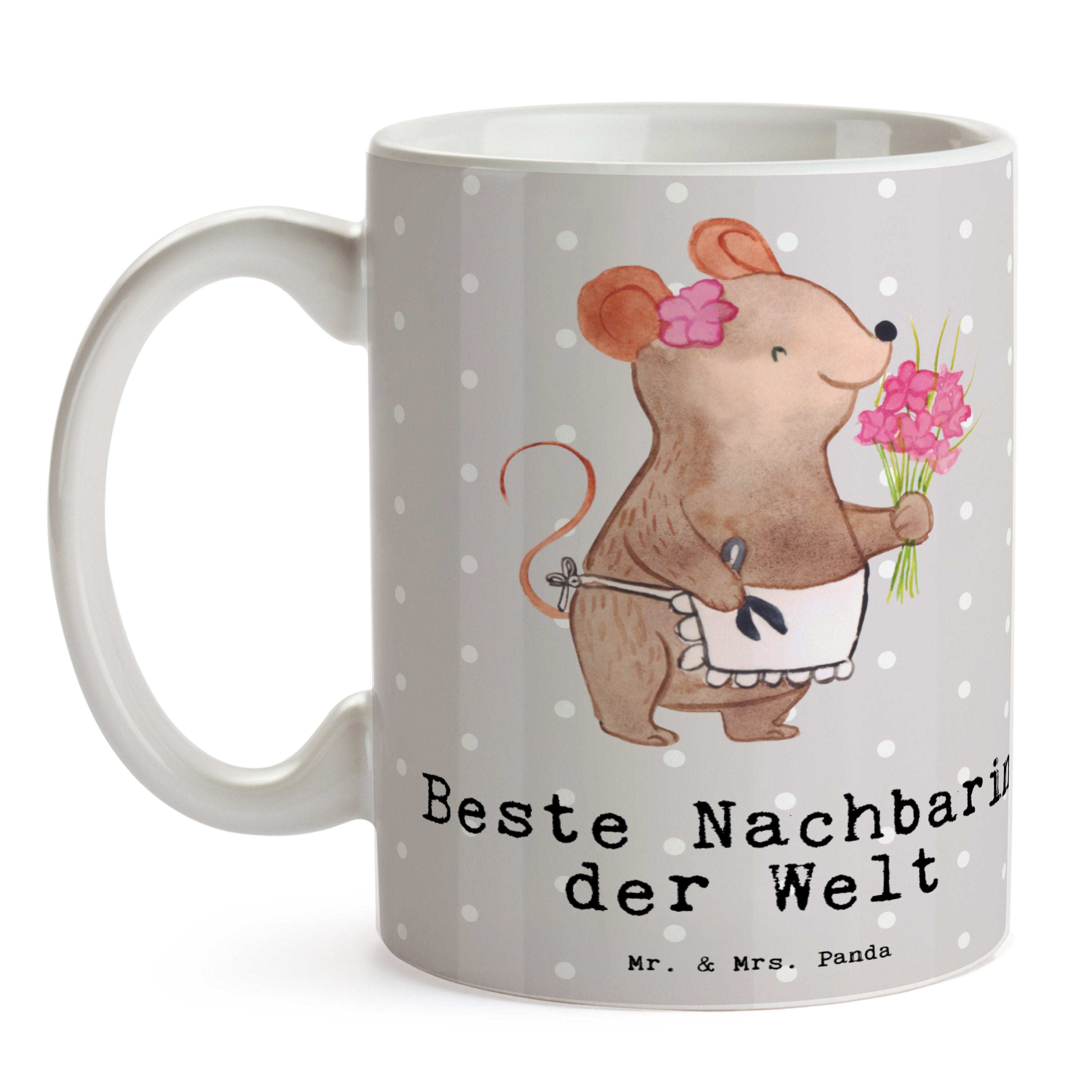 Tasse Maus Beste Nachbarin der Welt - Grau Pastell