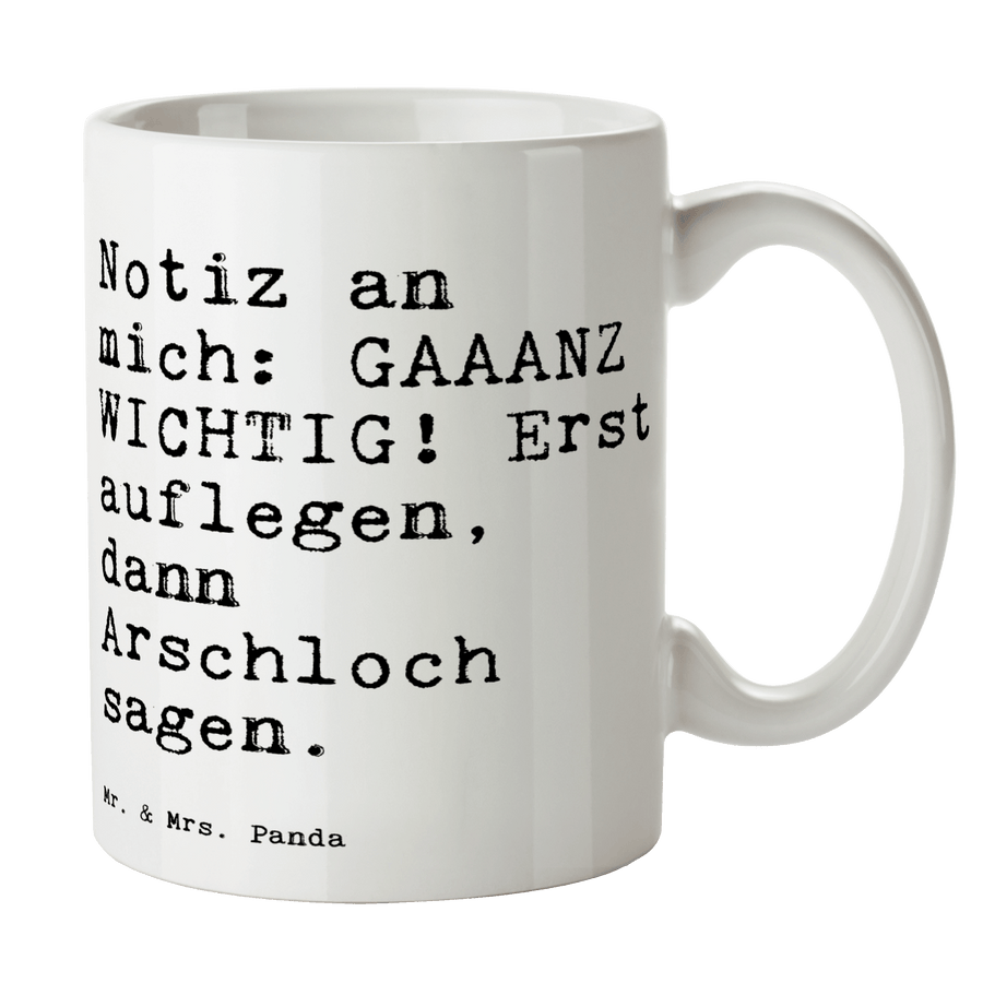 Tasse Sprüche und Zitate Notiz an mich: GAAANZ WICHTIG! Erst auflegen, dann Arschloch sagen.