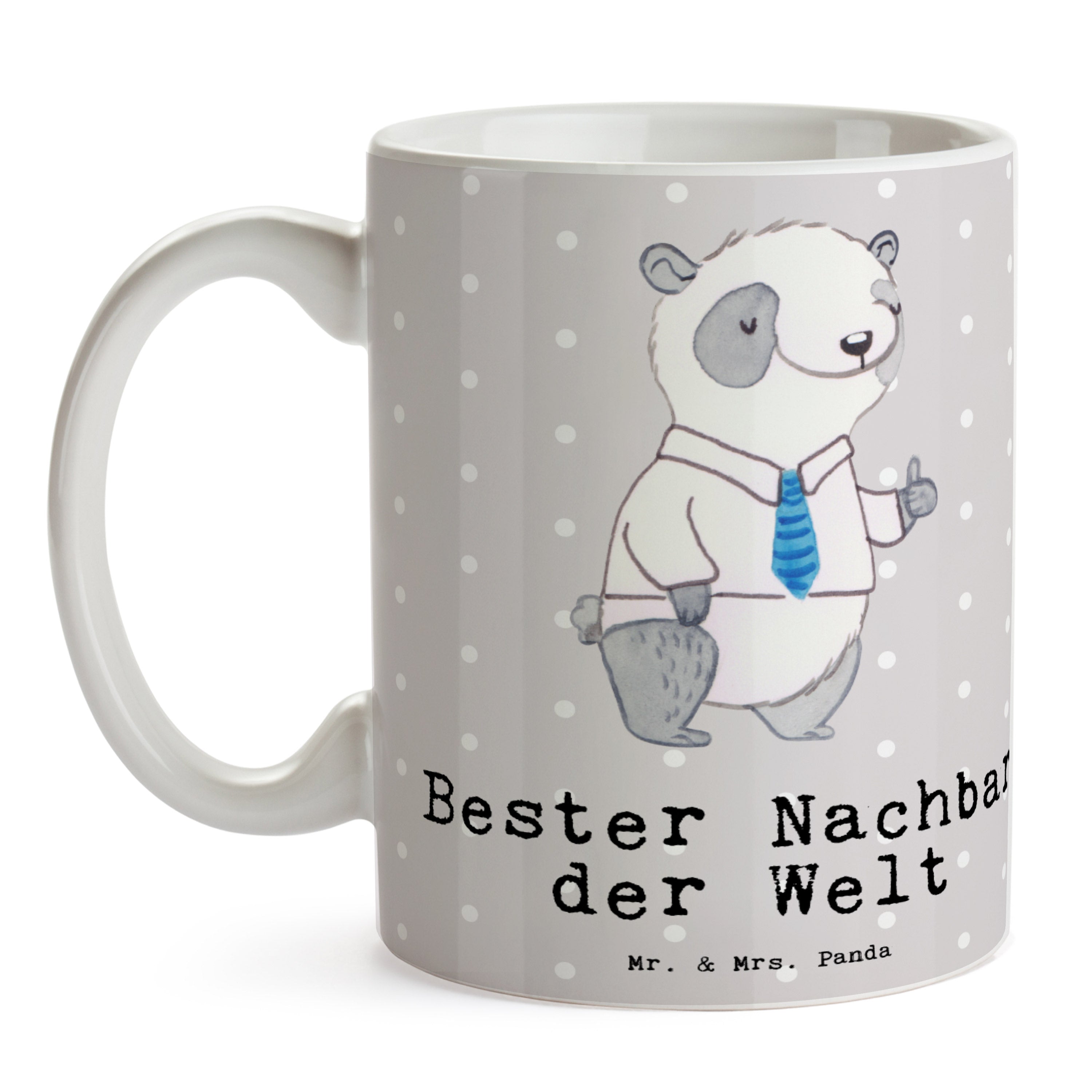 Tasse Panda Bester Nachbar der Welt - Grau Pastell
