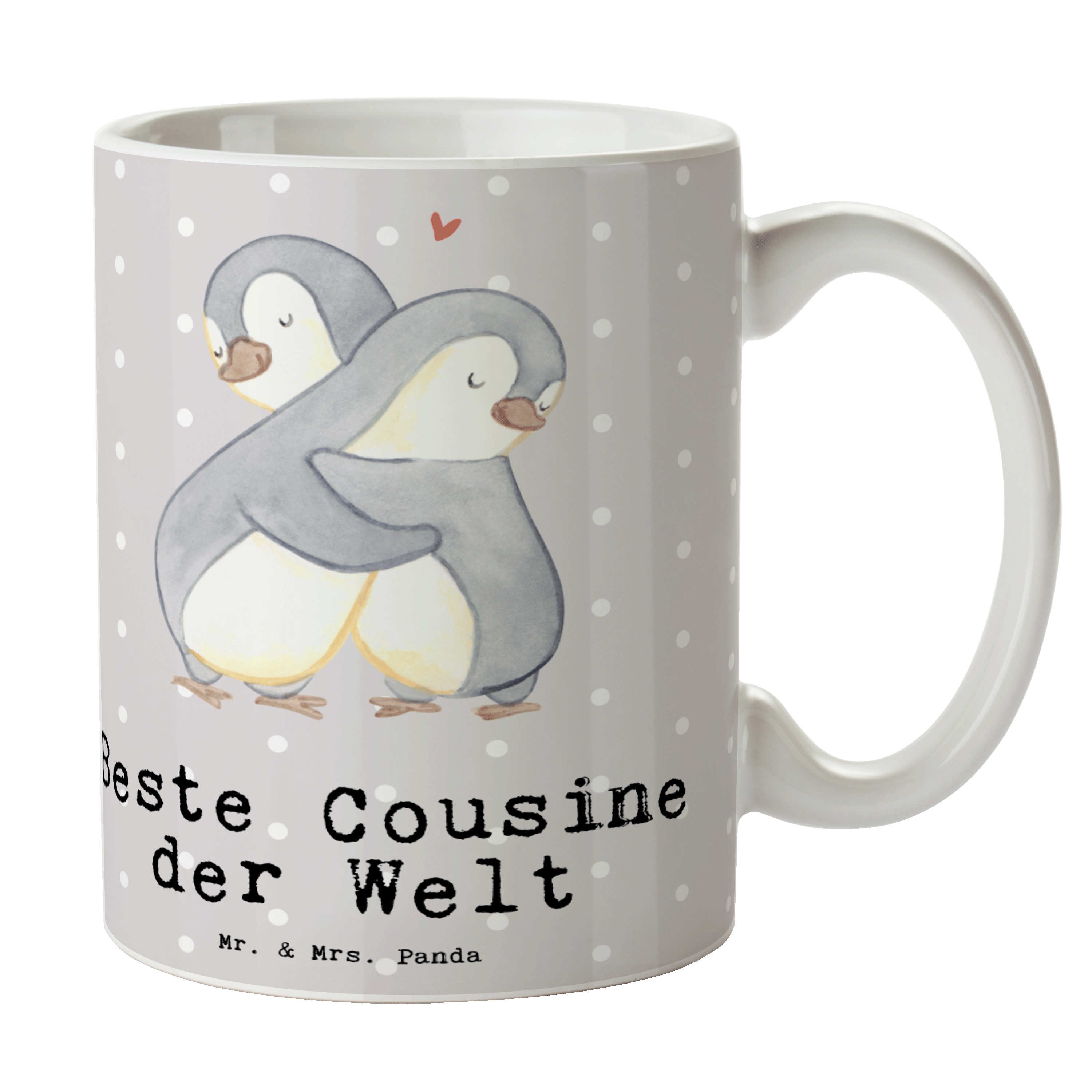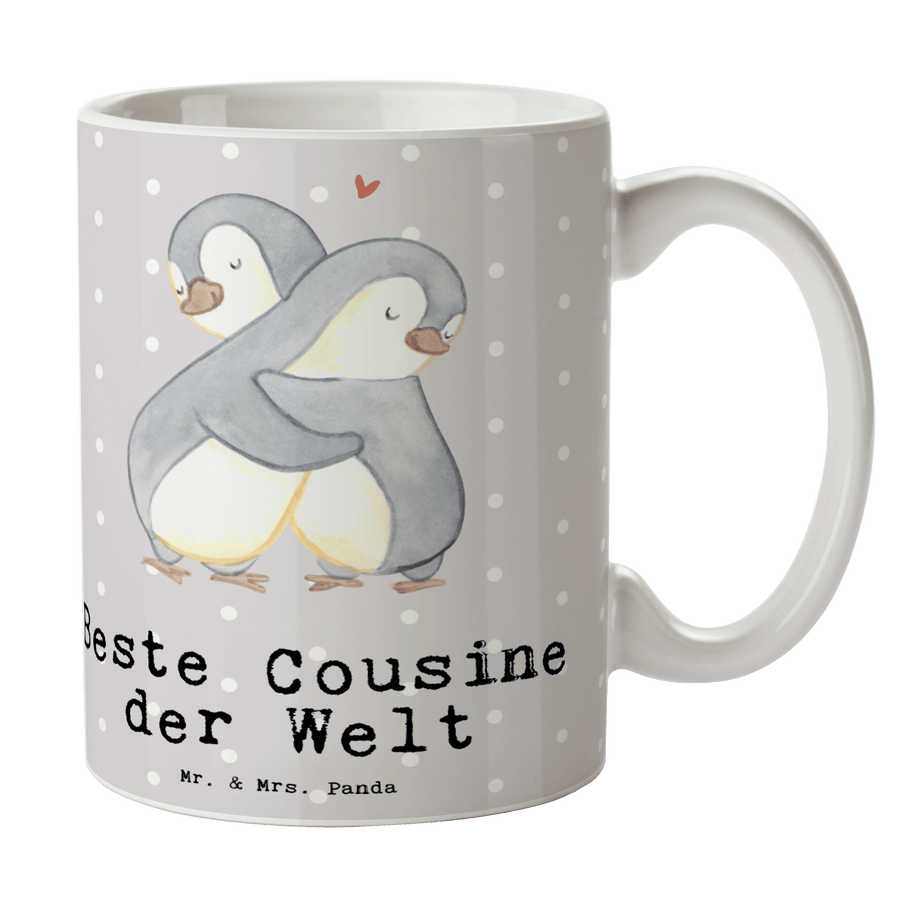 Tasse Pinguin Beste Cousine der Welt - Grau Pastell