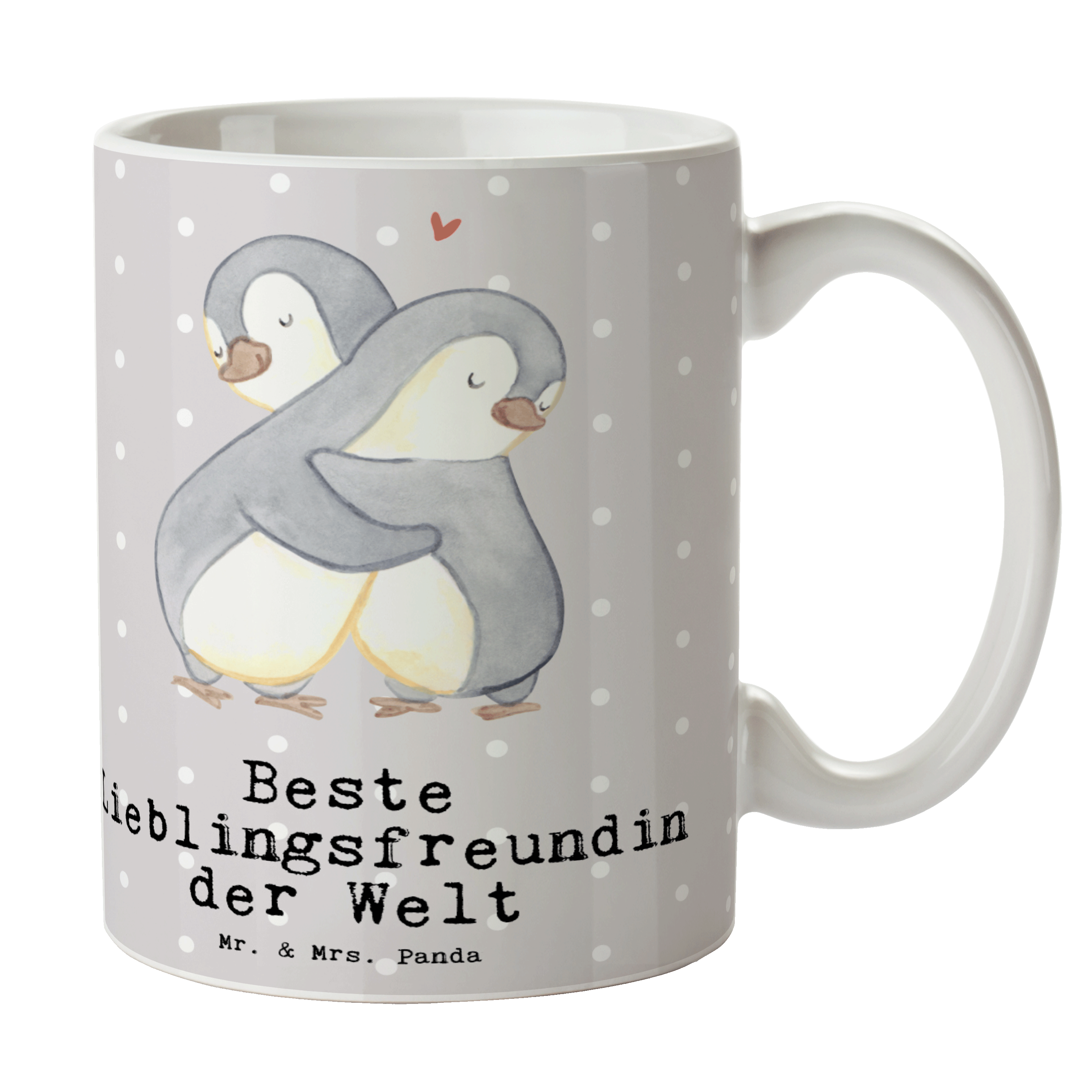 Tasse Pinguin Beste Lieblingsfreundin der Welt - Grau Pastell