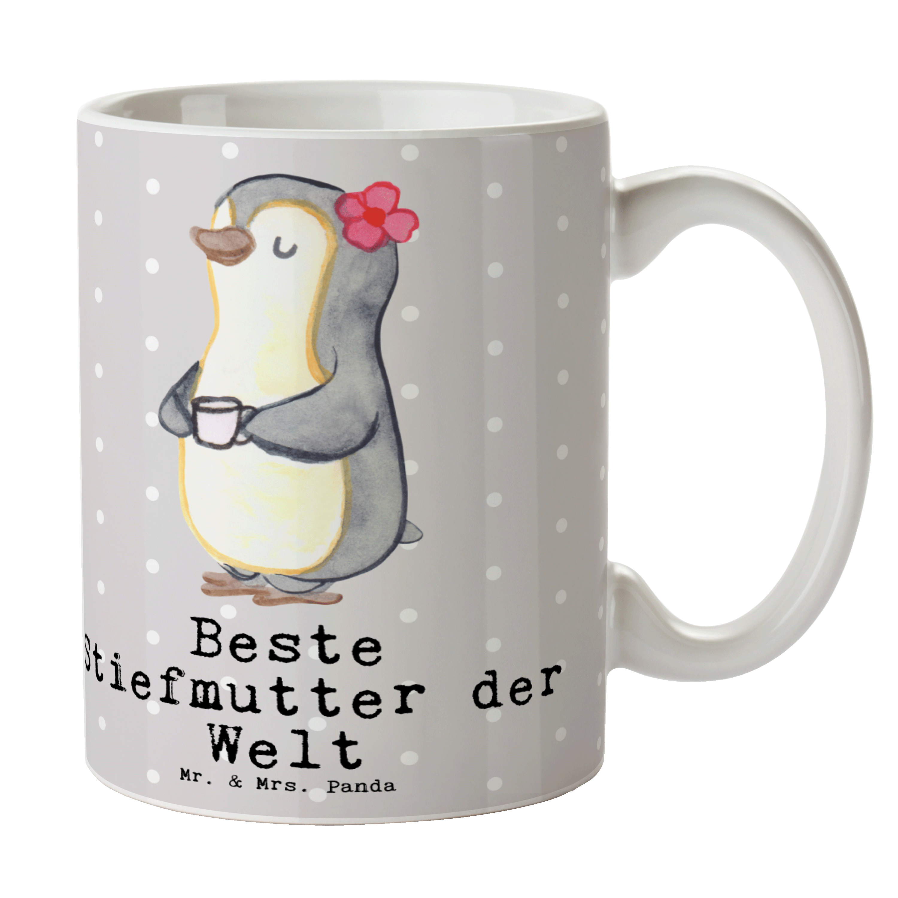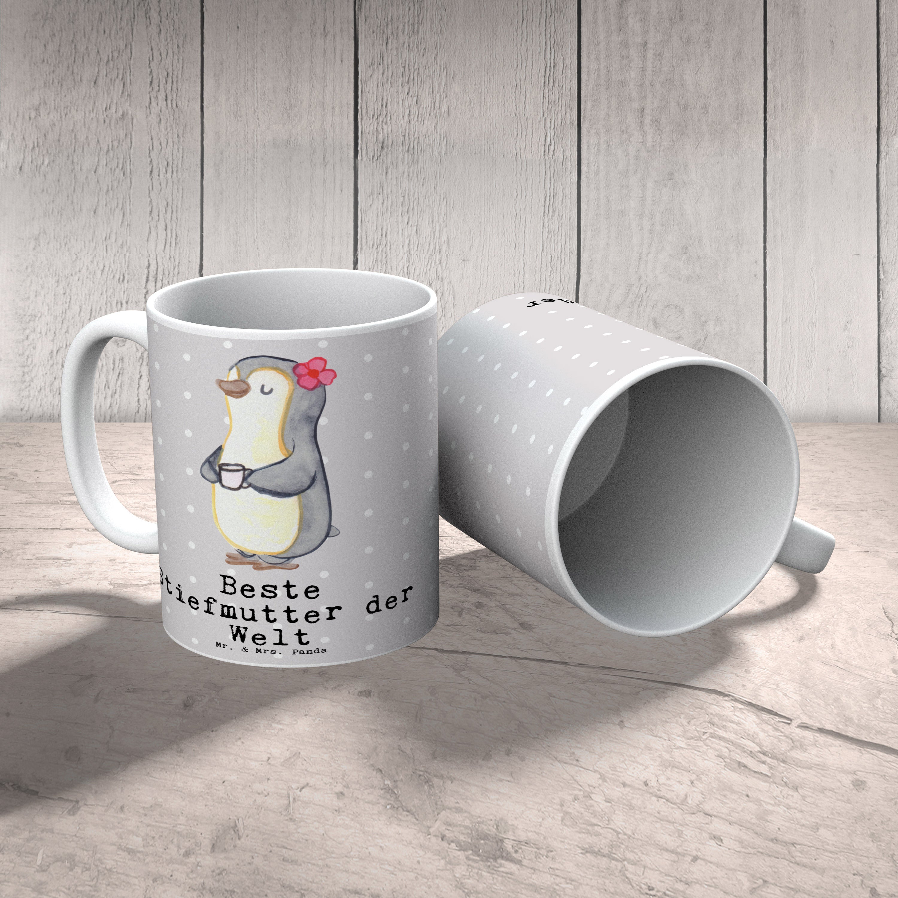 Tasse Pinguin Beste Stiefmutter der Welt - Grau Pastell