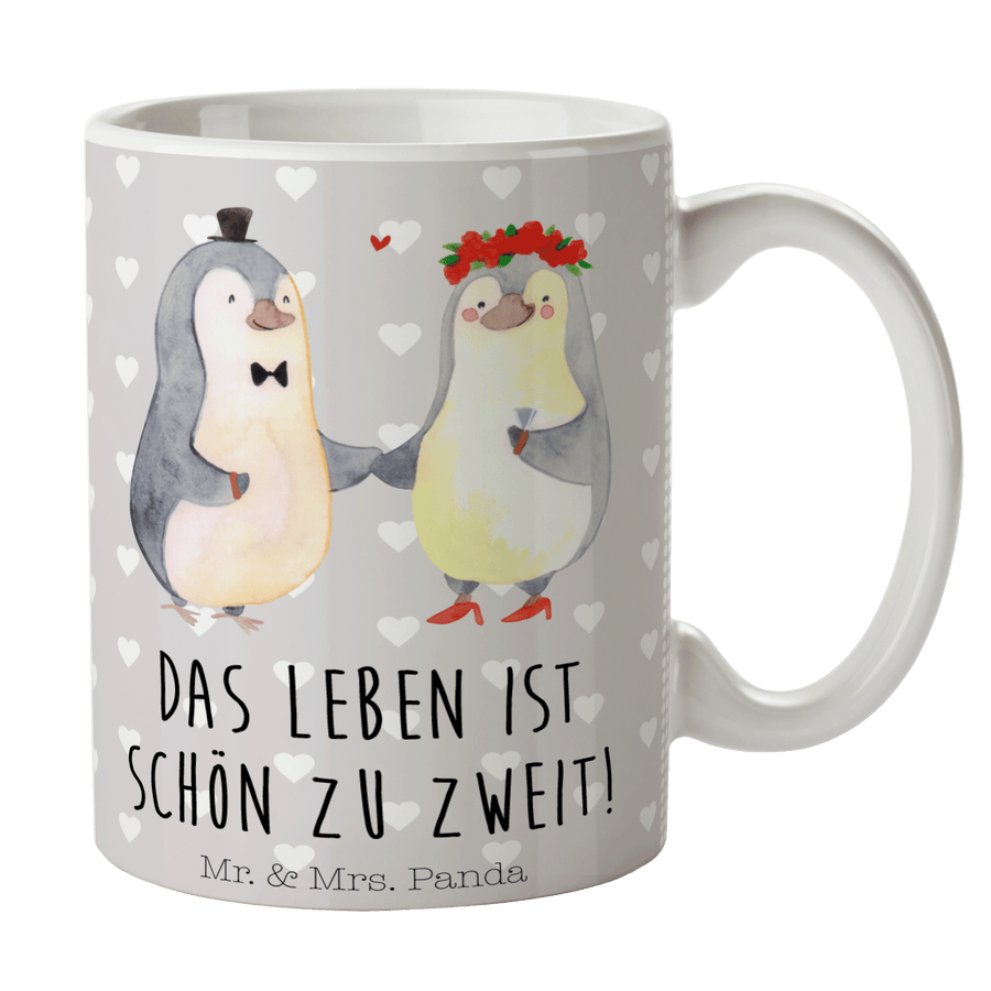 Tasse Pinguin Heirat - mit Spruch - Grau Pastell