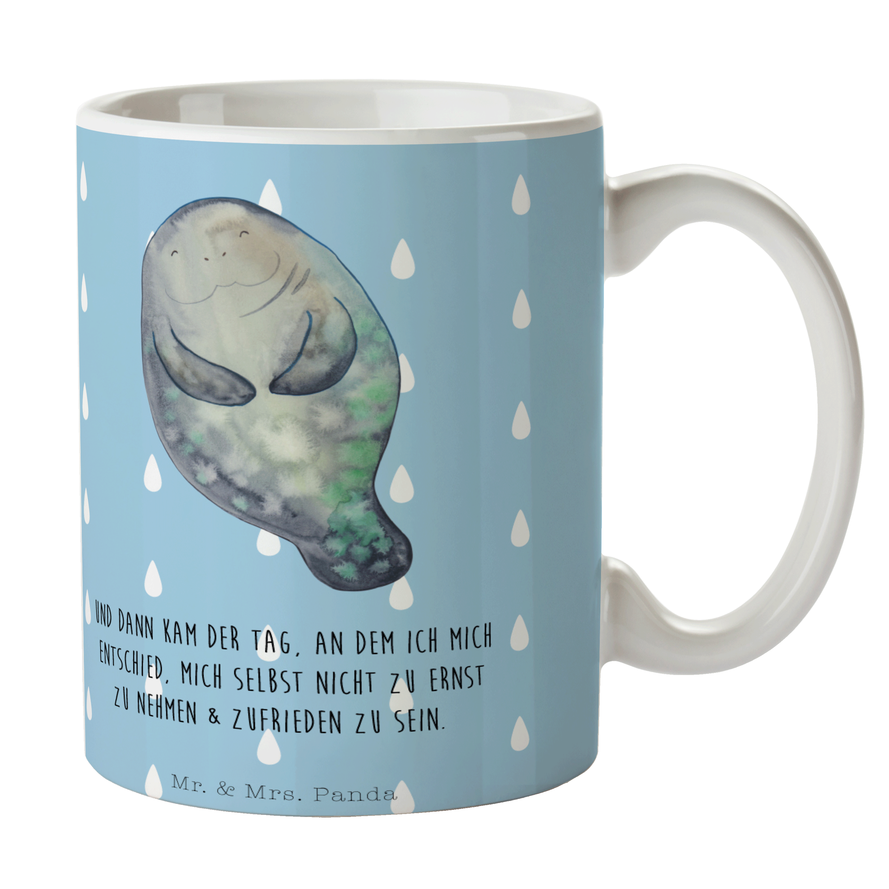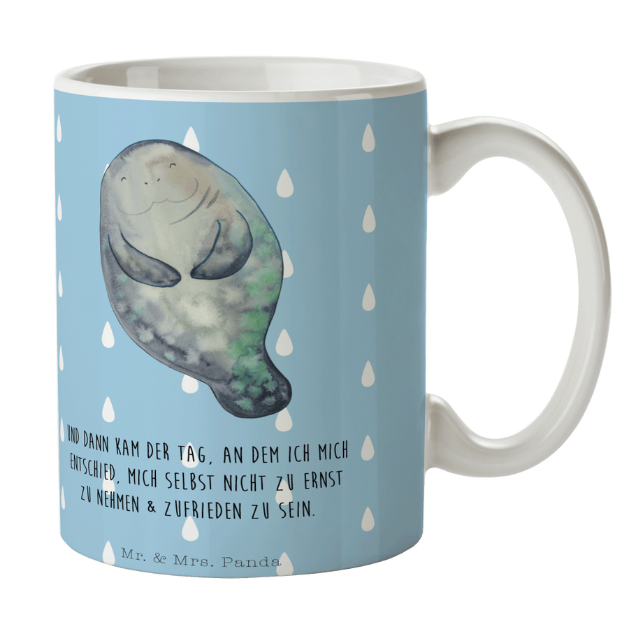 Tasse Seekuh happy - mit Spruch - Blau Pastell