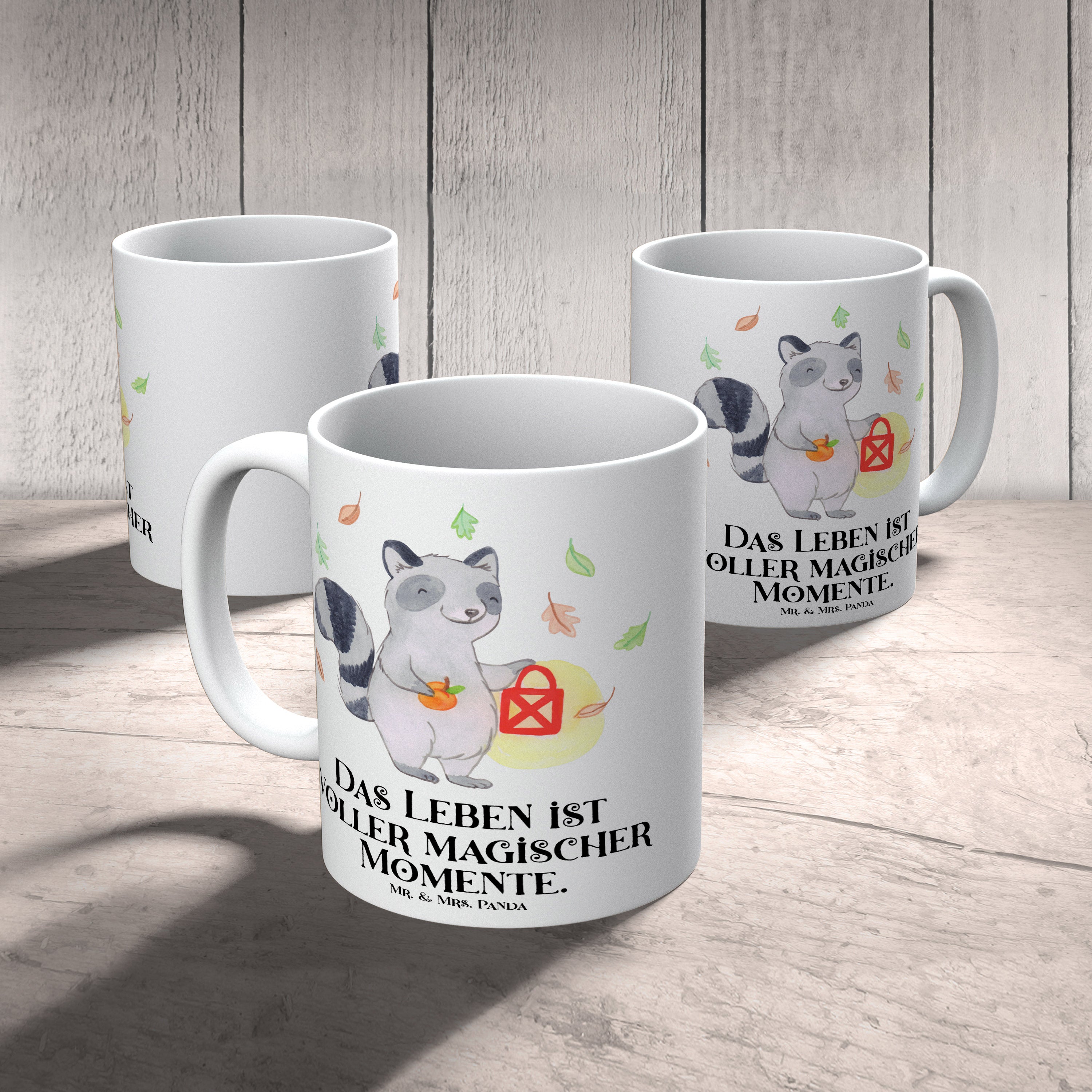 Tasse Waschbär Laterne - mit Spruch - Weiß