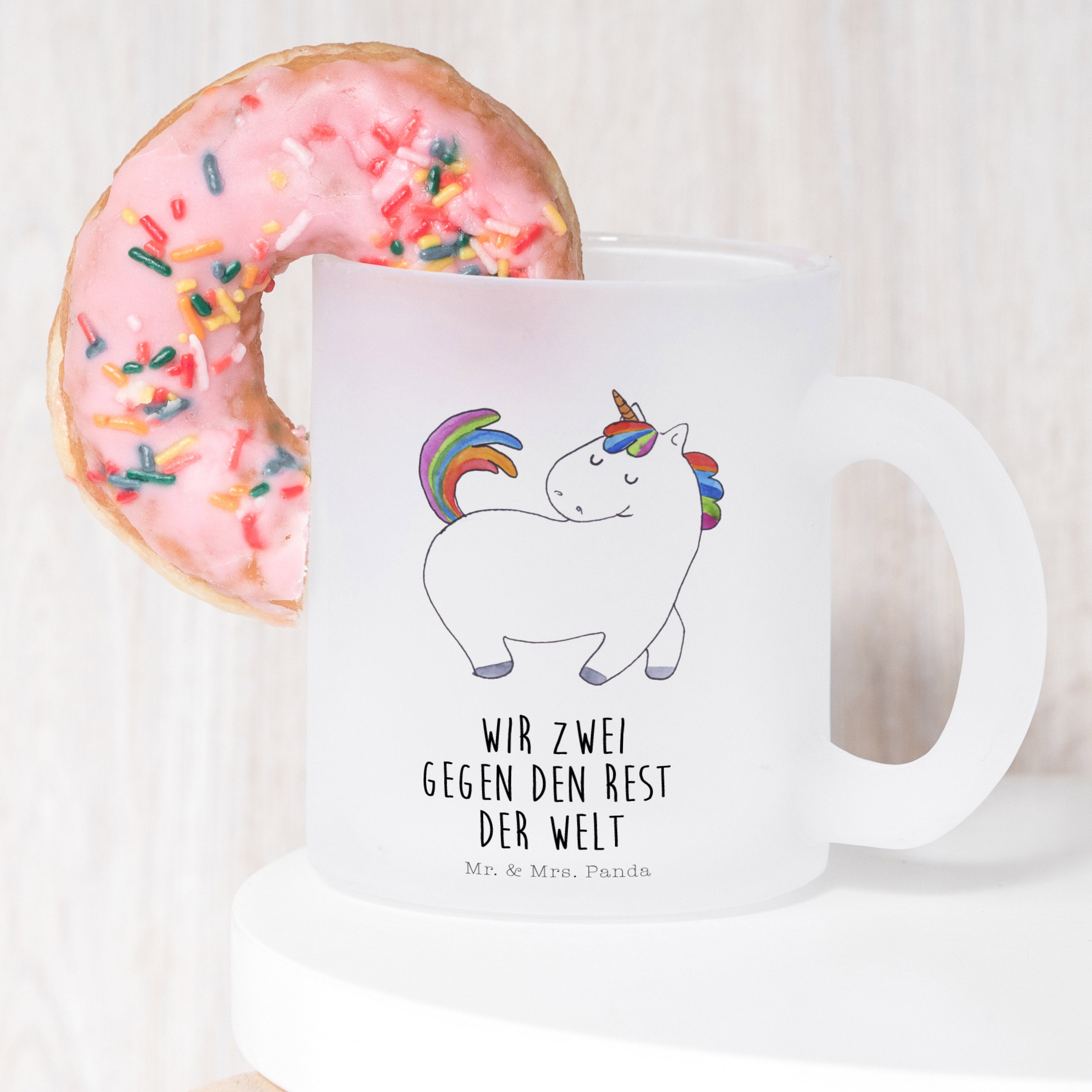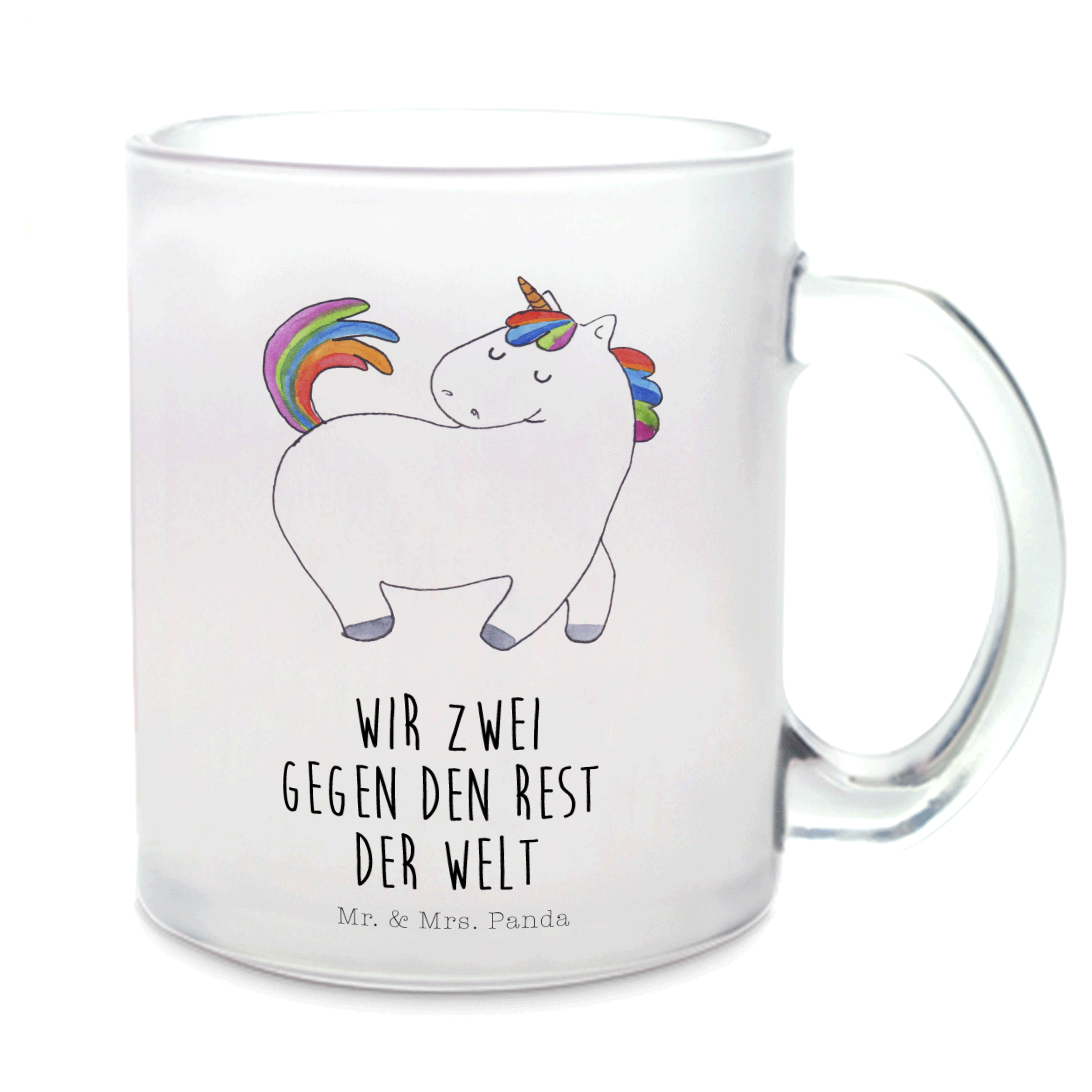 Diese Teetasse aus Glas aus dem Hause Mr. & Mrs. Panda wurde liebevoll von Mrs. Panda entworfen. Jedes Motiv hat sie von Hand gemalt und liebevoll mit einem Spruch versehen. Jedes Teeglas wird liebevoll in unserer Manufaktur in Norddeutschland gefertigt. Die Teetasse wird aus Premium Glas gefertigt und ist spülmaschinenfest. Das Premium Glas sorgt dafür, dass dein Heißgetränk lange warm bleibt und die Tasse mit Henkel macht die Handhabung sehr einfach und schützt vor der Hitze. Diese Tasse sorgt definitiv jeden Morgen für ein Schmunzeln am Frühstückstisch.