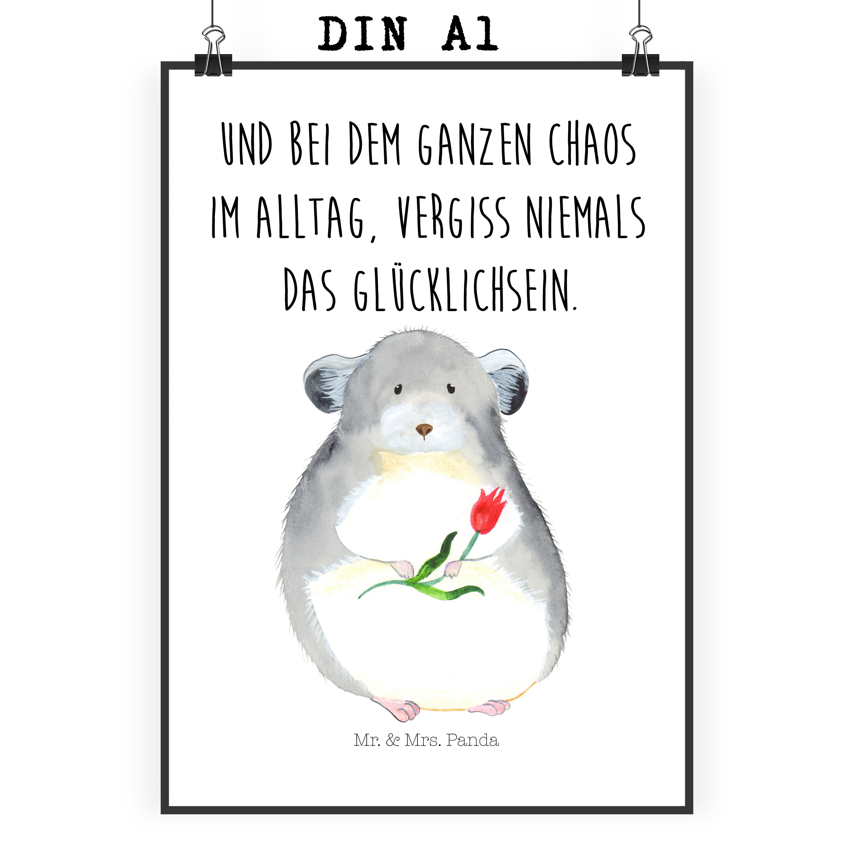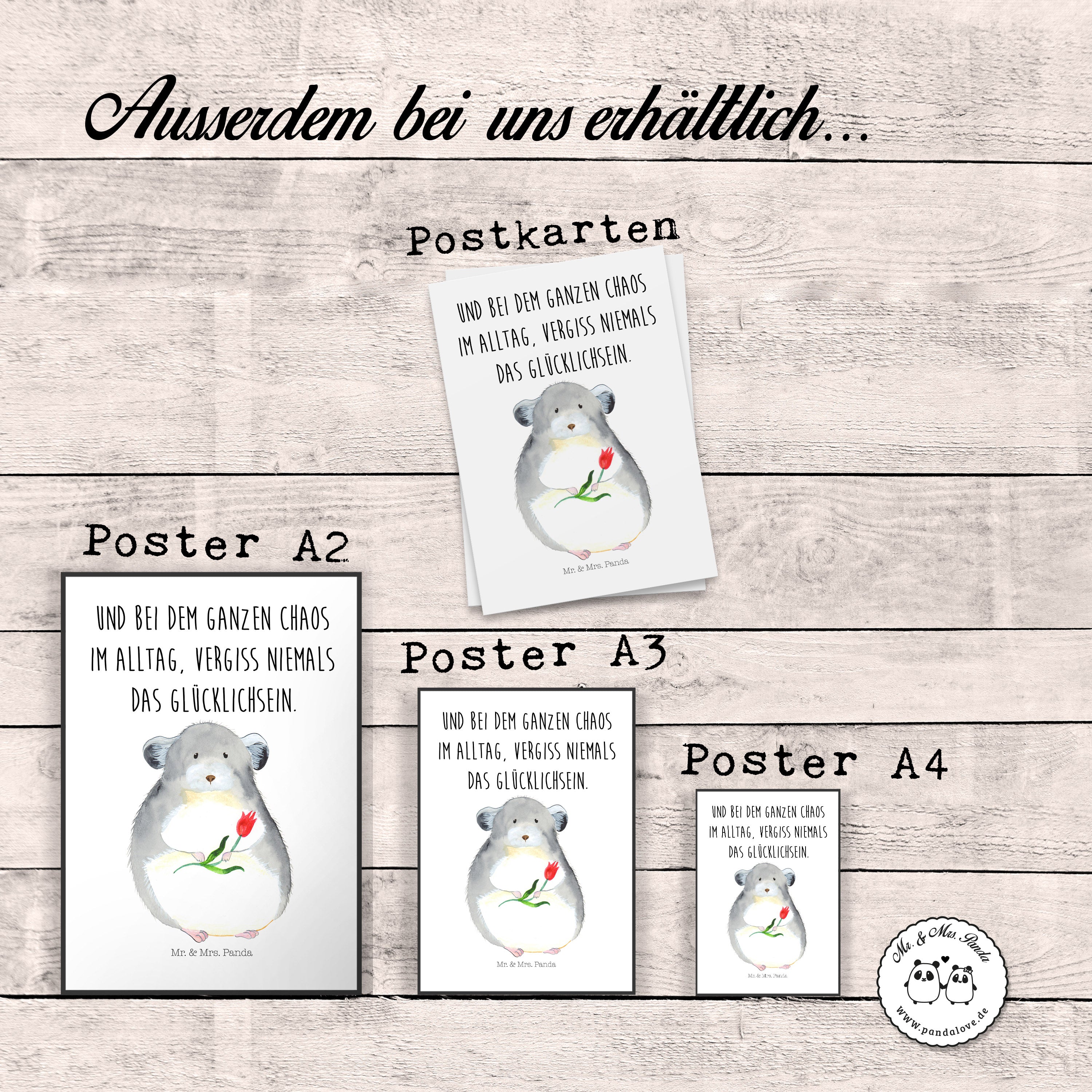 Du kannst dich dem niedlichen Chinchilla nicht entziehen, der dich mit großen Augen und einem Blumenstrauß in der Hand anschaut. Schon allein sein flauschiges Fell und seine niedliche Nase strahlen pure Herzenswärme aus. Das Design "Chinchilla mit Blume" von Mr. & Mrs. Panda ist das perfekte Accessoire für alle Tierfreunde.