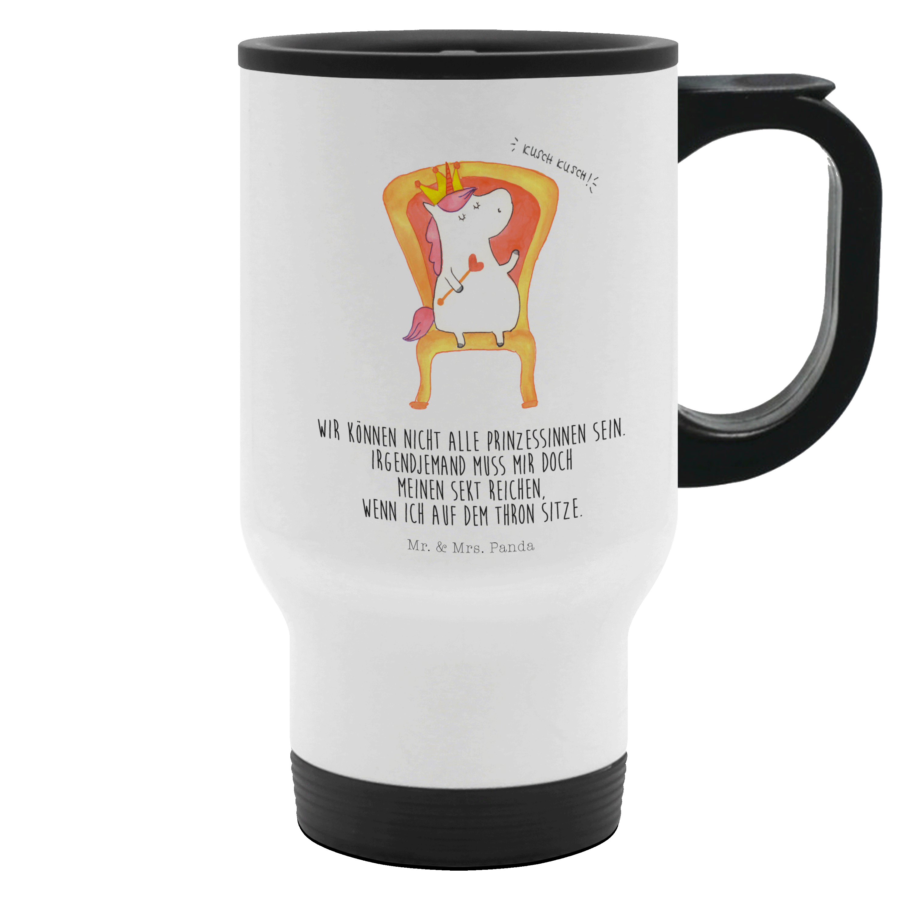 Das süße Einhorn auf dem Thron ist genau das richtige Geschenk für die beste Freundin. Denn manchmal würden wir doch alle gerne mit einer Krone auf einem Thron sitzen und Leuten, die uns nerven, ein kurzes "kusch, kusch" zurufen. Hauptsache sie lassen den Sekt da. Tipp von Mr. & Mrs. Panda: das perfekte Motiv für die Zimmertür.