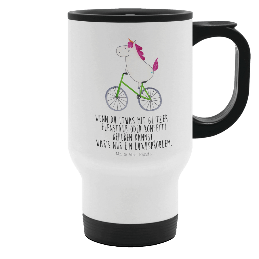 Thermobecher Einhorn Radfahrer - mit Spruch