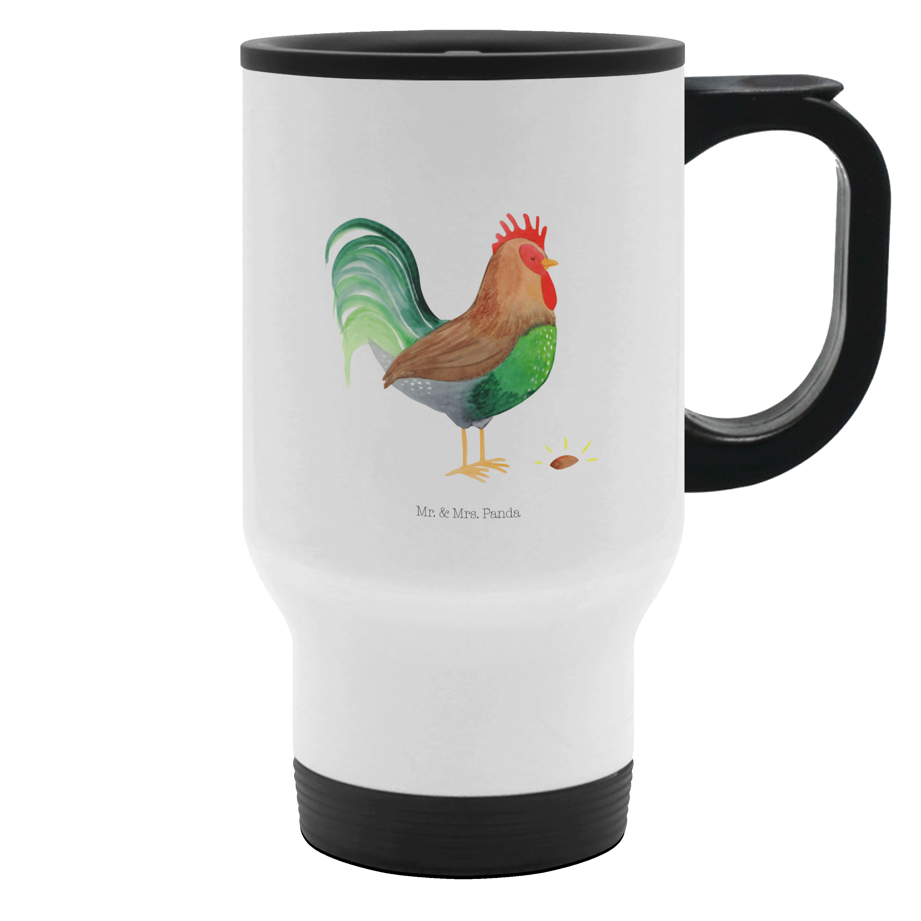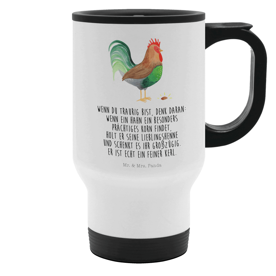 Thermobecher Hahn mit Korn Thermobecher, To Go Becher, Thermotasse, Kaffeebecher, Isolierbecher, Thermobecher To Go, Warmhaltetasse, Edelstahlbecher, Reisebecher, Tasse mit Deckel, Thermobecher für 400 ml, Kaffeetasse zum Mitnehmen, Tasse zum Mitnehmen, Spülmaschinenfest, Bauernhof, Hoftiere, Landwirt, Landwirtin, Hahn, Korn, Henne, Eier, Natur