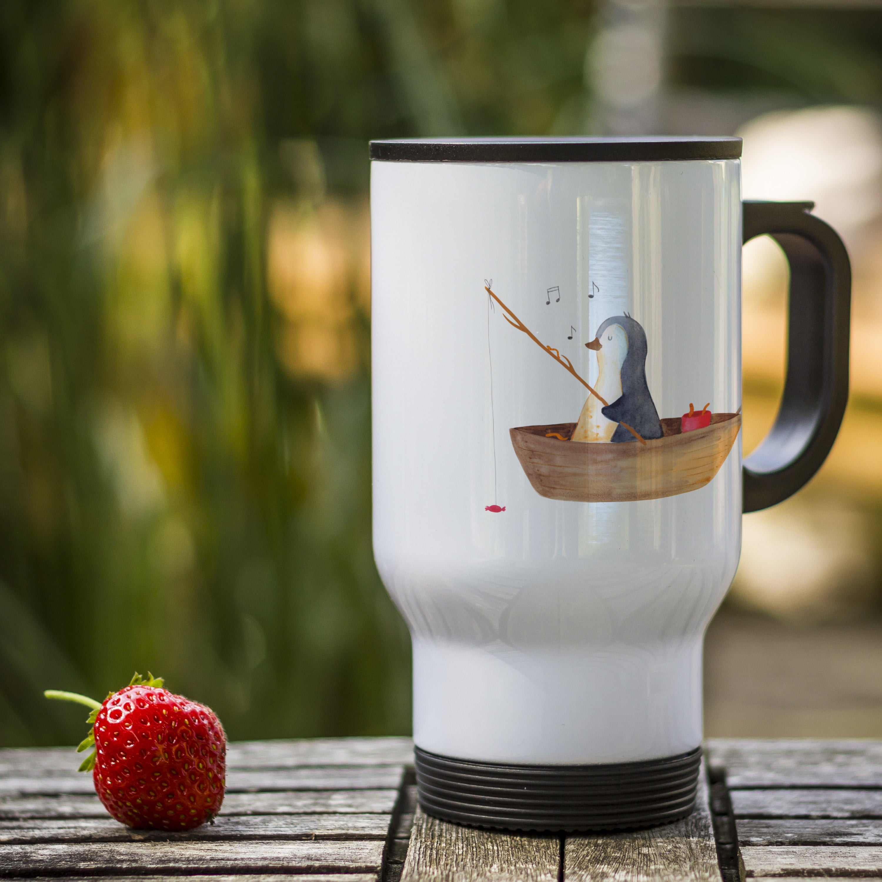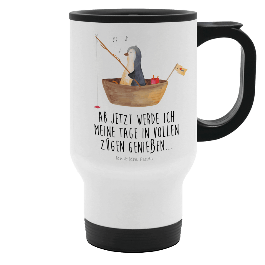 Thermobecher Pinguin Angelboot Thermobecher, To Go Becher, Thermotasse, Kaffeebecher, Isolierbecher, Thermobecher To Go, Warmhaltetasse, Edelstahlbecher, Reisebecher, Tasse mit Deckel, Thermobecher für 400 ml, Kaffeetasse zum Mitnehmen, Tasse zum Mitnehmen, Spülmaschinenfest, Pinguin, Pinguine, Angeln, Boot, Angelboot, Lebenslust, Leben, genießen, Motivation, Neustart, Neuanfang, Trennung, Scheidung, Geschenkidee Liebeskummer