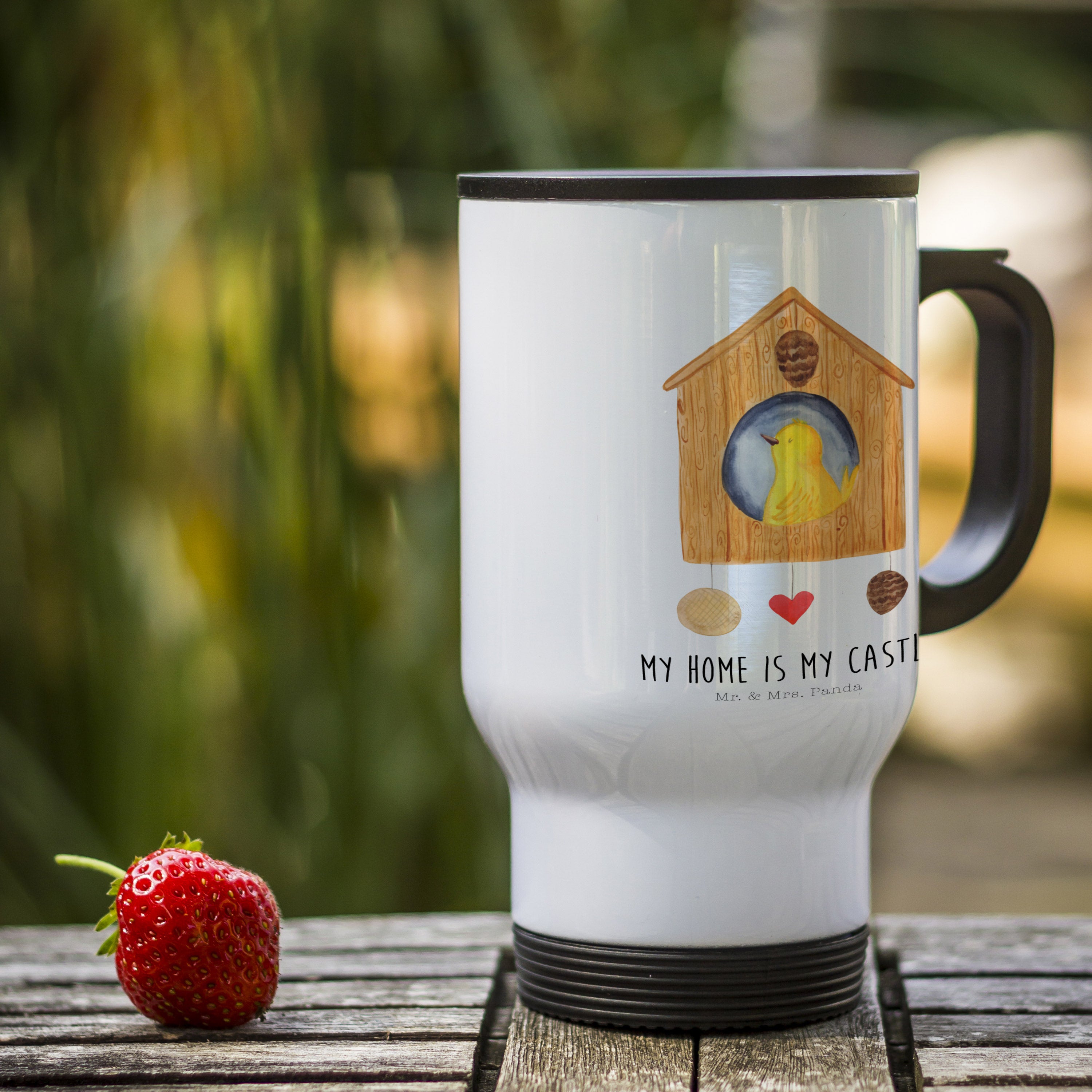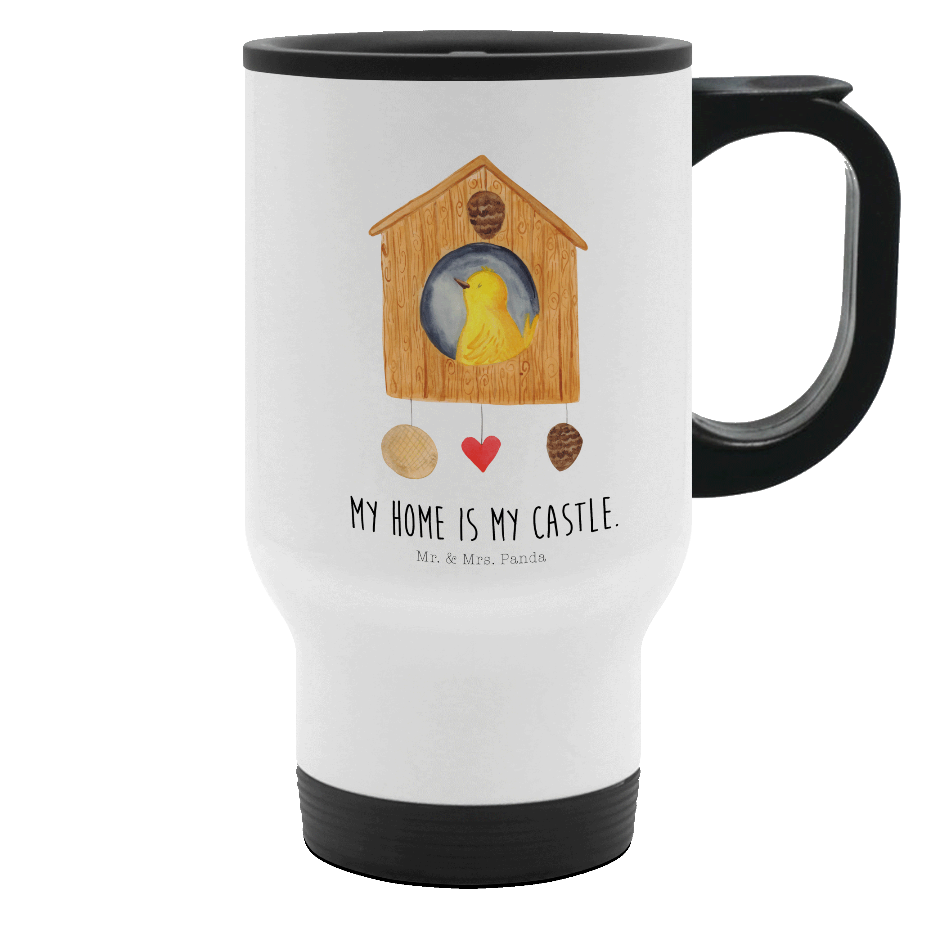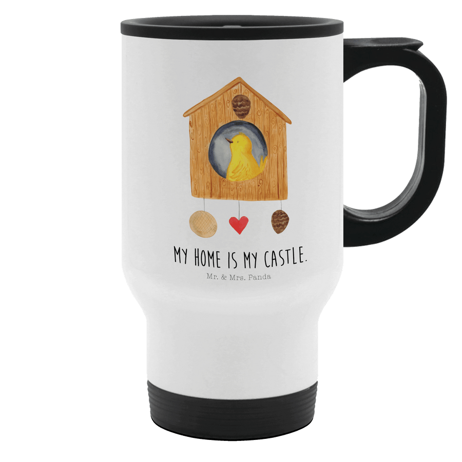 Thermobecher Vogelhaus Thermobecher, To Go Becher, Thermotasse, Kaffeebecher, Isolierbecher, Thermobecher To Go, Warmhaltetasse, Edelstahlbecher, Reisebecher, Tasse mit Deckel, Thermobecher für 400 ml, Kaffeetasse zum Mitnehmen, Tasse zum Mitnehmen, Spülmaschinenfest, Tiermotive, Gute Laune, lustige Sprüche, Tiere, Vogel, Vögel, Vogelhaus, Vogelhäuschen, Home sweet home, Zuhause, Nest, Eigenheim, Familie, Wohnung, Haus, unser Haus, Lieblingsort, Castle