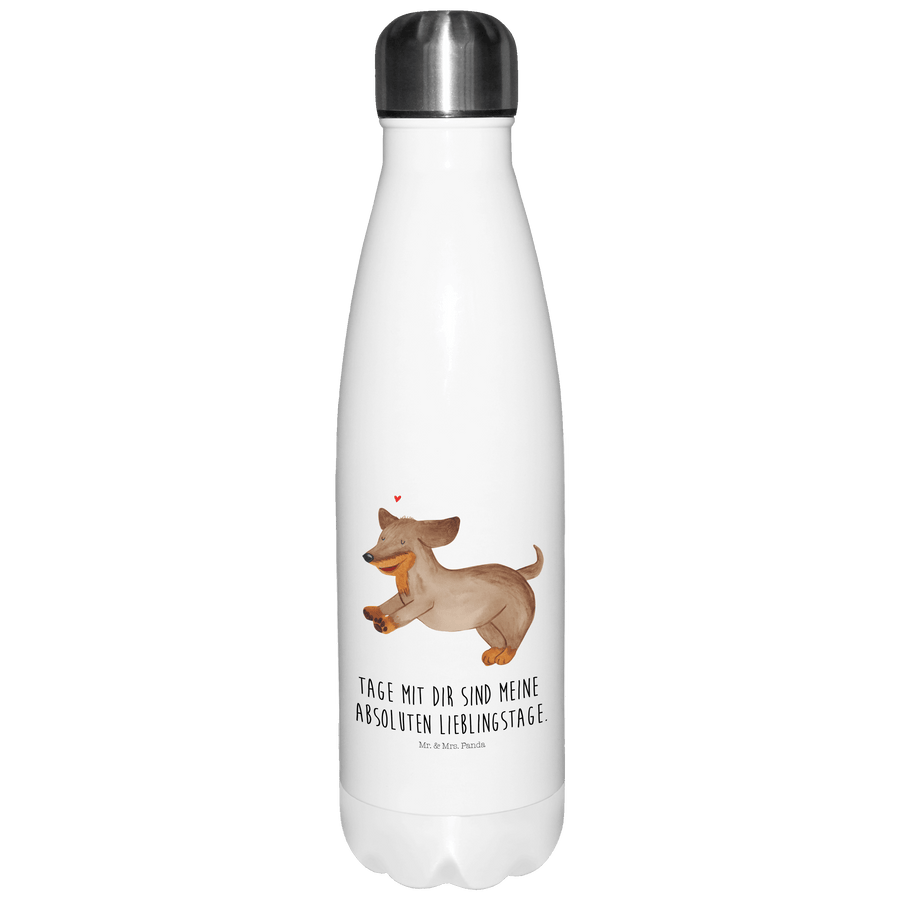 Thermosflasche Hund Dackel fröhlich - mit Spruch