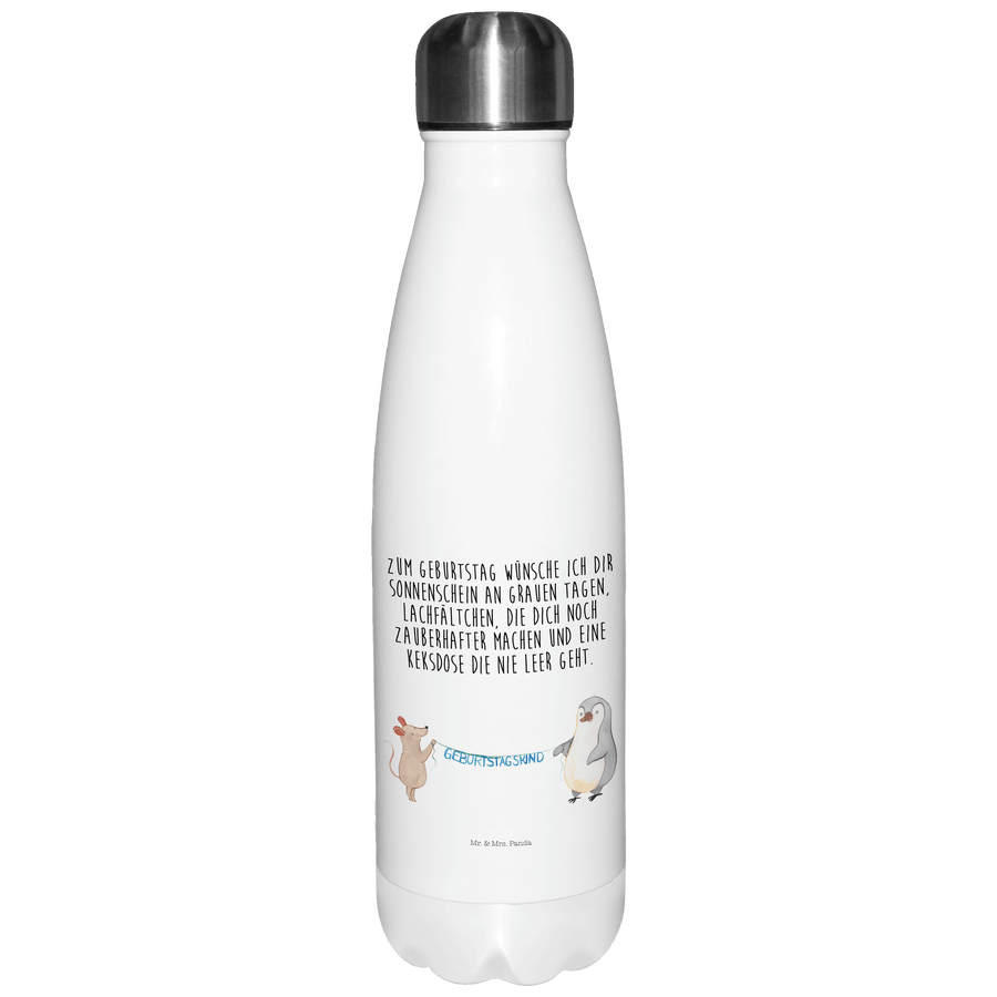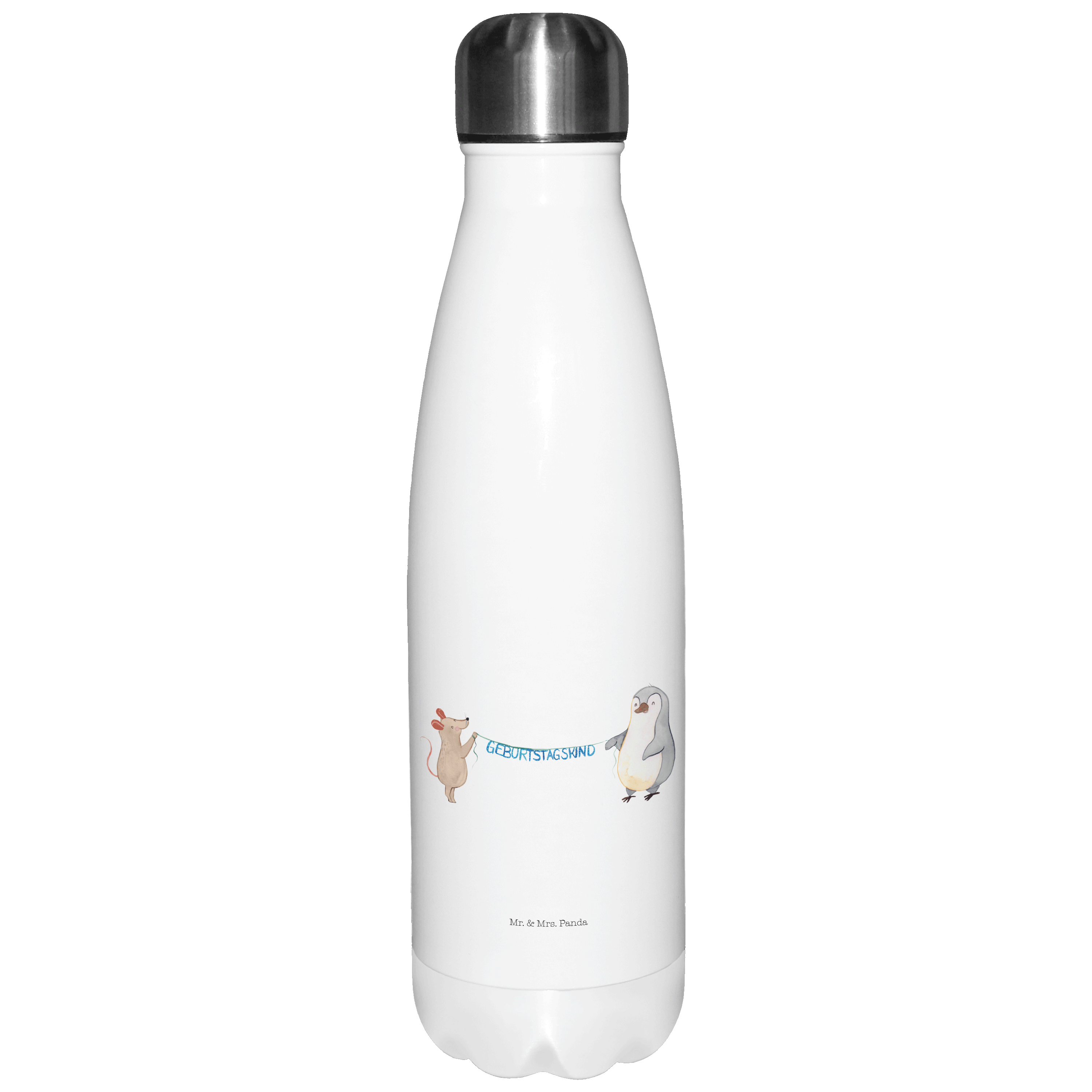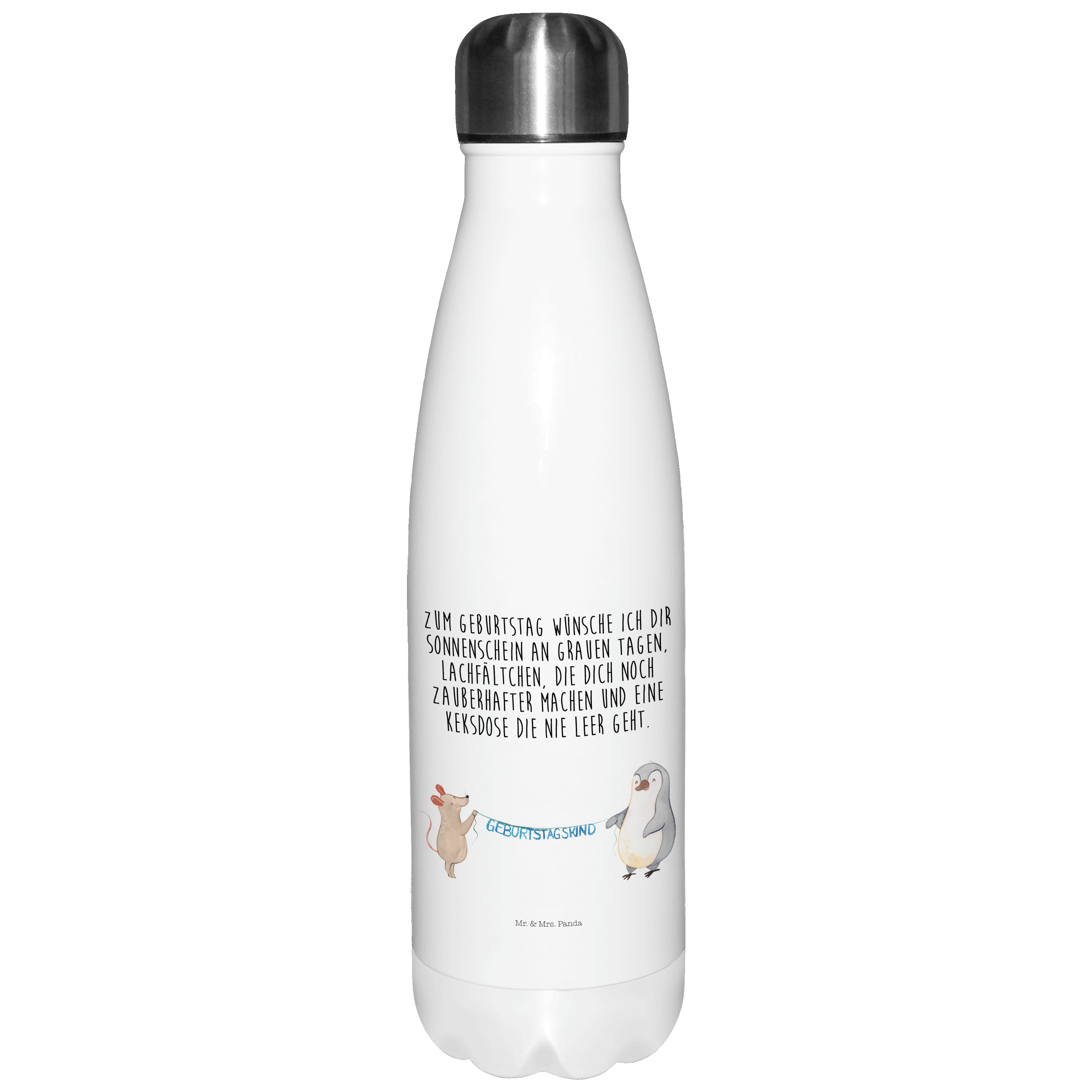 Thermosflasche Maus Pinguin Geburtstag Isolierflasche, Thermoflasche, Trinkflasche, Thermos, Edelstahl, Geburtstag, Geburtstagsgeschenk, Geschenk, Maus, Pinguin, Geburtstage, Happy Birthday, Geburtstagsfeier