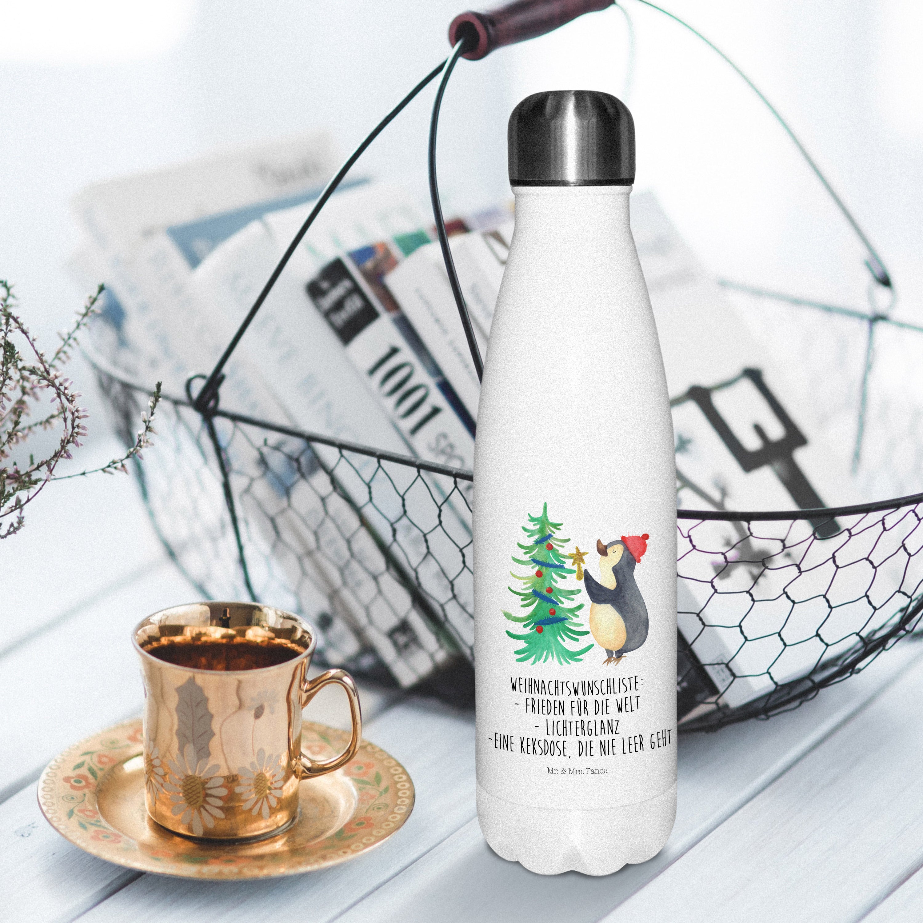Thermosflasche Pinguin Weihnachtsbaum - mit Spruch