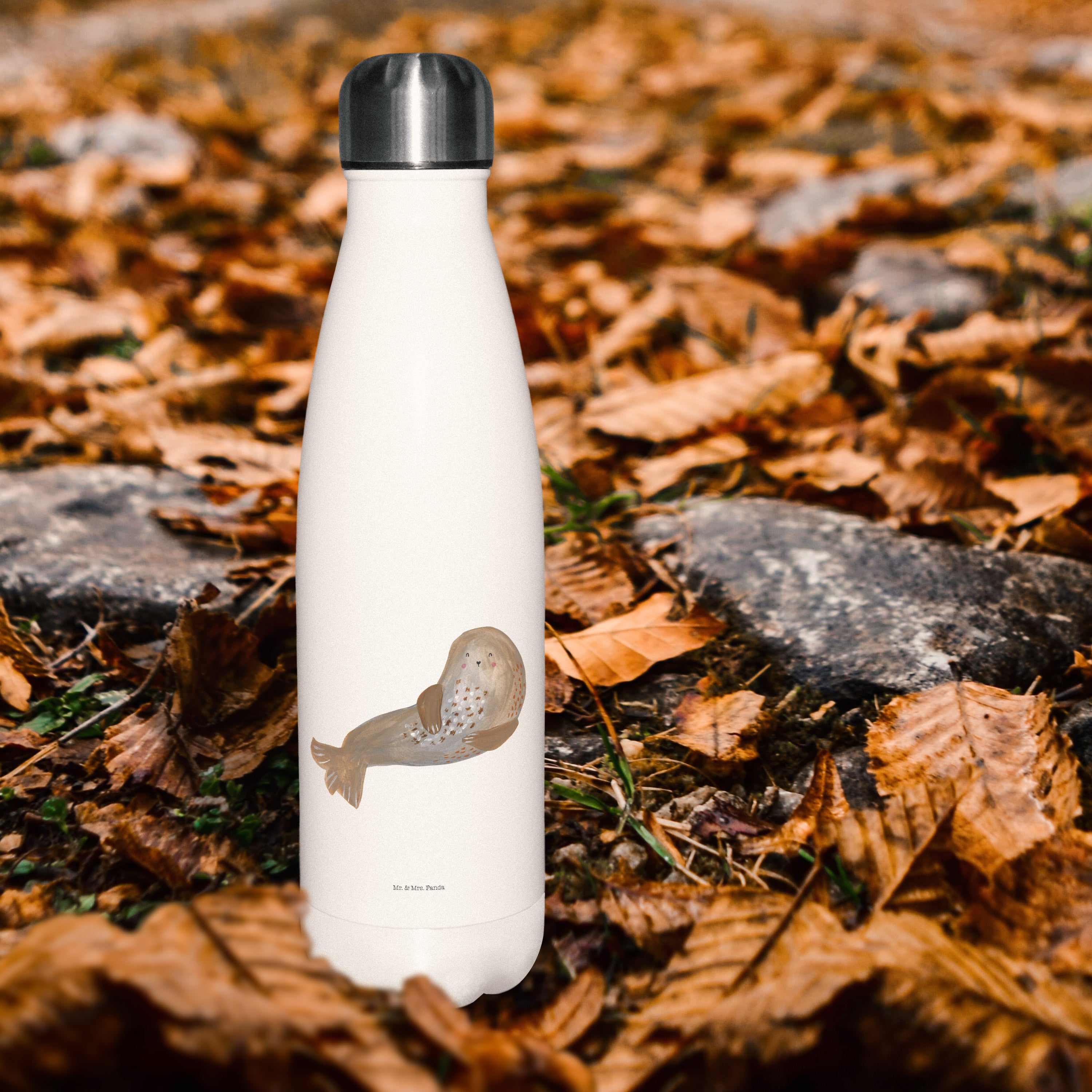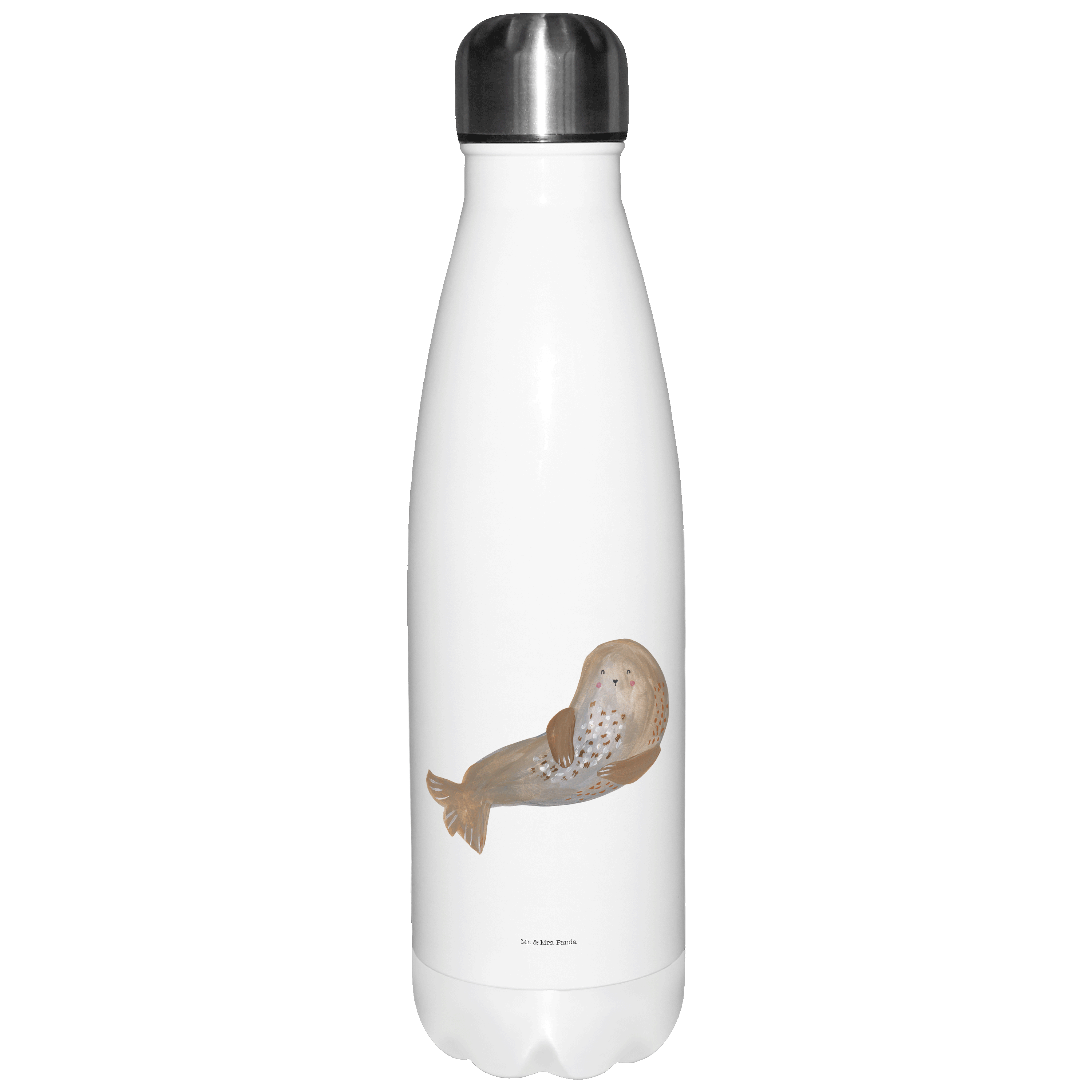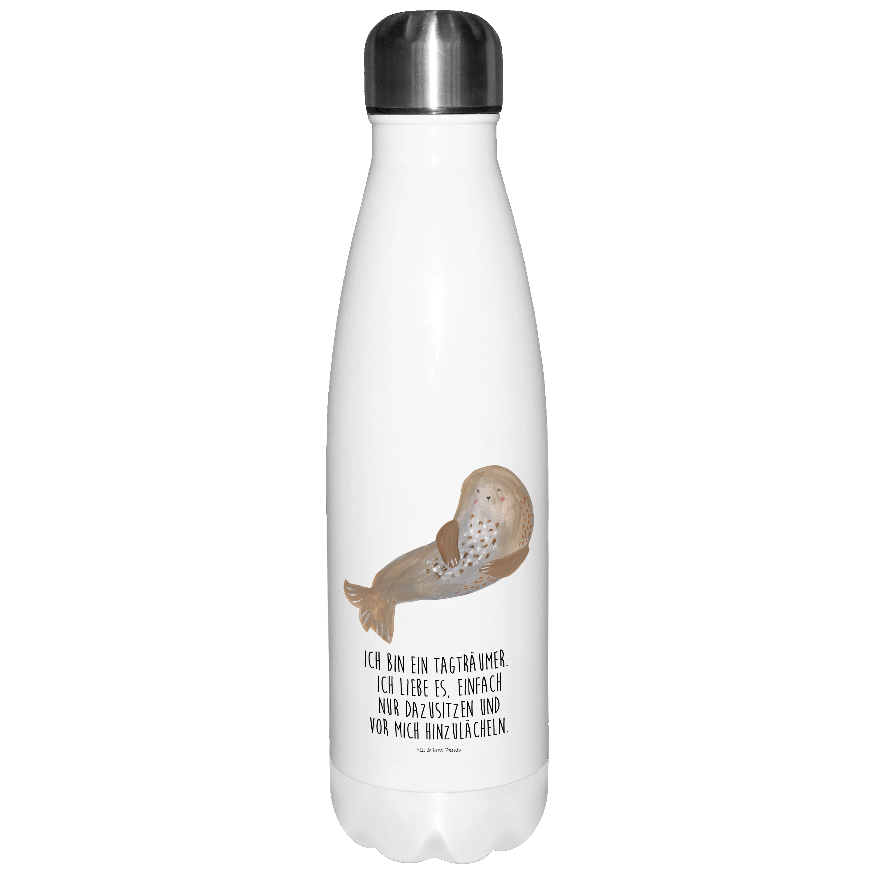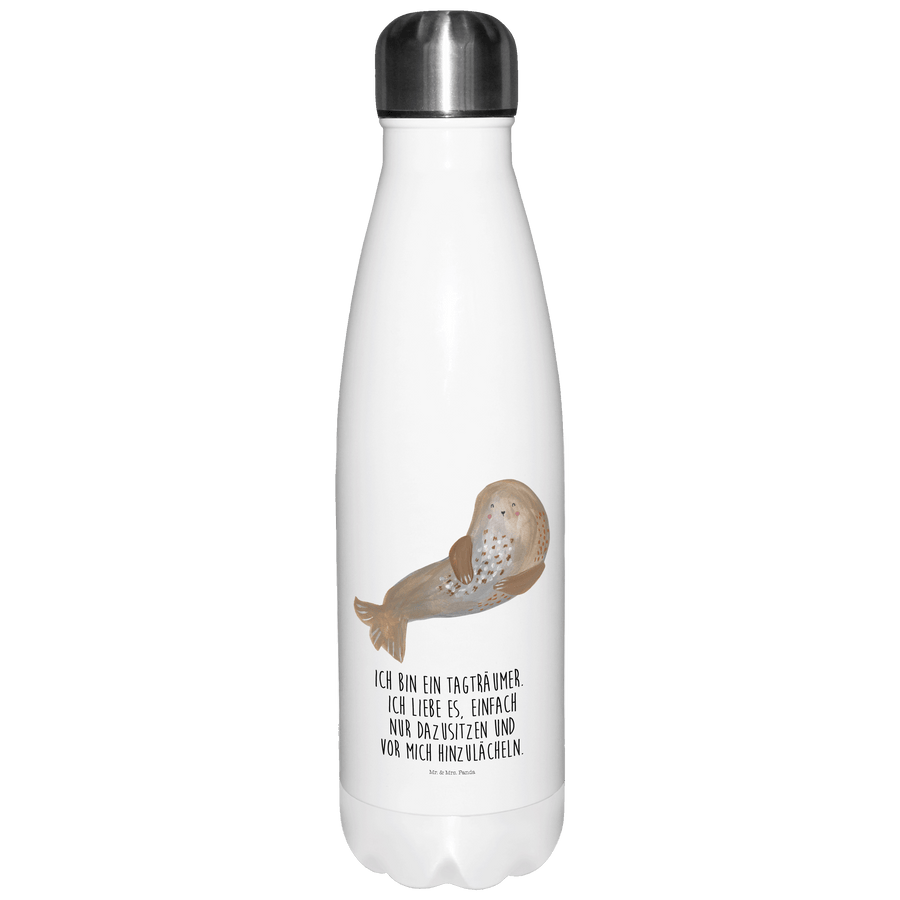 Thermosflasche Robbe lachend Isolierflasche, Thermoflasche, Trinkflasche, Thermos, Edelstahl, Tiermotive, Gute Laune, lustige Sprüche, Tiere, Robbe, Robben, Seehund, Strand, Meerestier, Ostsee, Nordsee