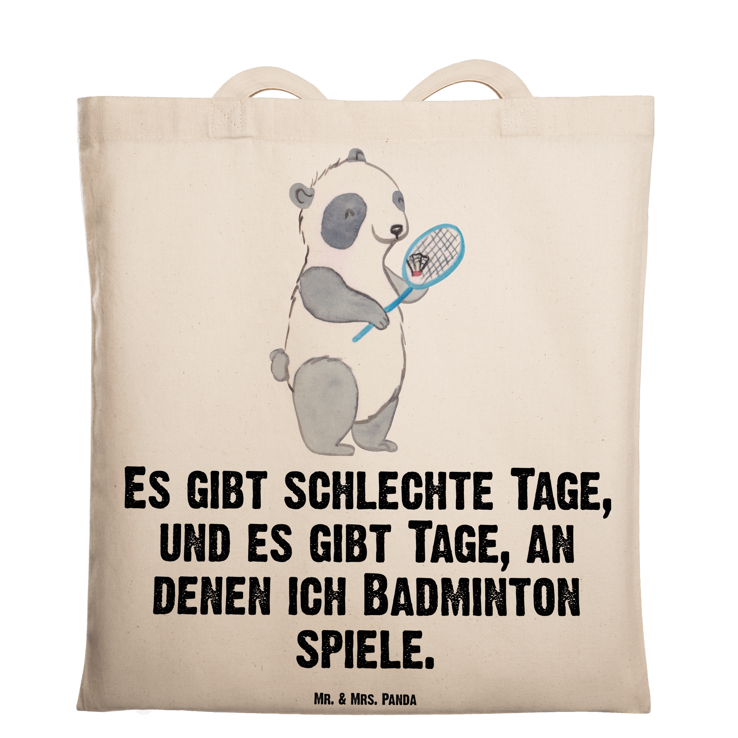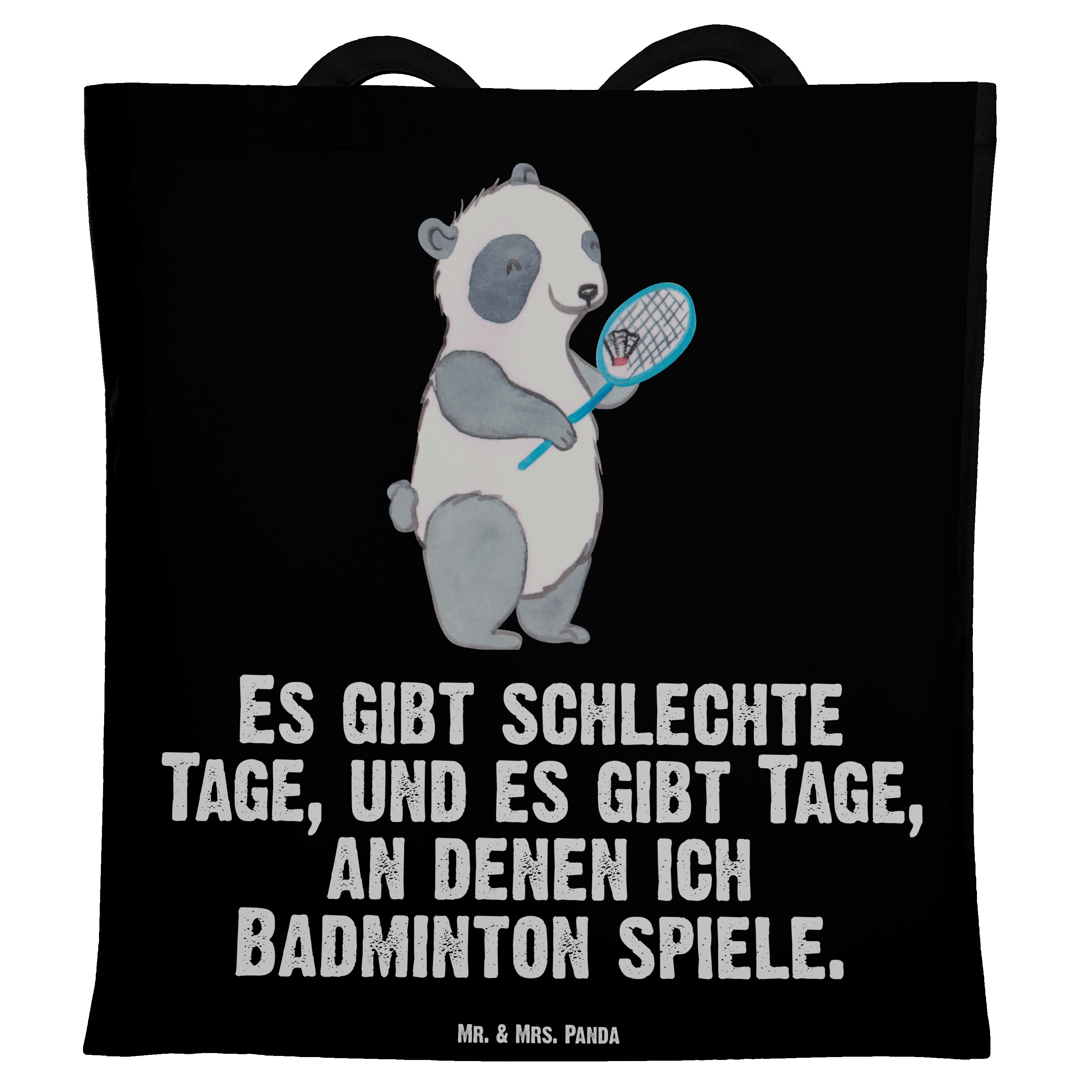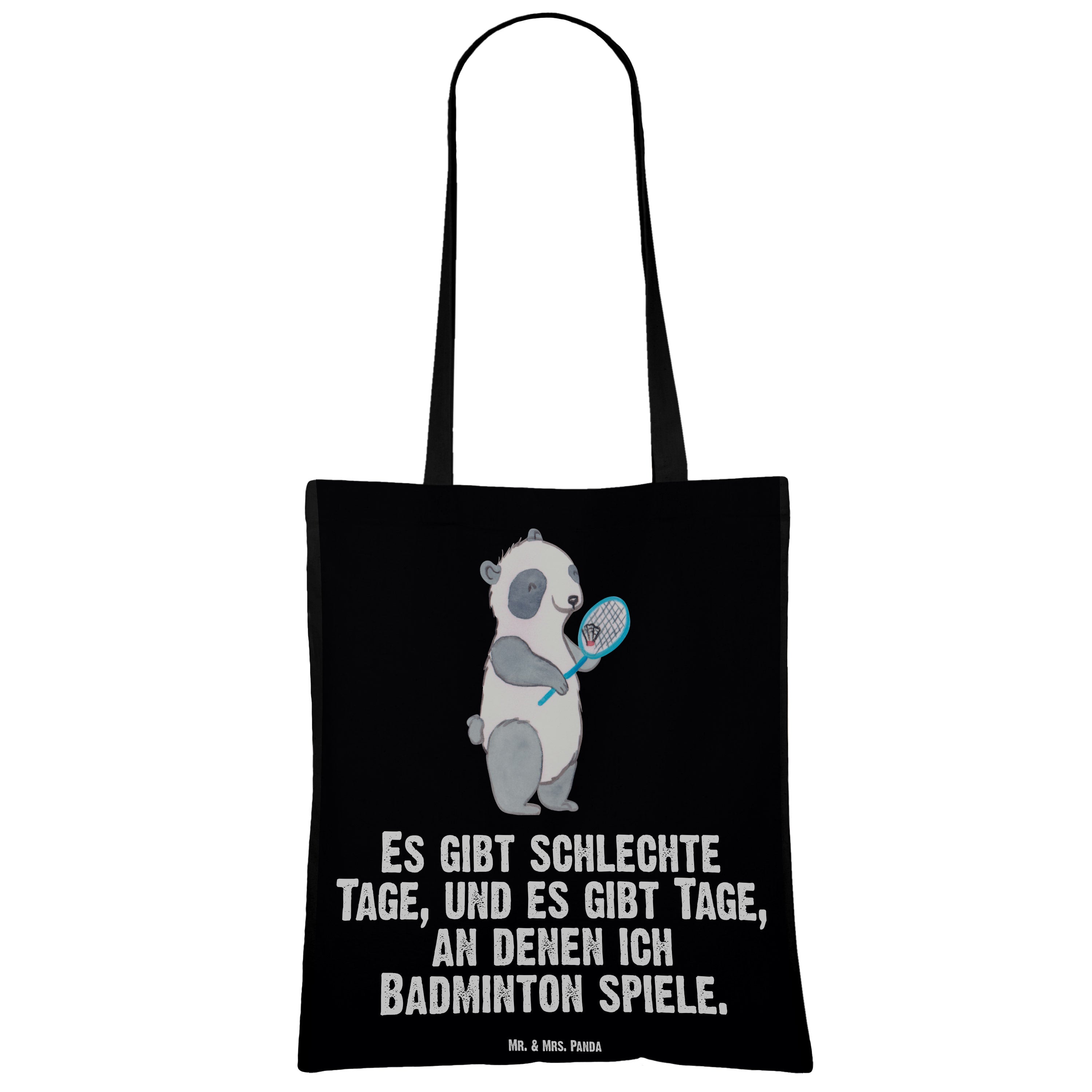 Tragetasche Panda Badminton  Tage Beuteltasche, Beutel, Einkaufstasche, Jutebeutel, Stoffbeutel, Geschenk, Sport, Sportart, Hobby, Schenken, Danke, Dankeschön, Auszeichnung, Gewinn, Sportler, Badminton, Badminton spielen