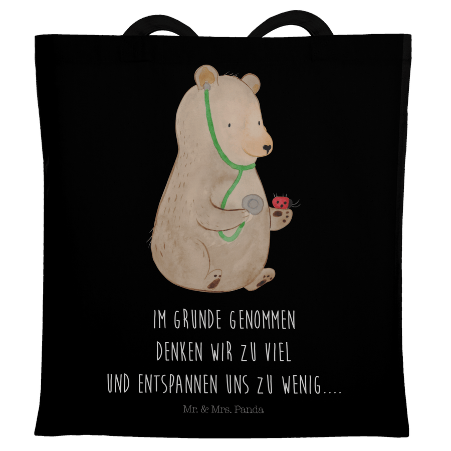 Tragetasche Bär Arzt - mit Spruch - Schwarz
