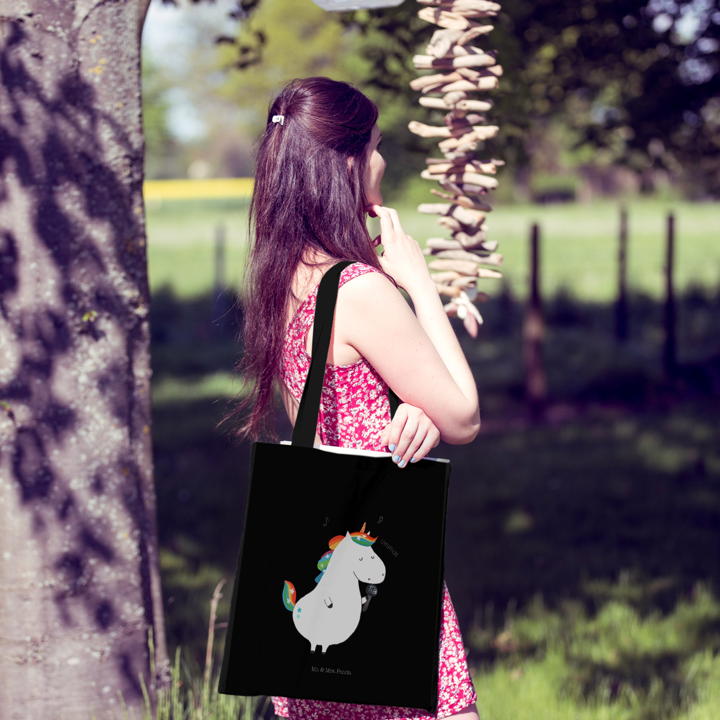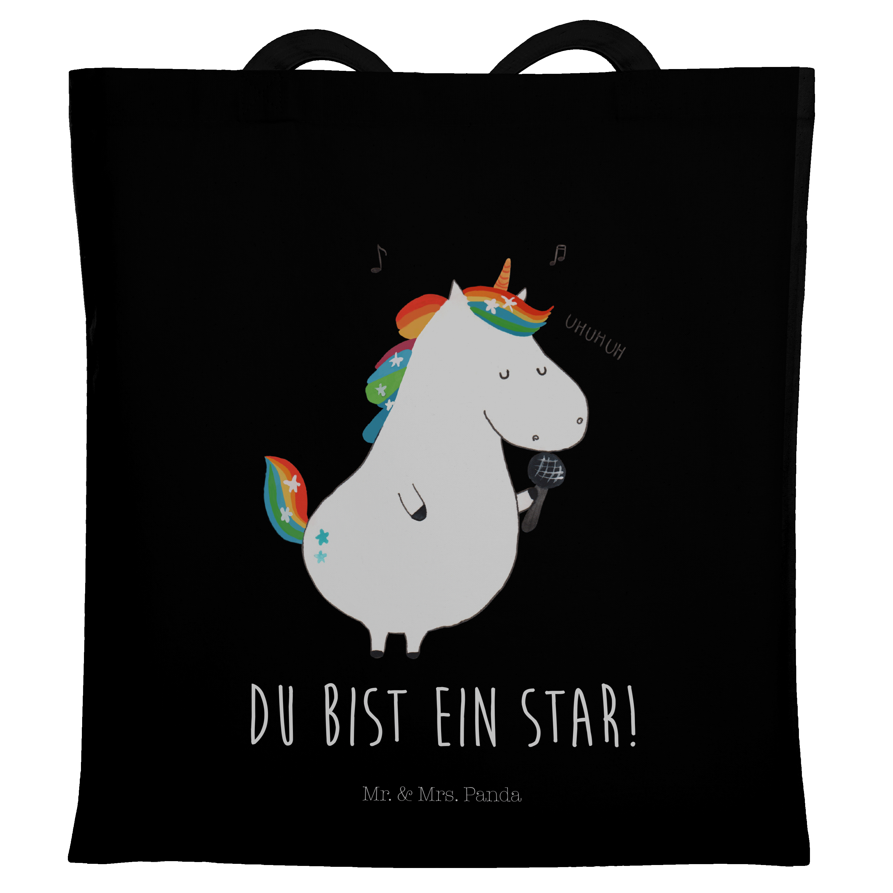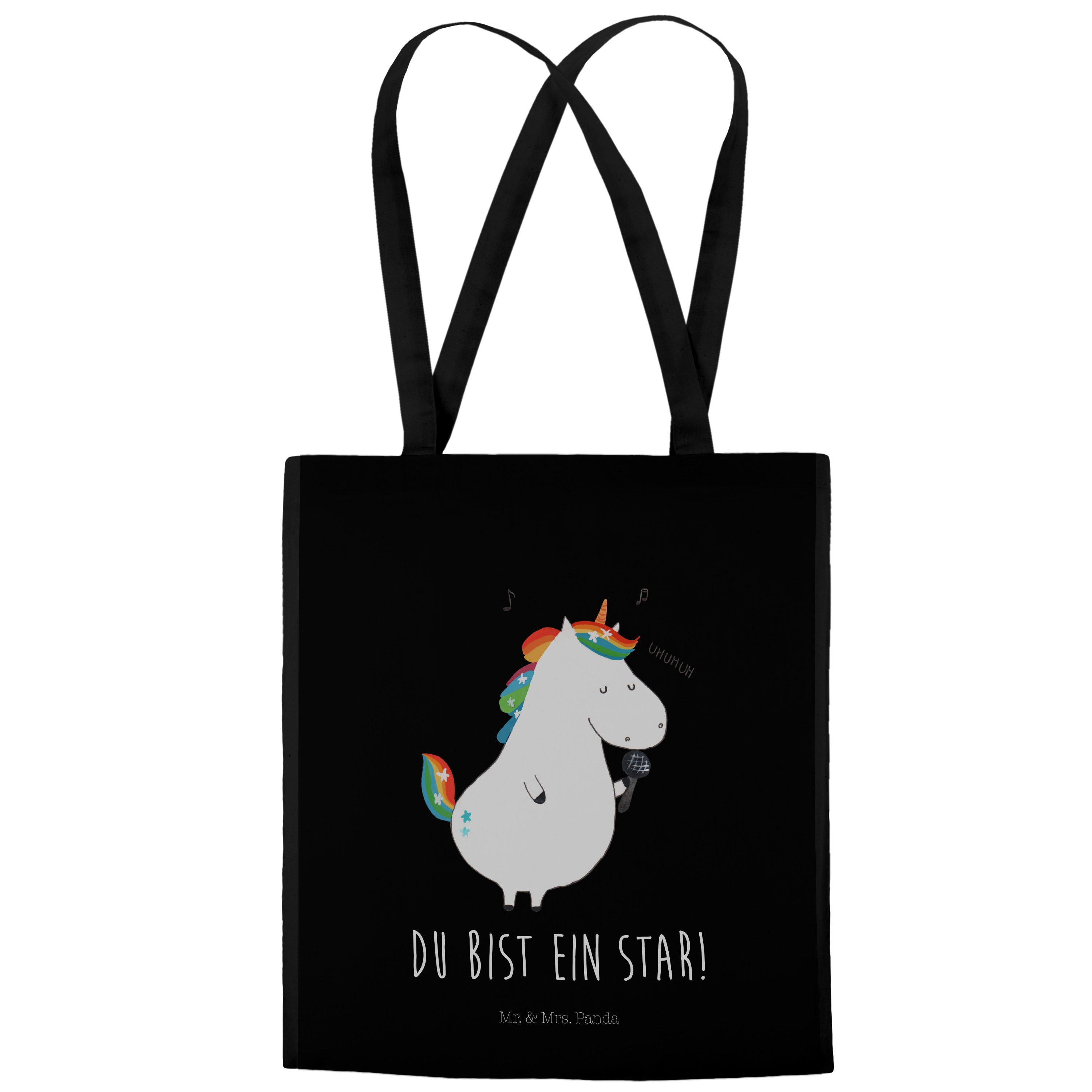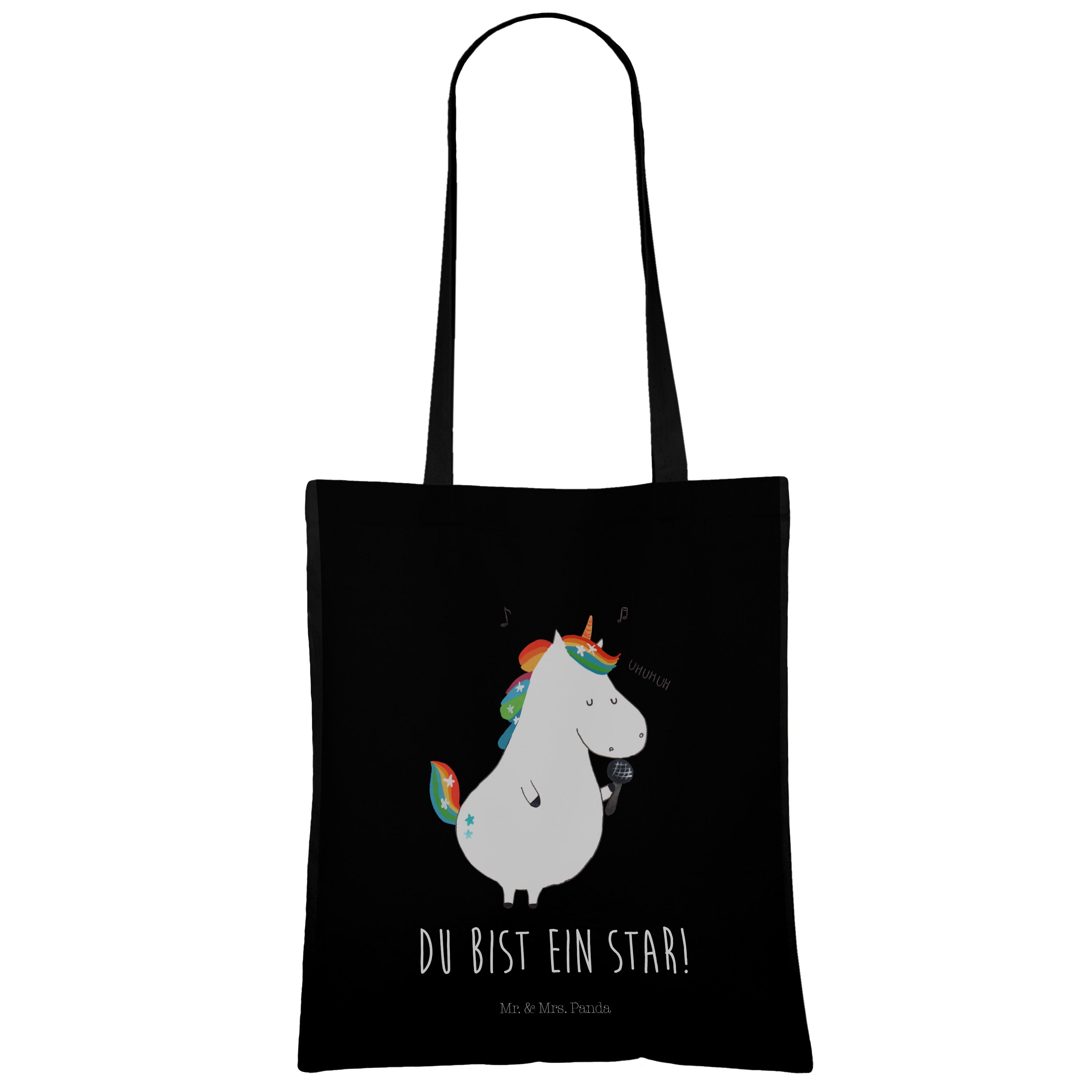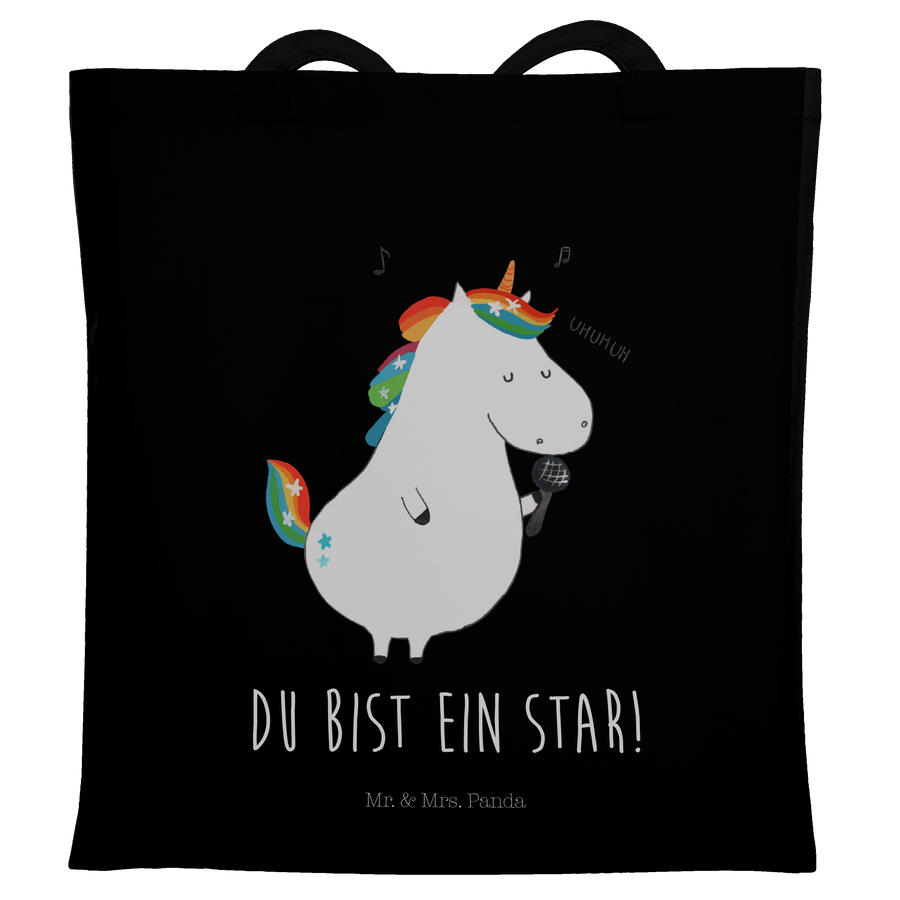 Tragetasche Einhorn Sänger - mit Spruch - Schwarz