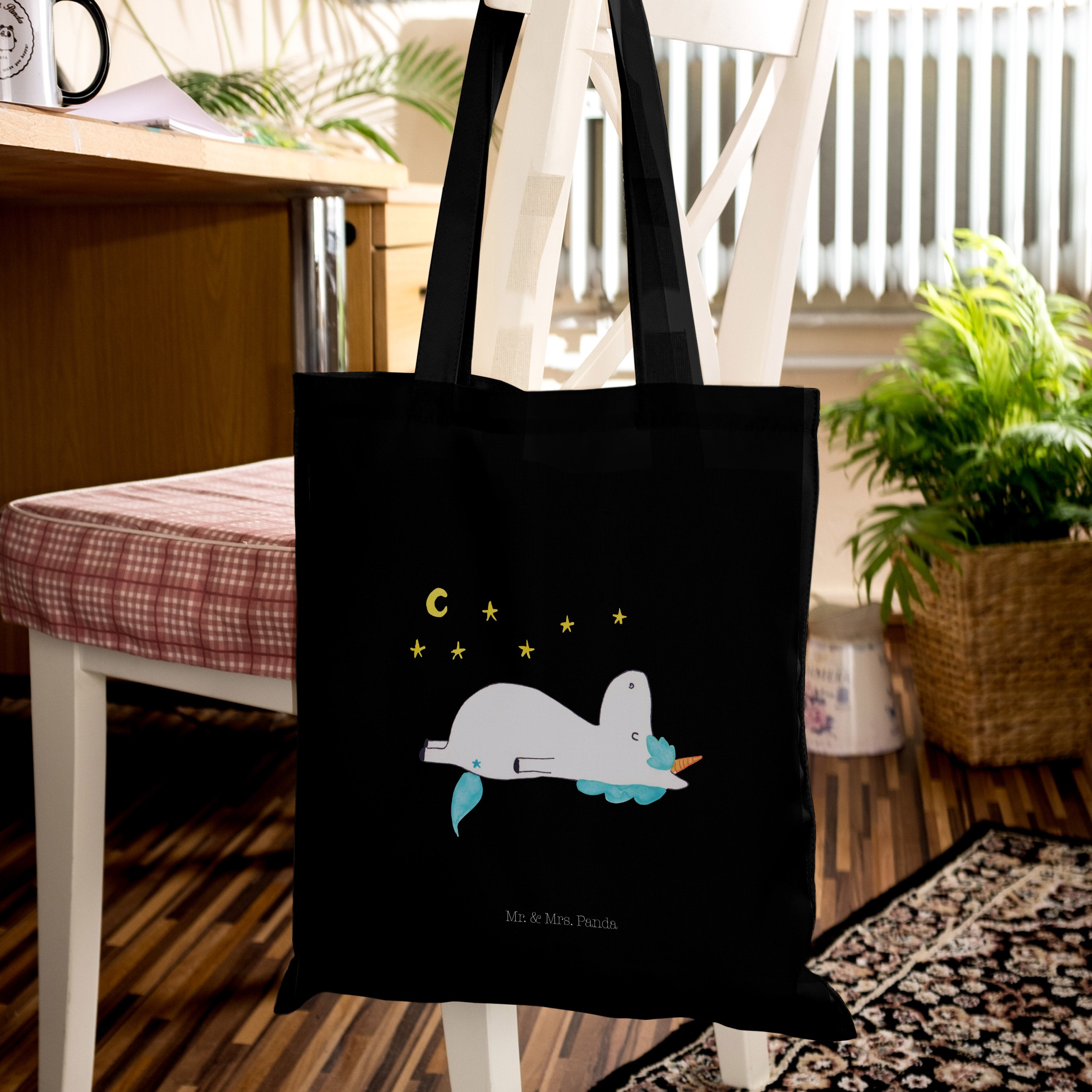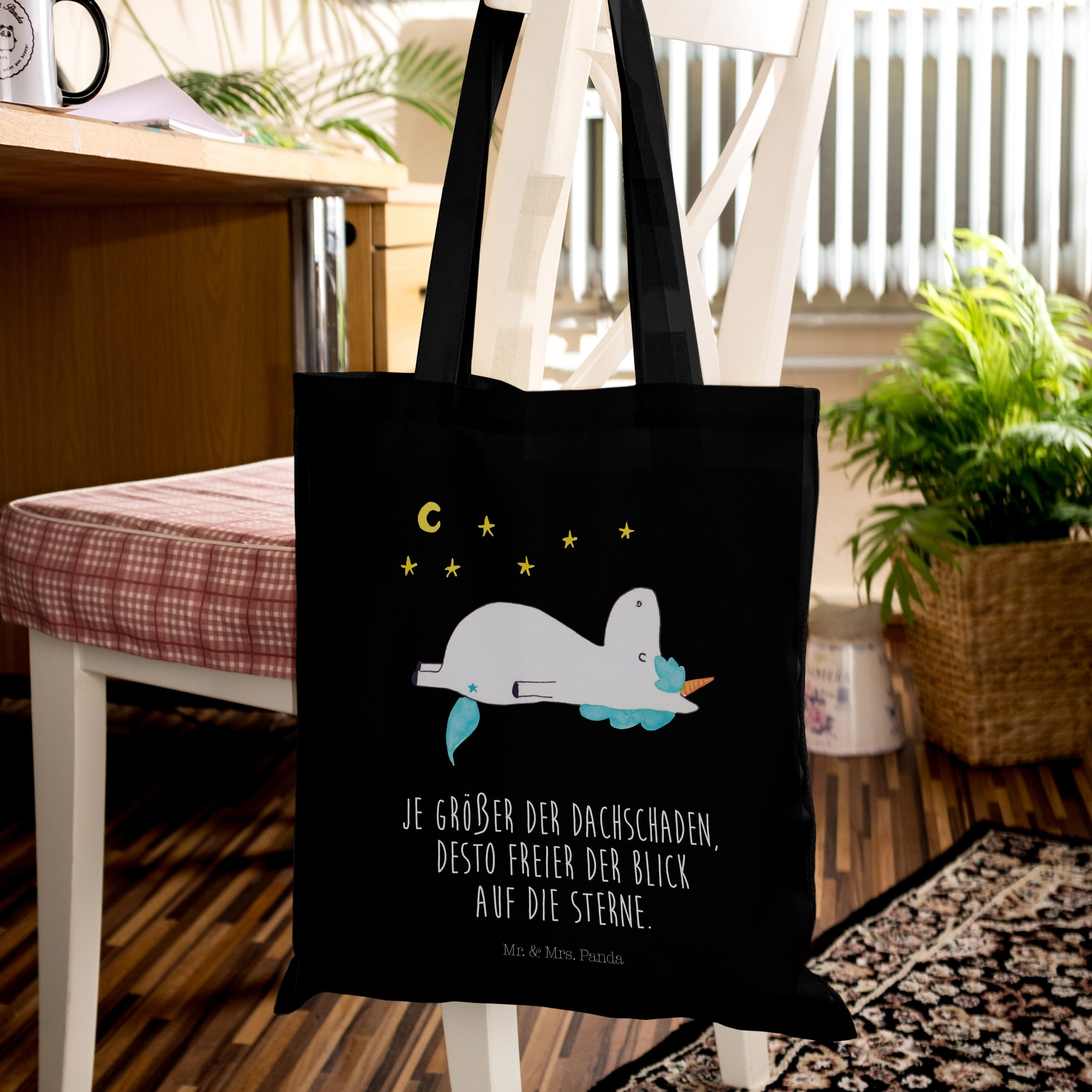 Tragetasche Einhorn Sternenhimmel - mit Spruch - Transparent