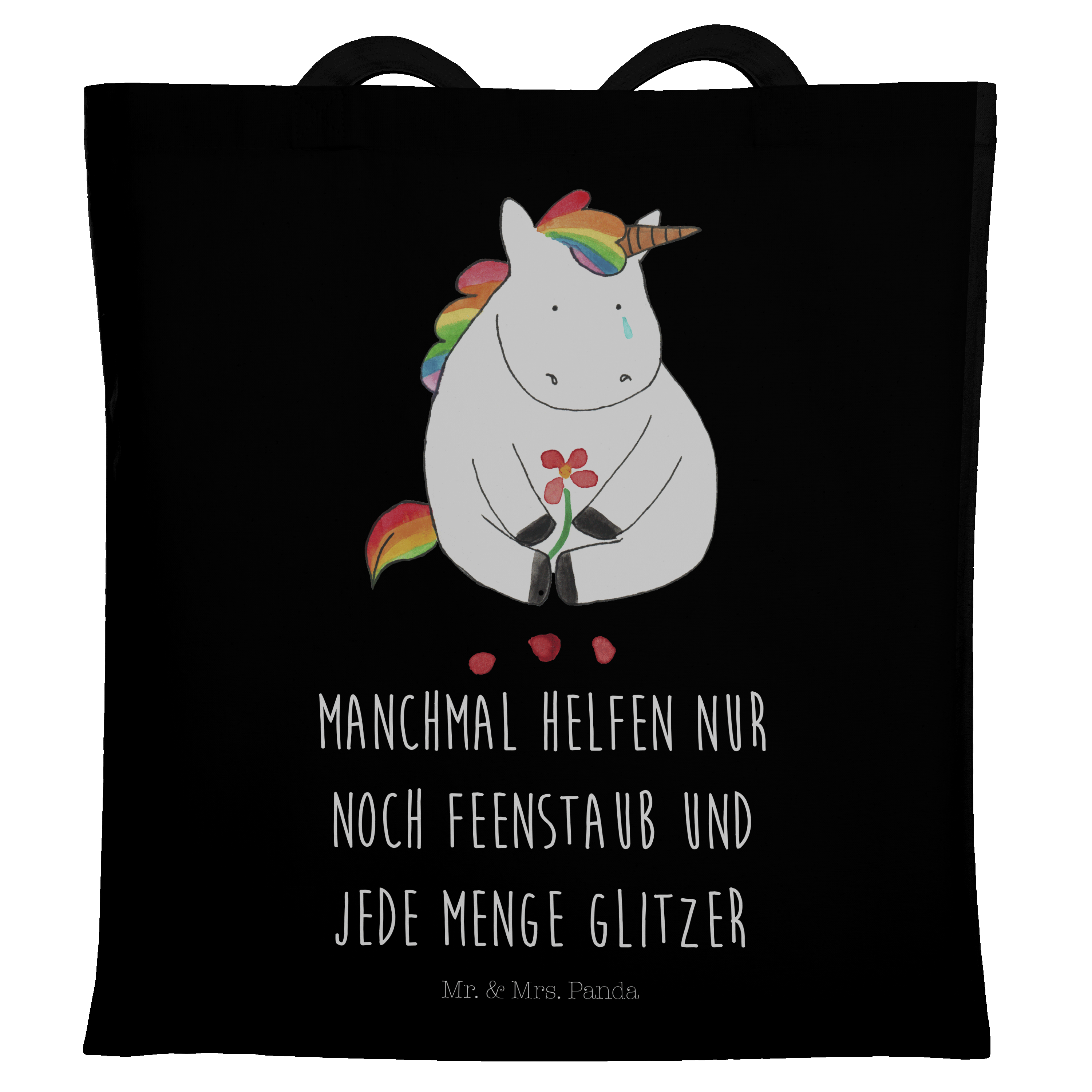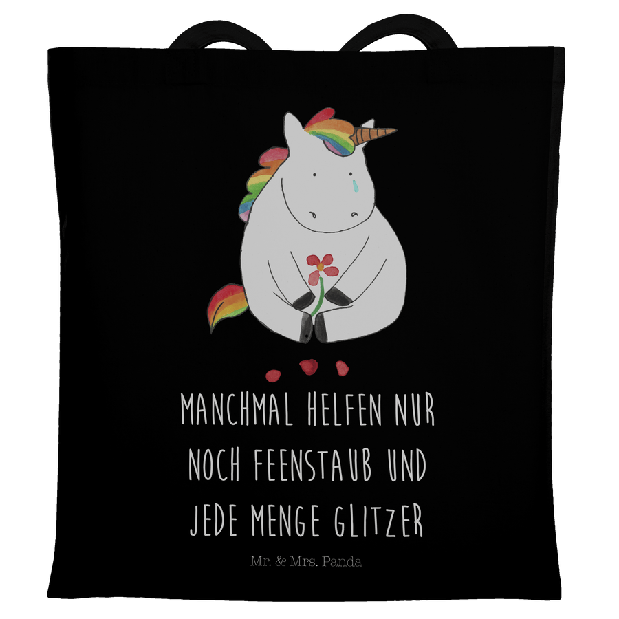 Tragetasche Einhorn Traurig - mit Spruch - Schwarz