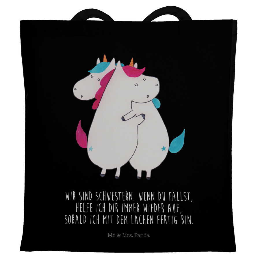 Tragetasche Einhörner Umarmen - mit Spruch - Schwarz