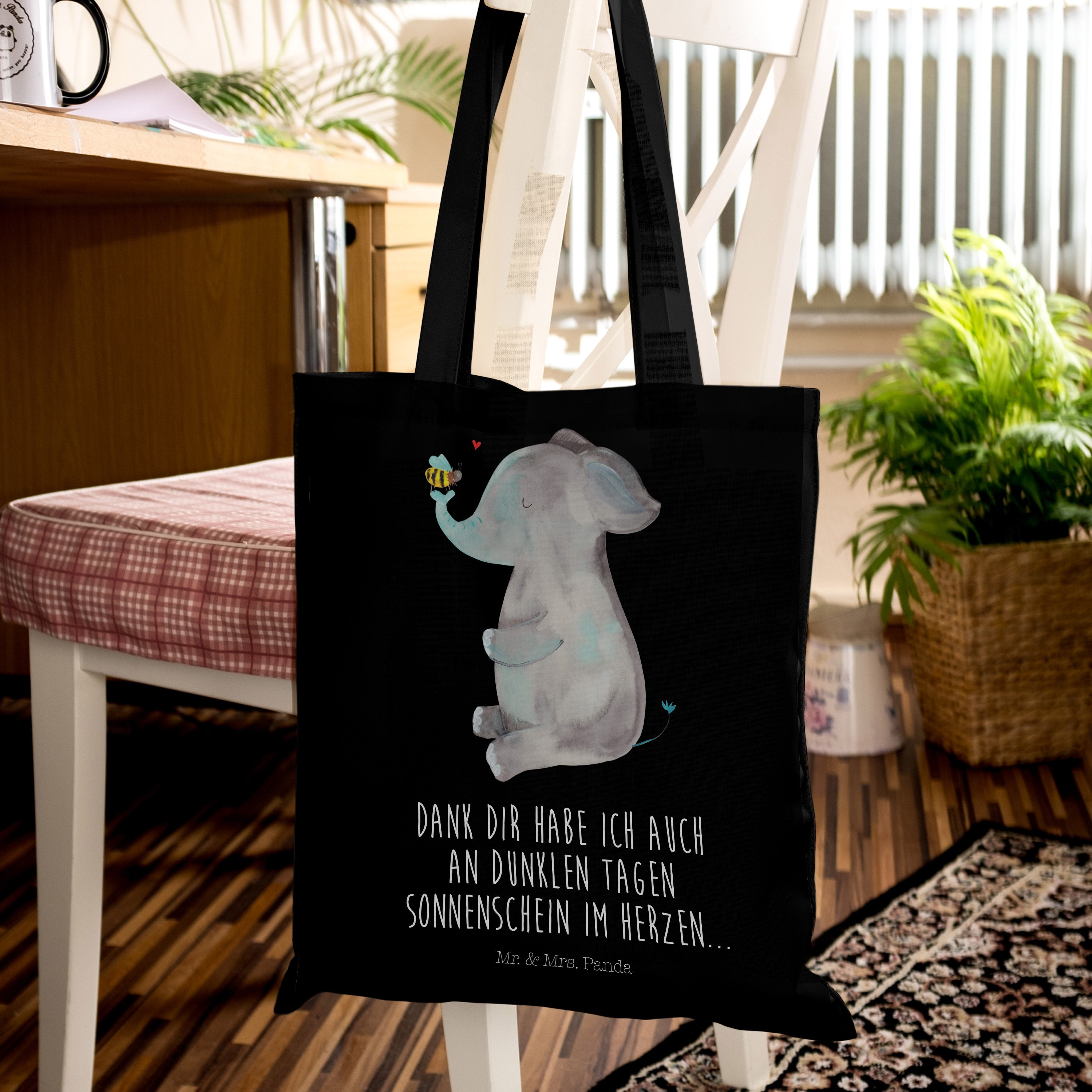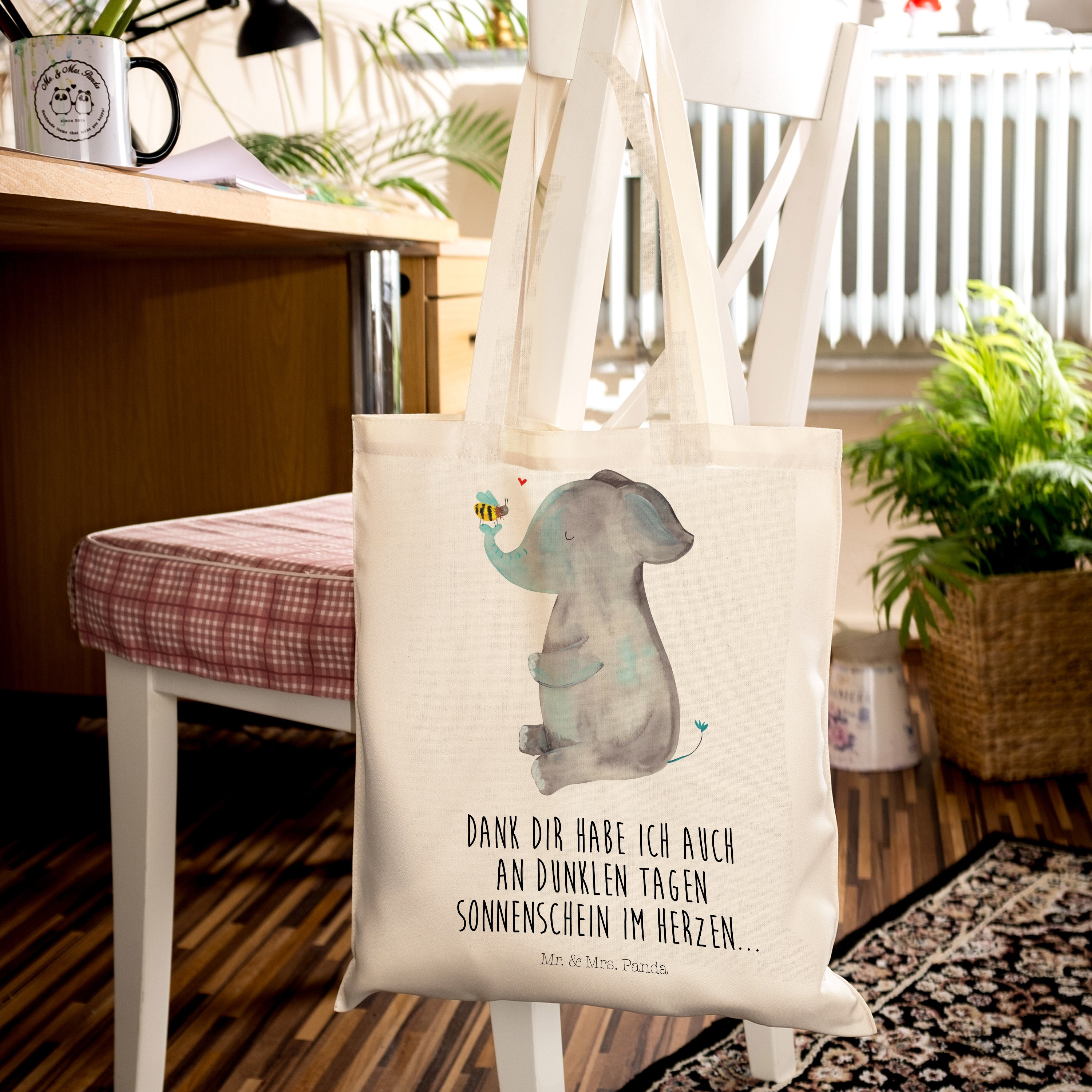 Tragetasche Elefant & Biene - mit Spruch - Transparent